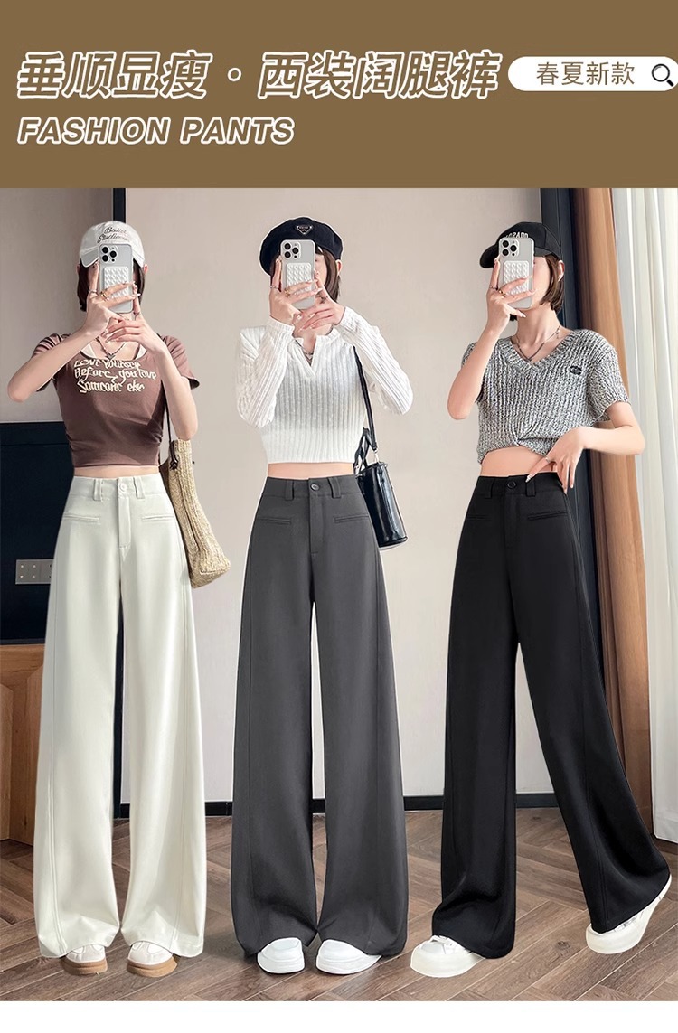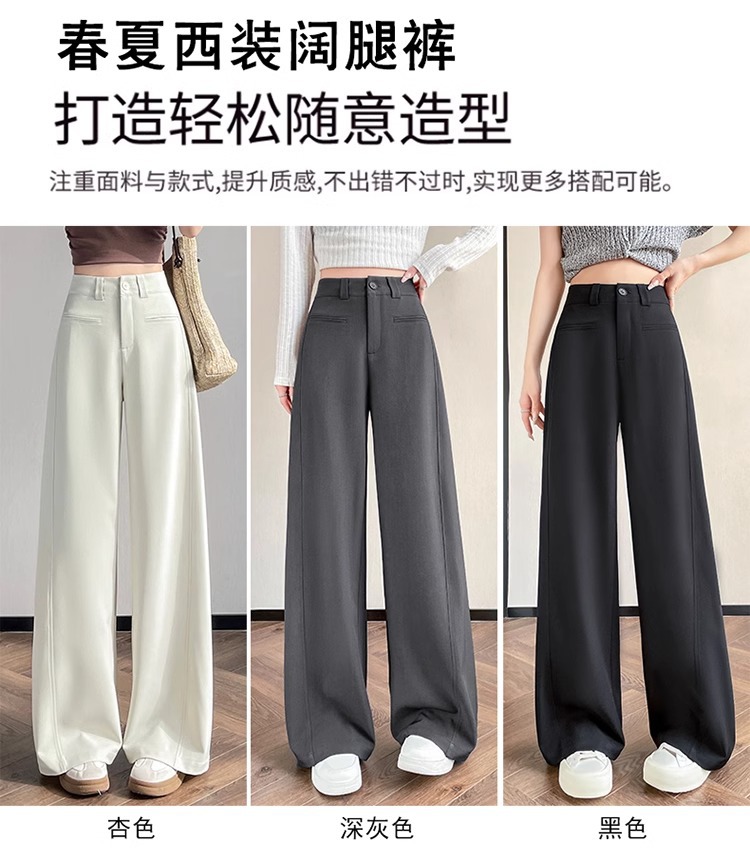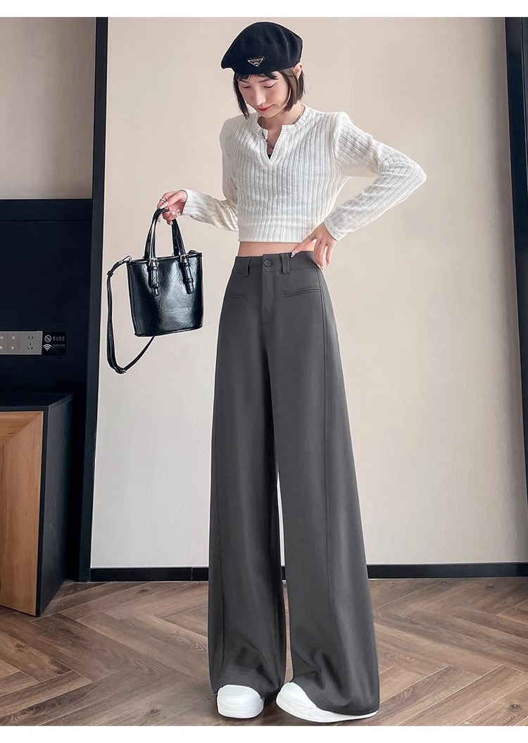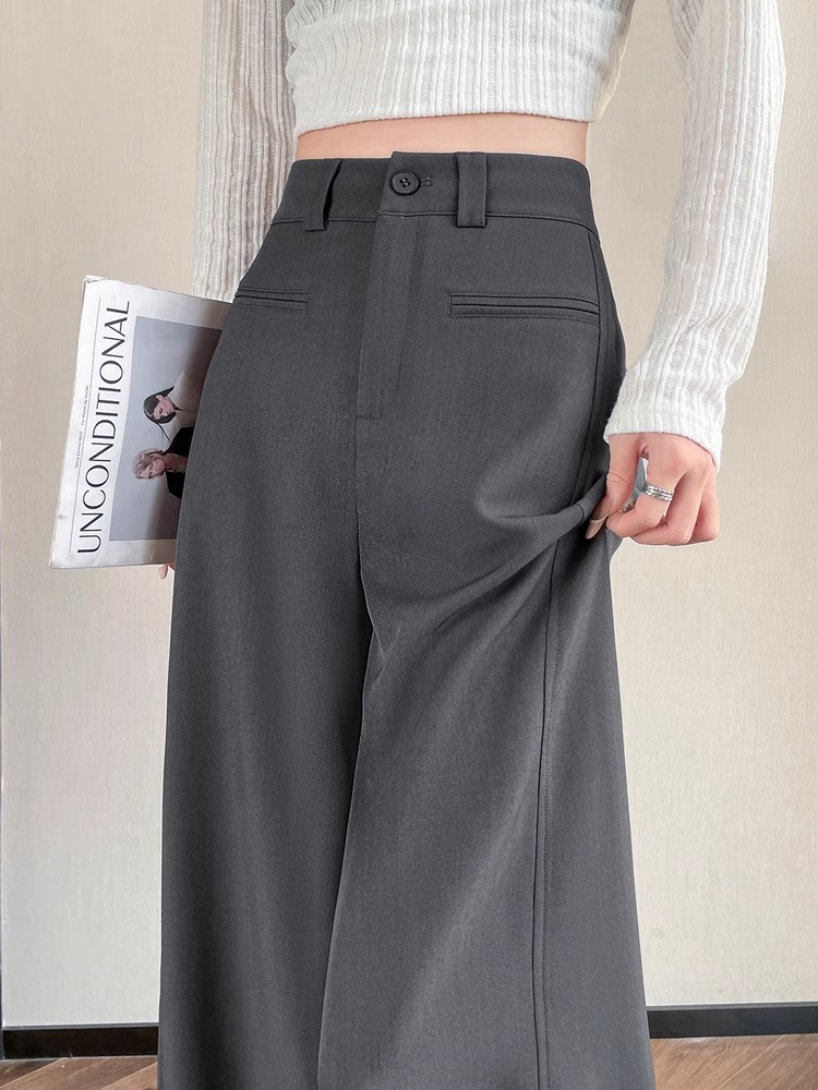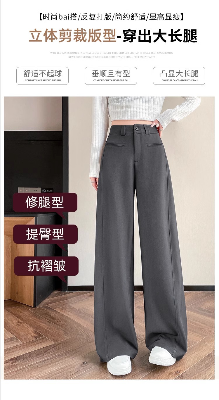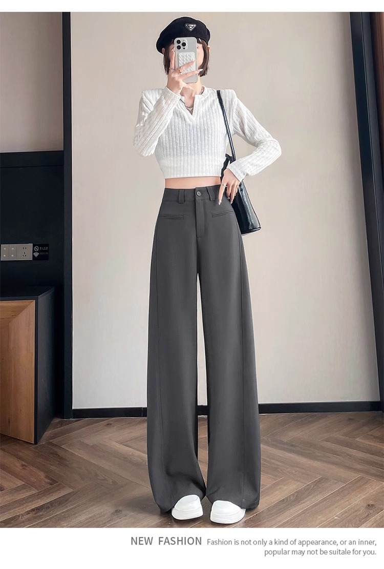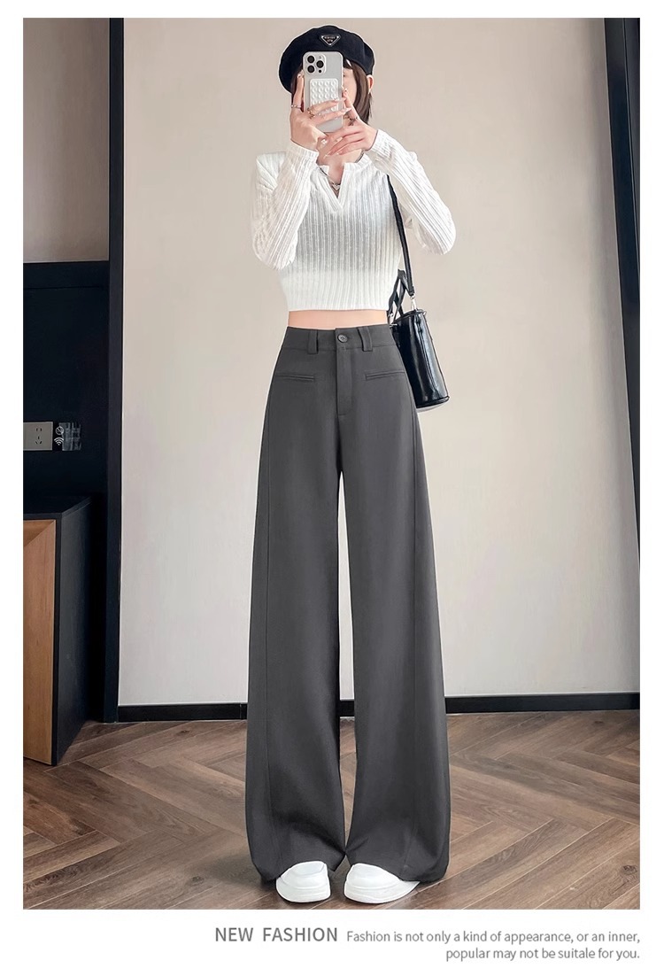 Серый костюм брюки женская весна осень 2025 новый стиль брюки с высокой талией прямой трубочки свободная повседневная перетаскивание широкие брюки