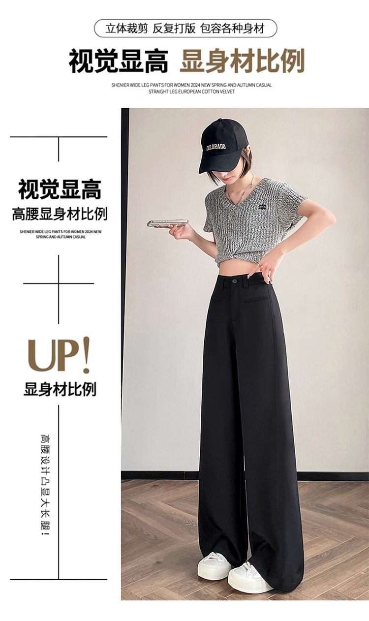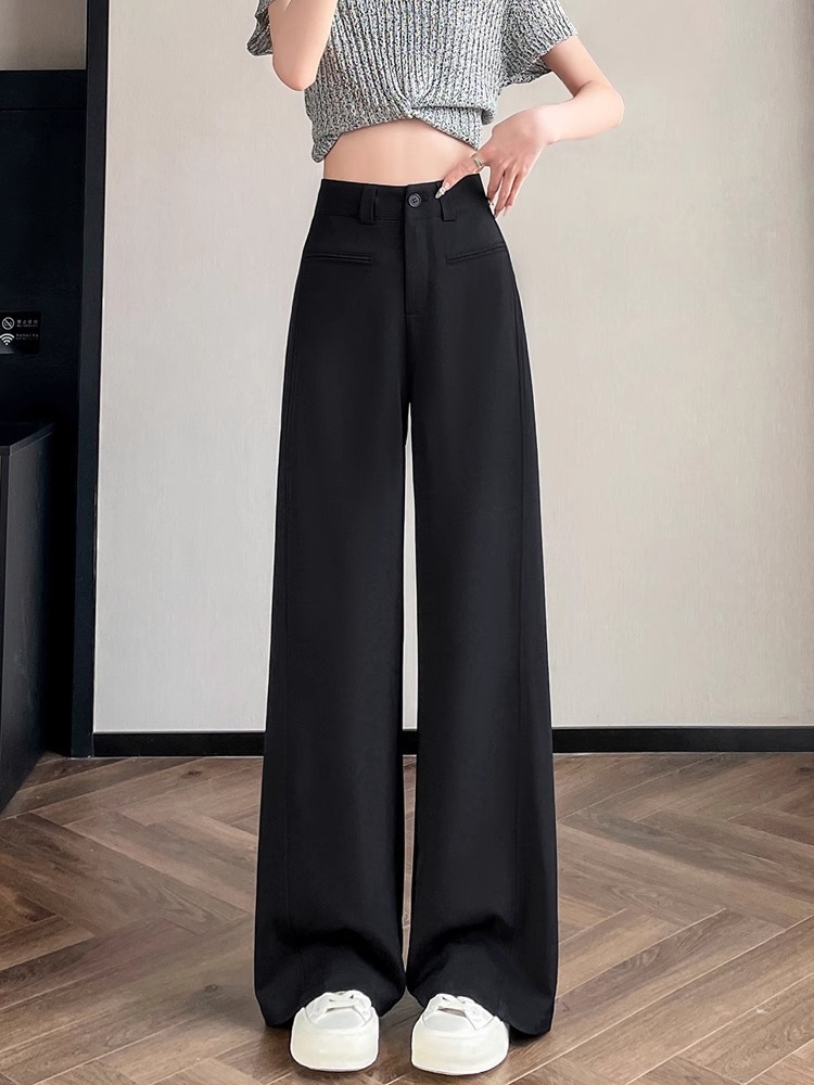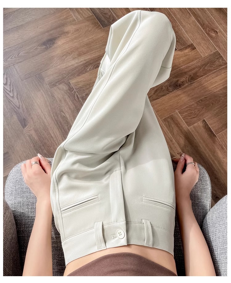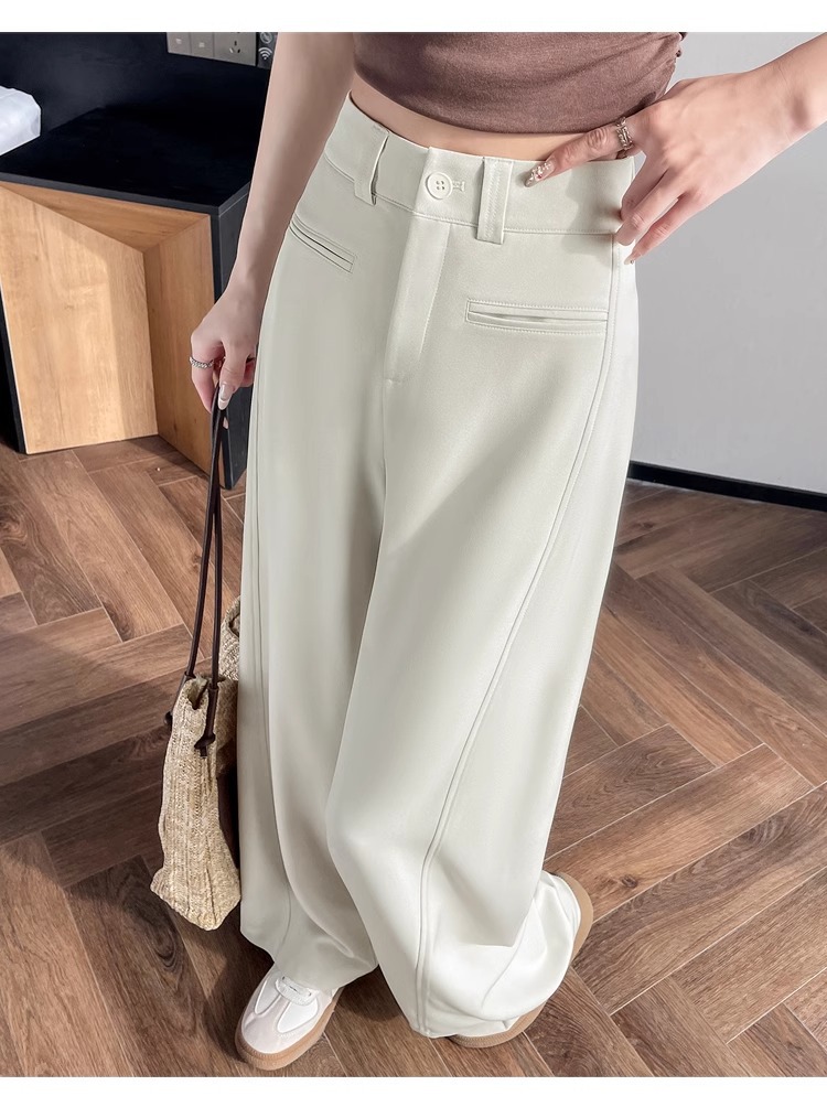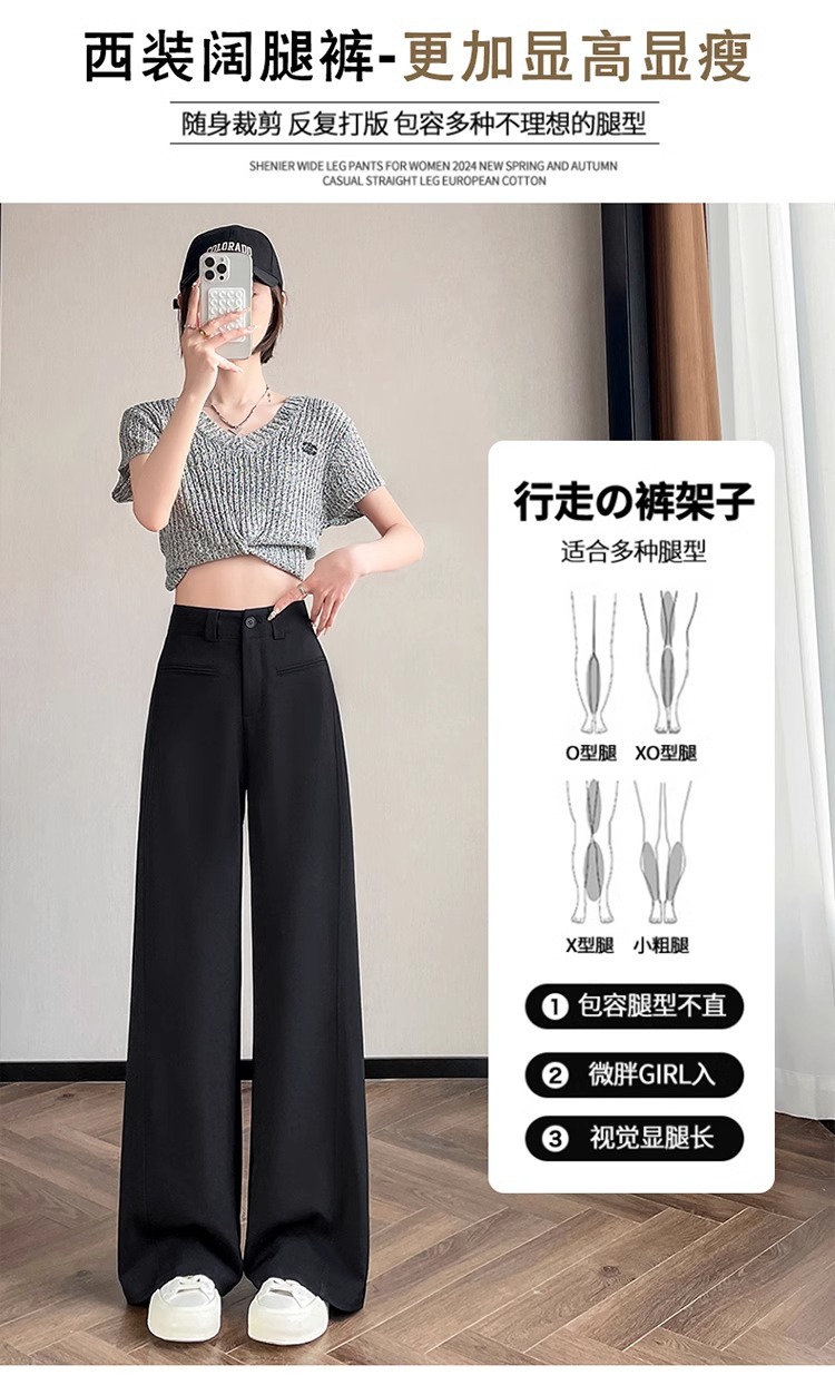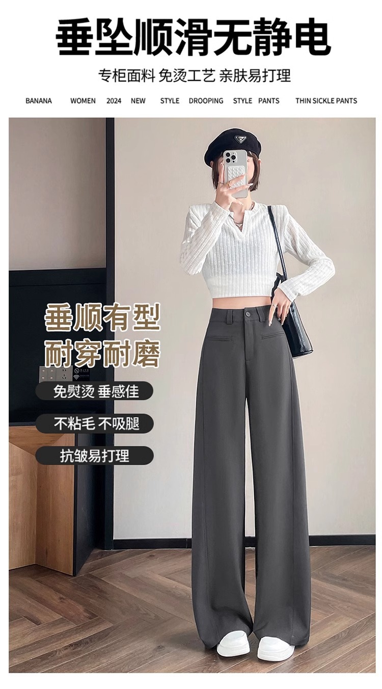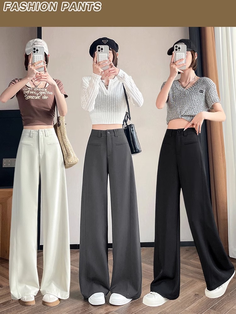 Серый костюм брюки женская весна осень 2025 новый стиль брюки с высокой талией прямой трубочки свободная повседневная перетаскивание широкие брюки
