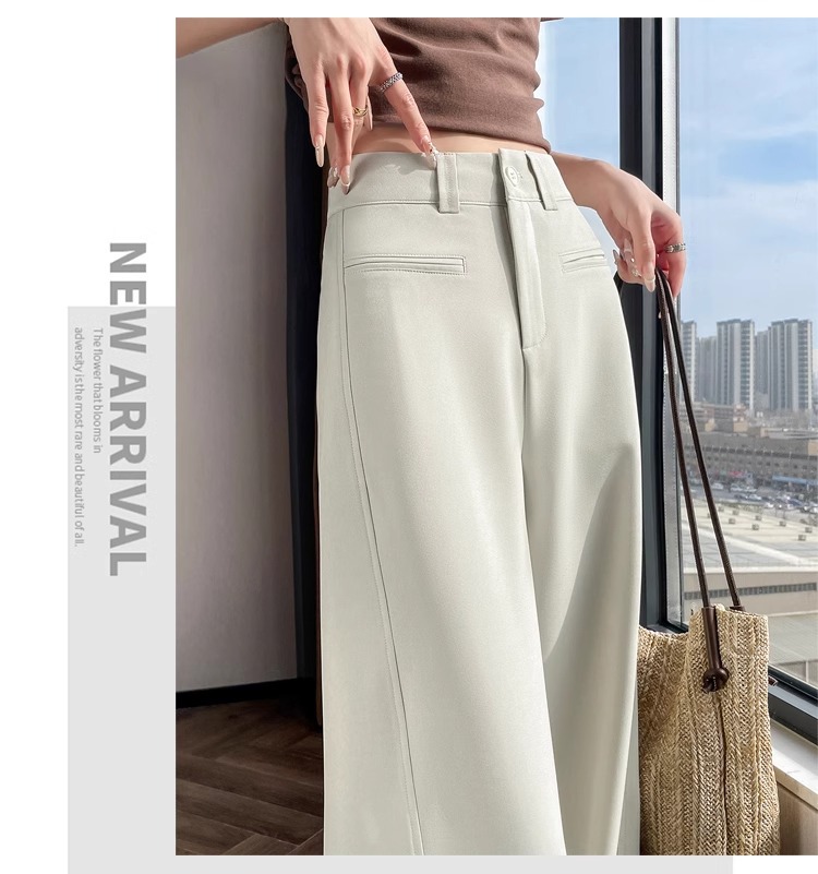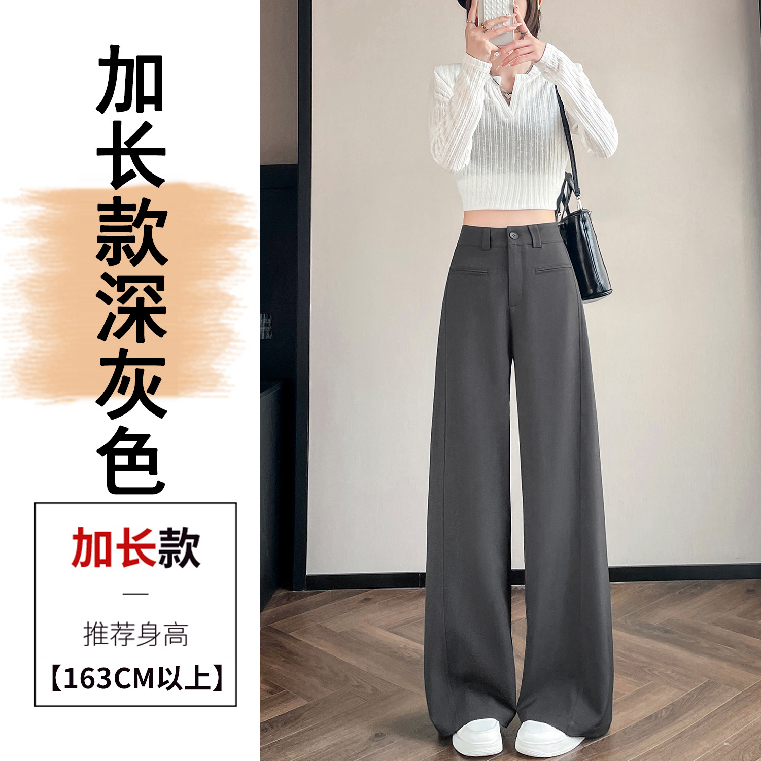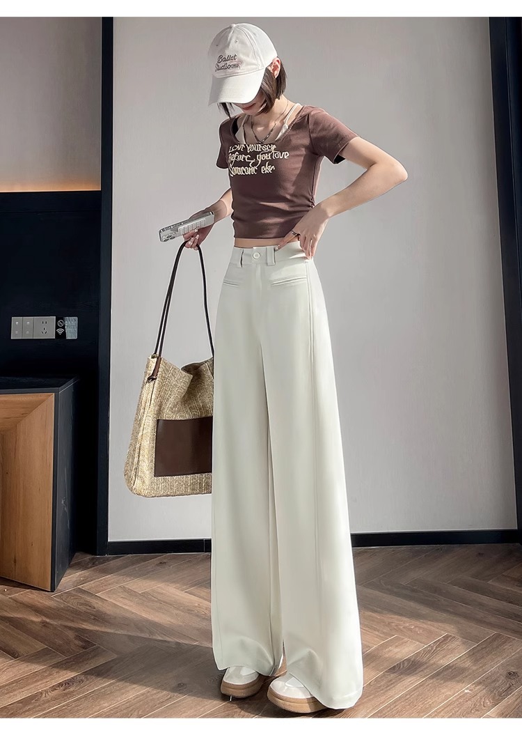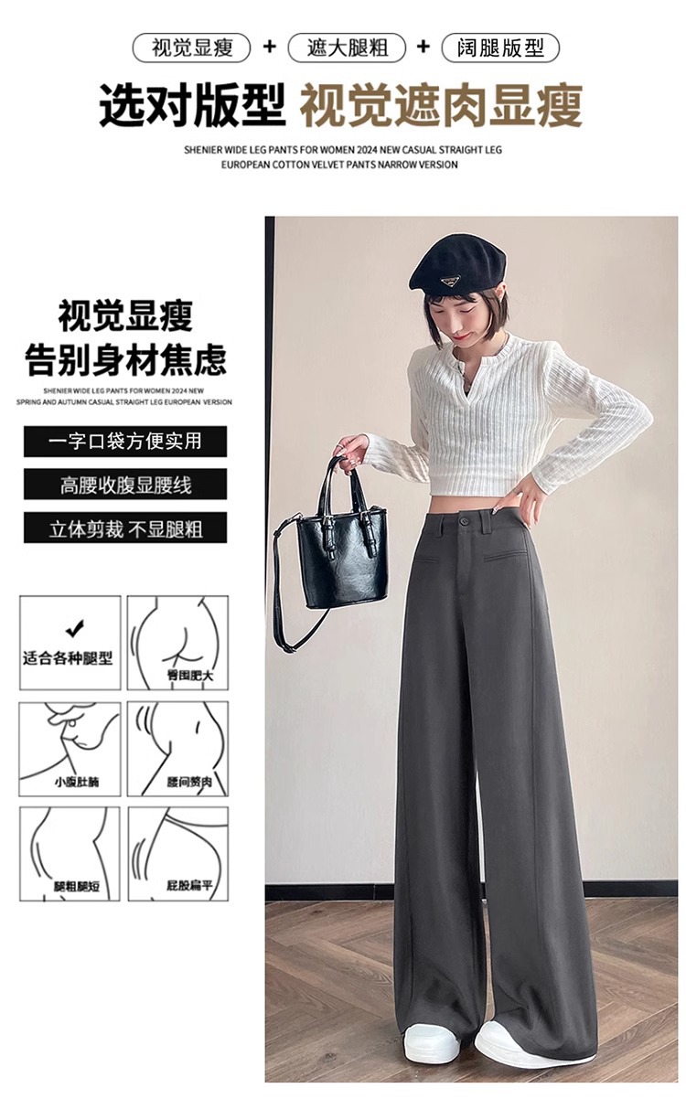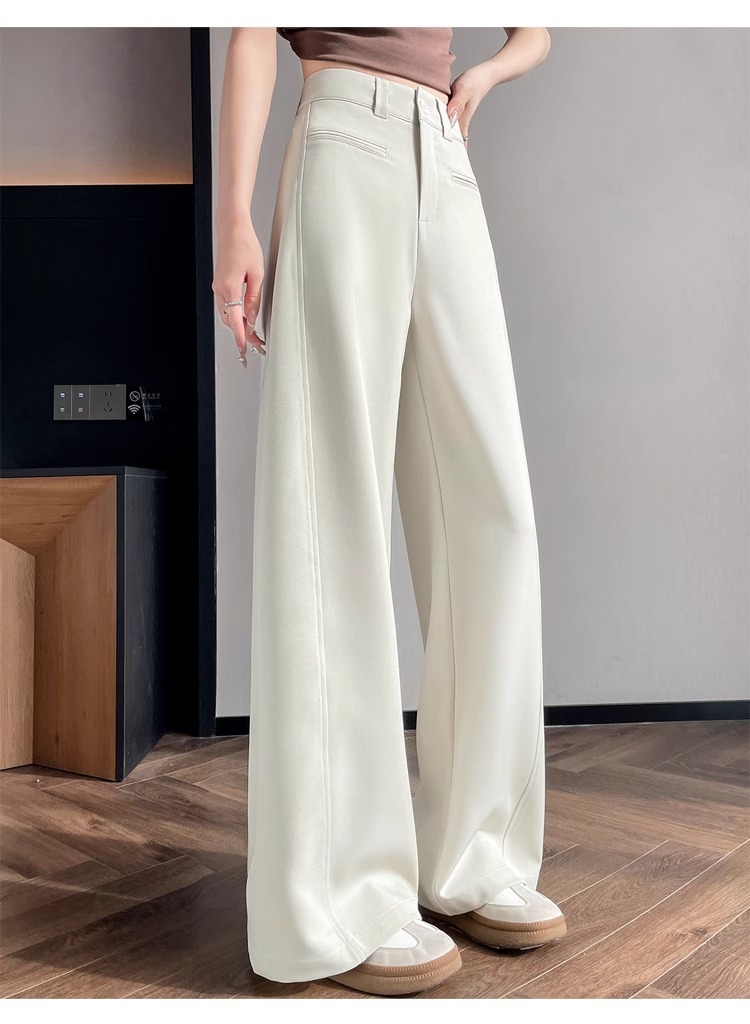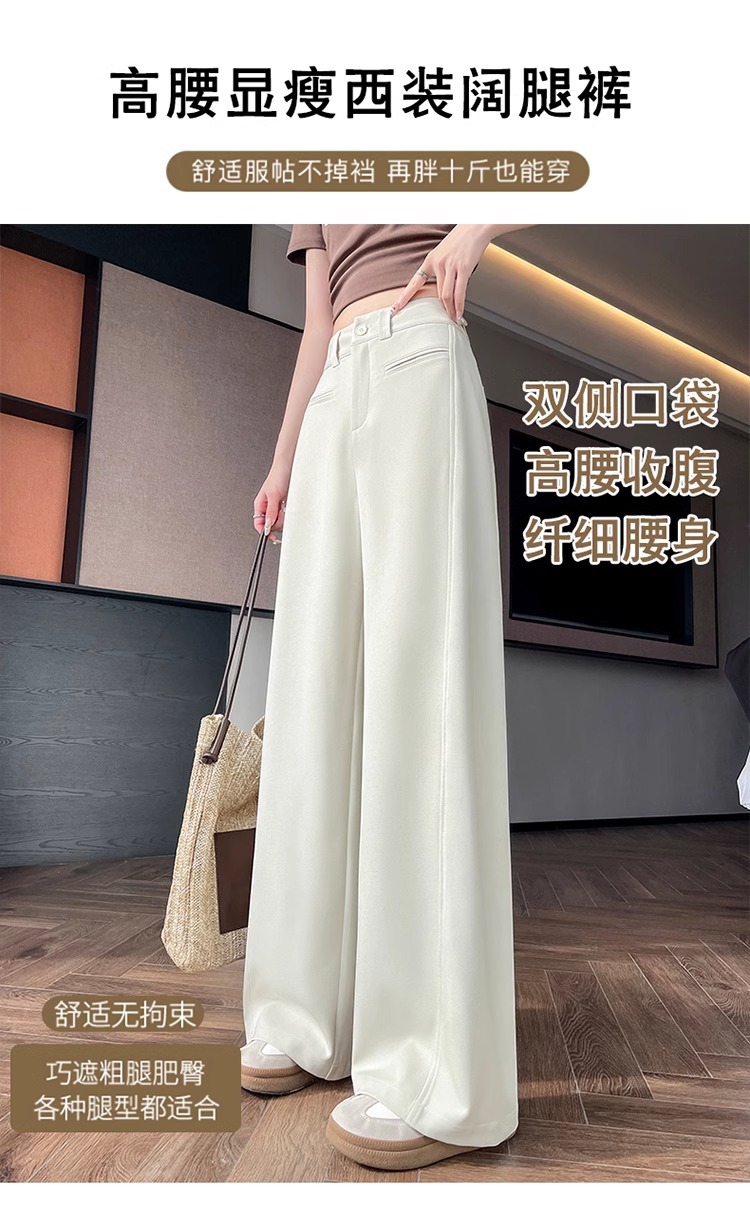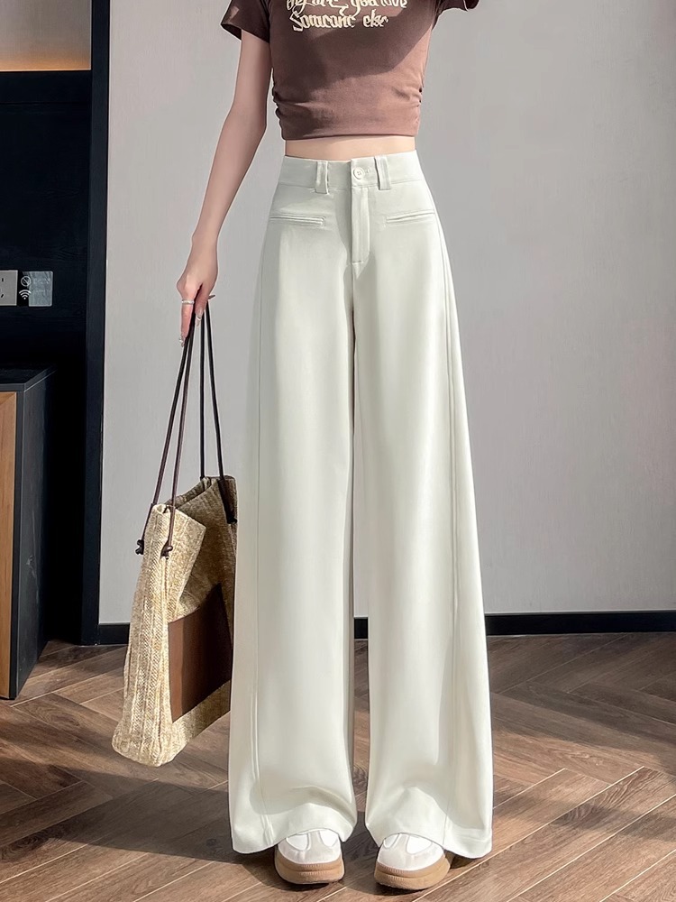 Серый костюм брюки женская весна осень 2025 новый стиль брюки с высокой талией прямой трубочки свободная повседневная перетаскивание широкие брюки