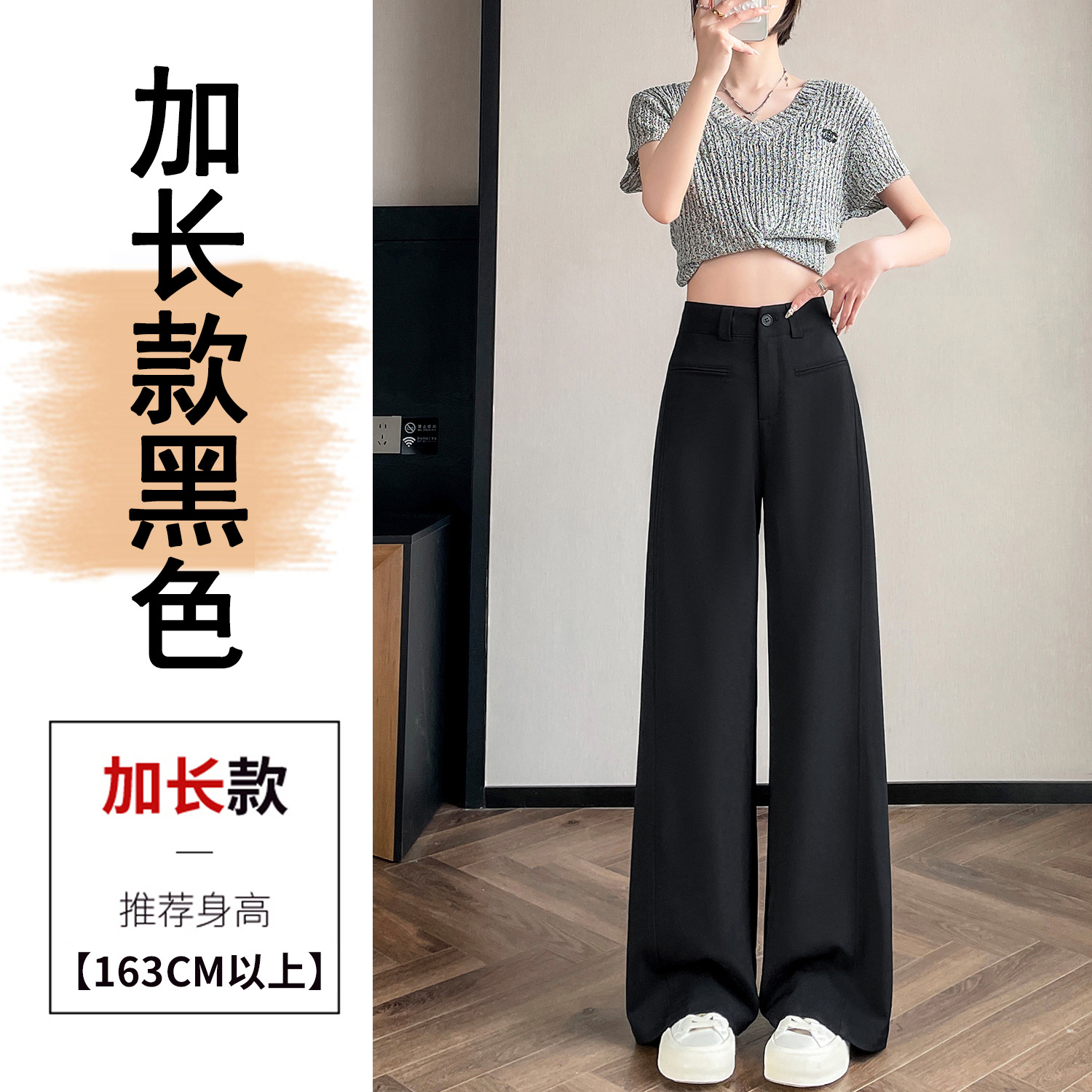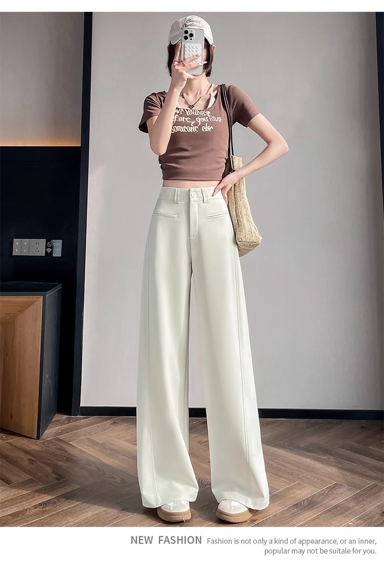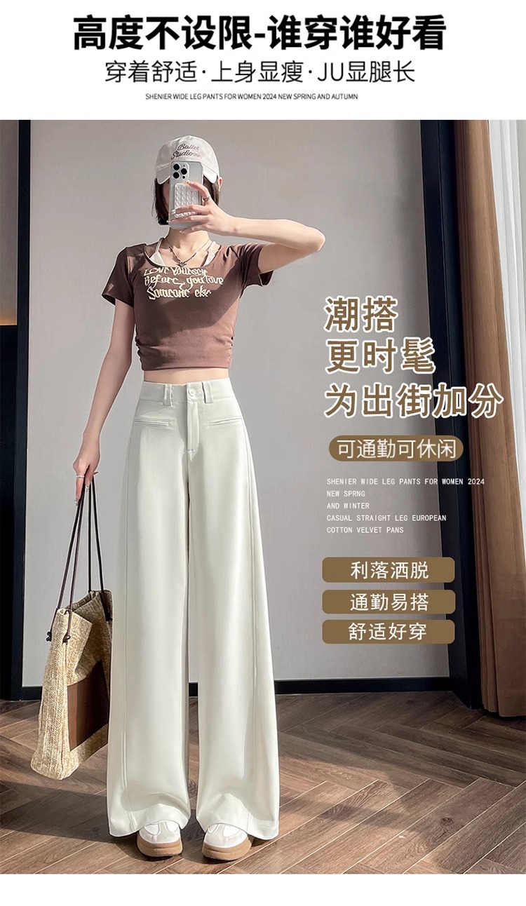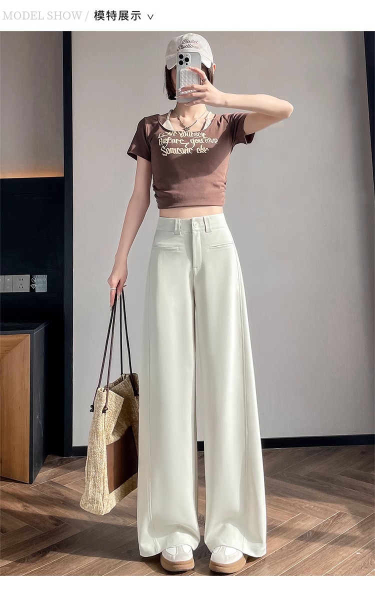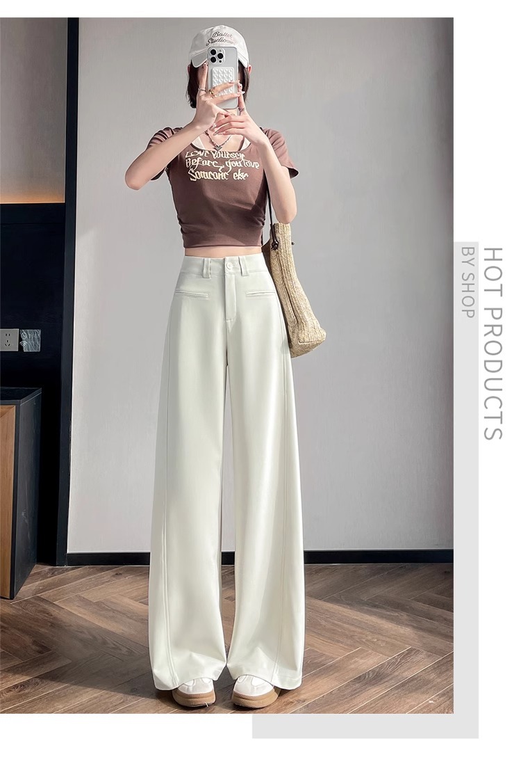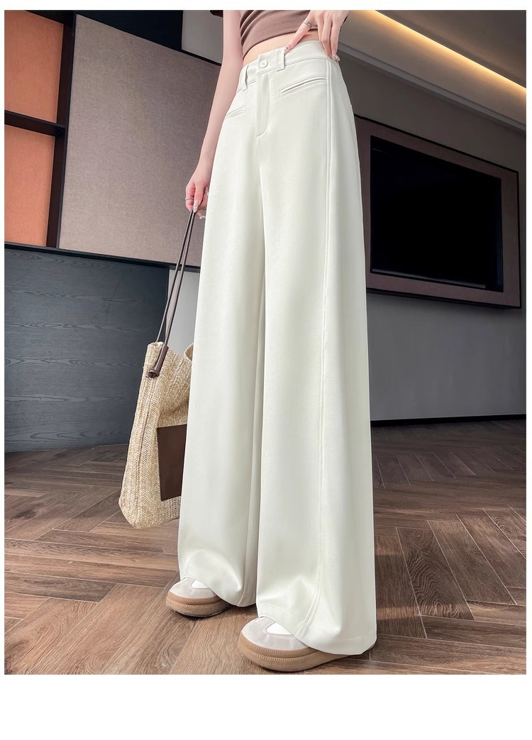 Серый костюм брюки женская весна осень 2025 новый стиль брюки с высокой талией прямой трубочки свободная повседневная перетаскивание широкие брюки