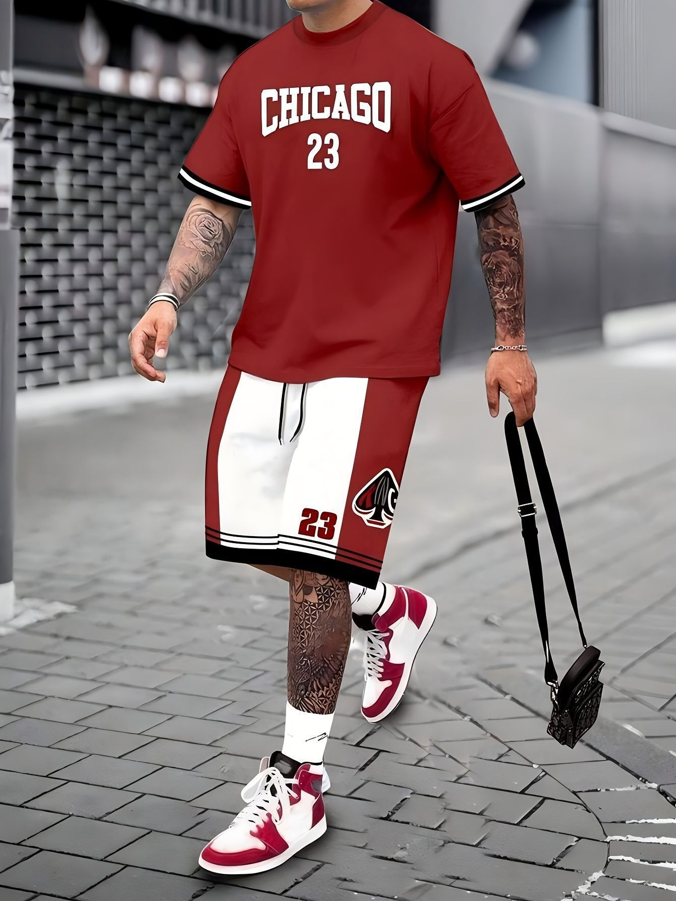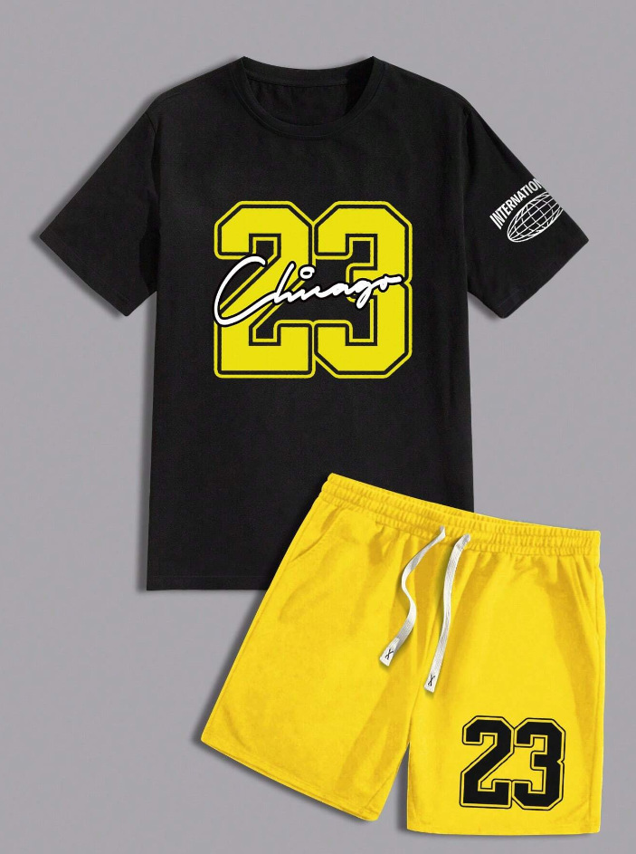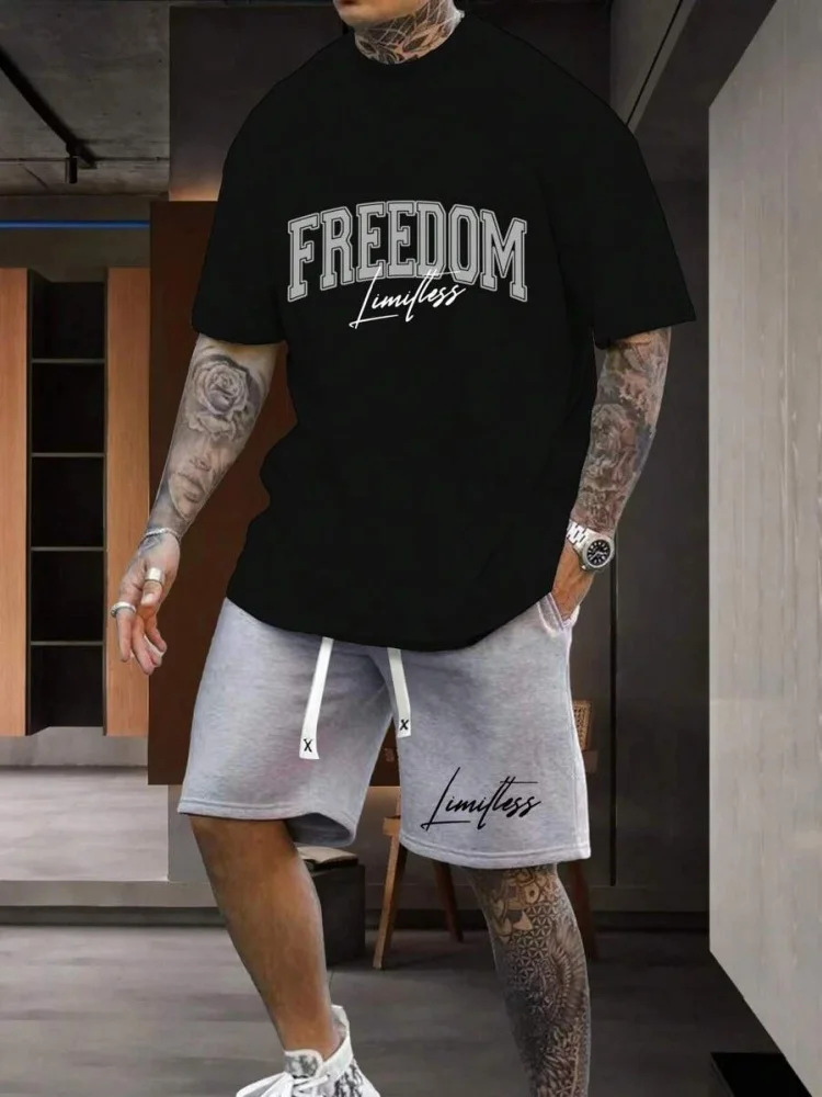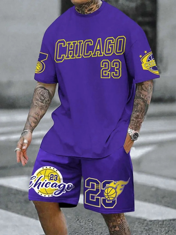 Трансграничная мода баскетбольная футболка открытый спорт мужская футболка с короткими рукавами шорты из двух частей набор букв 3D принт