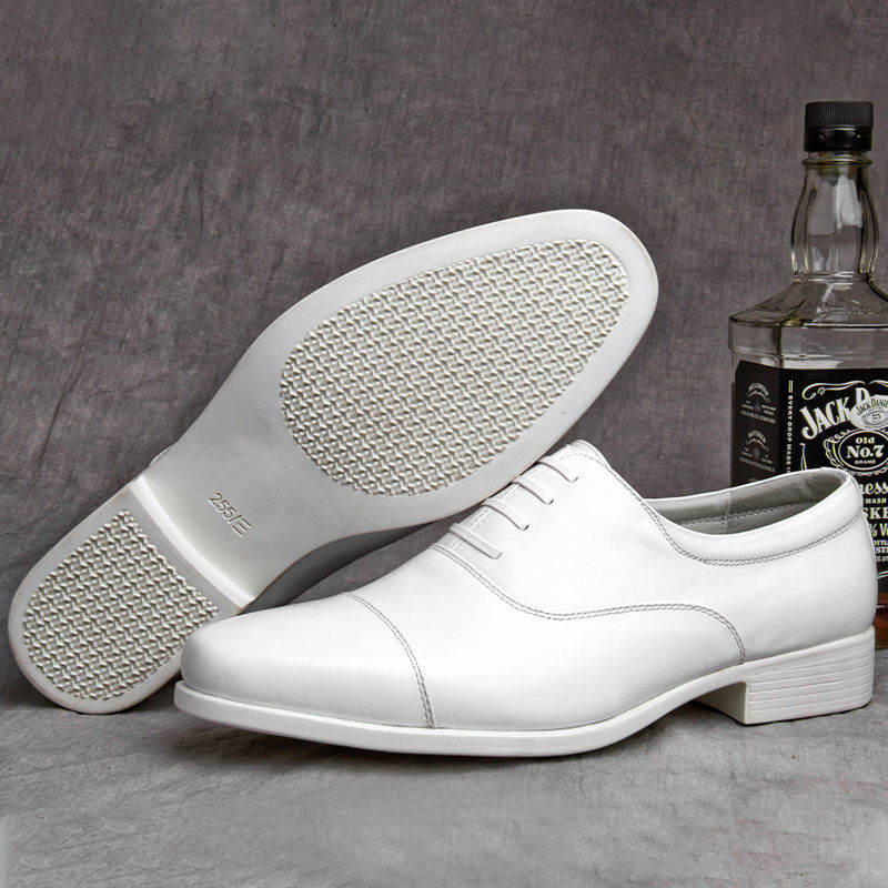 Морские и сухопутные новые повседневные белые кожаные туфли Свадебный жених-жених мужской дышащий спектакль с тремя шарнирными кожаные туфли на каблуках