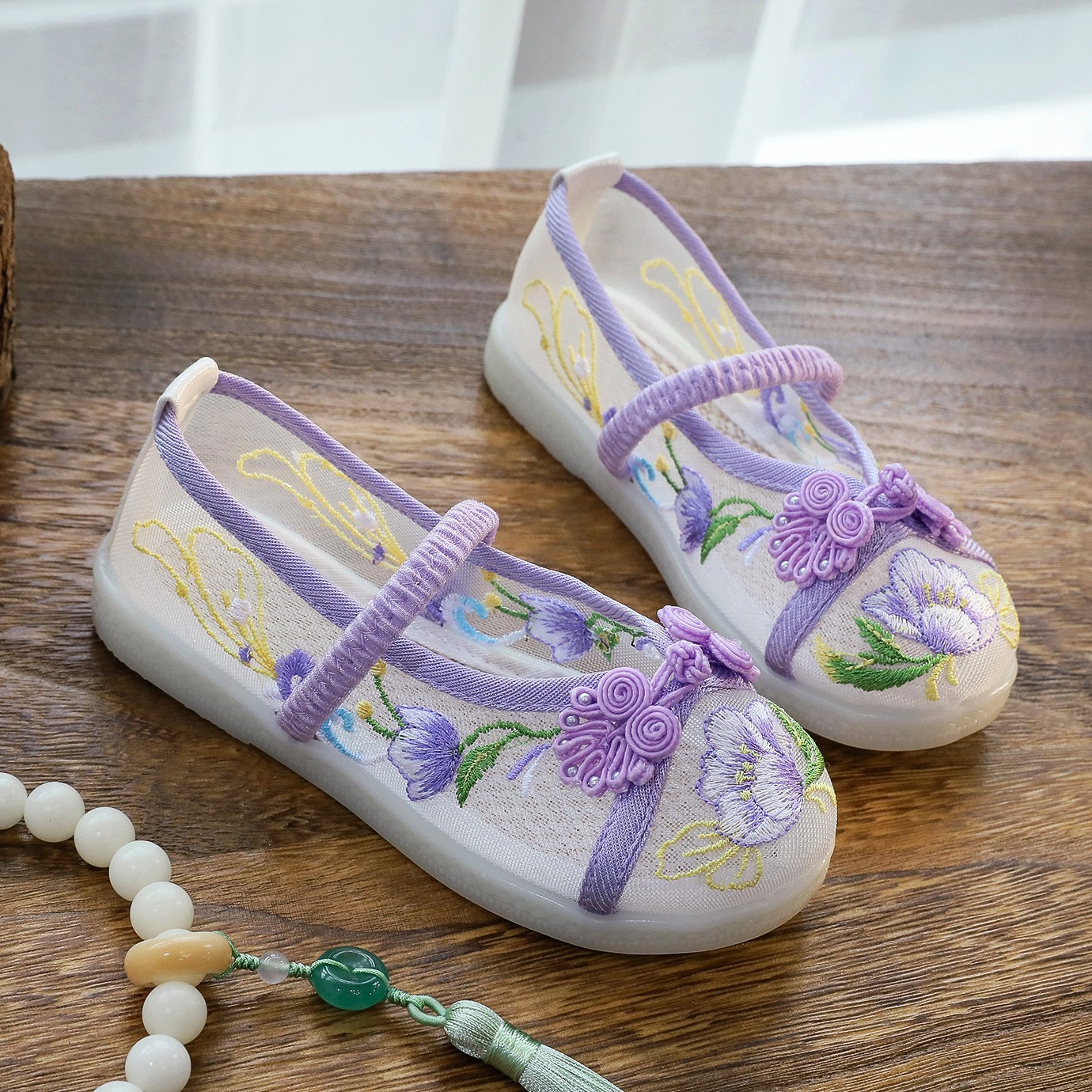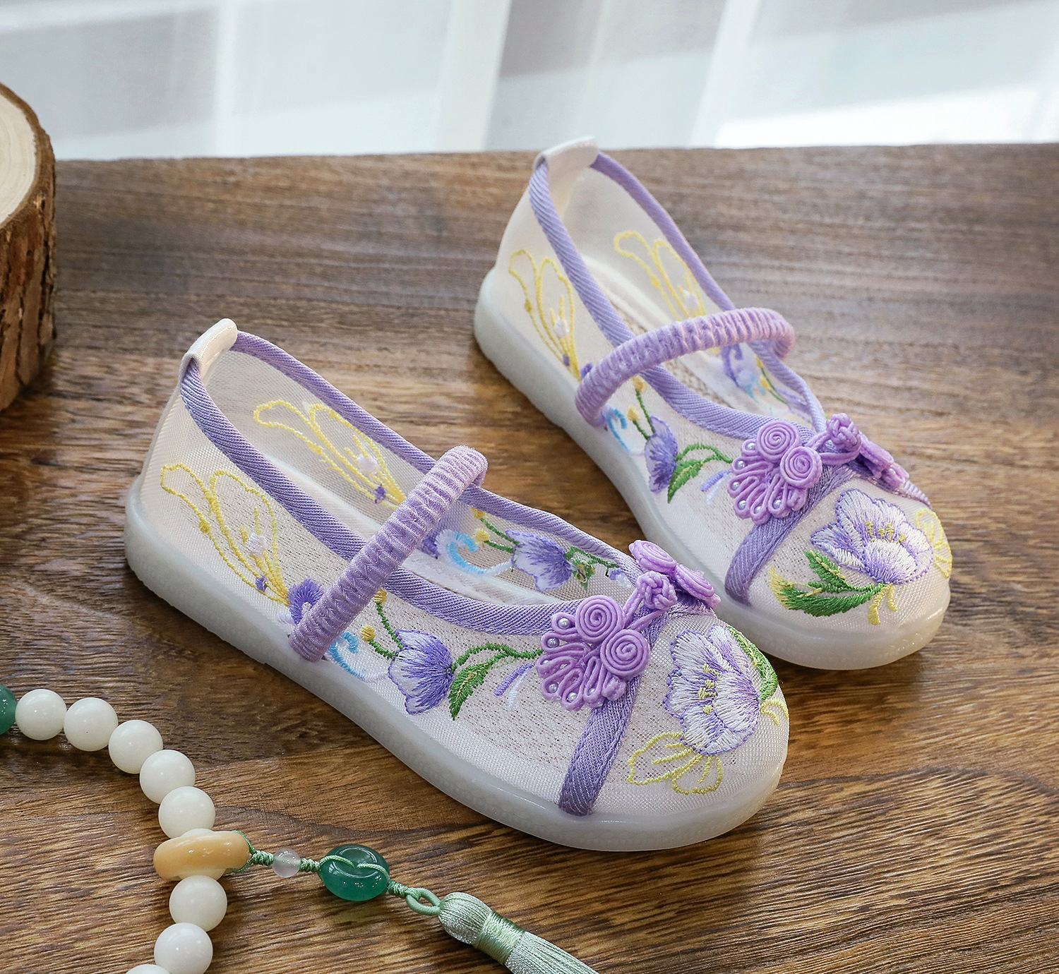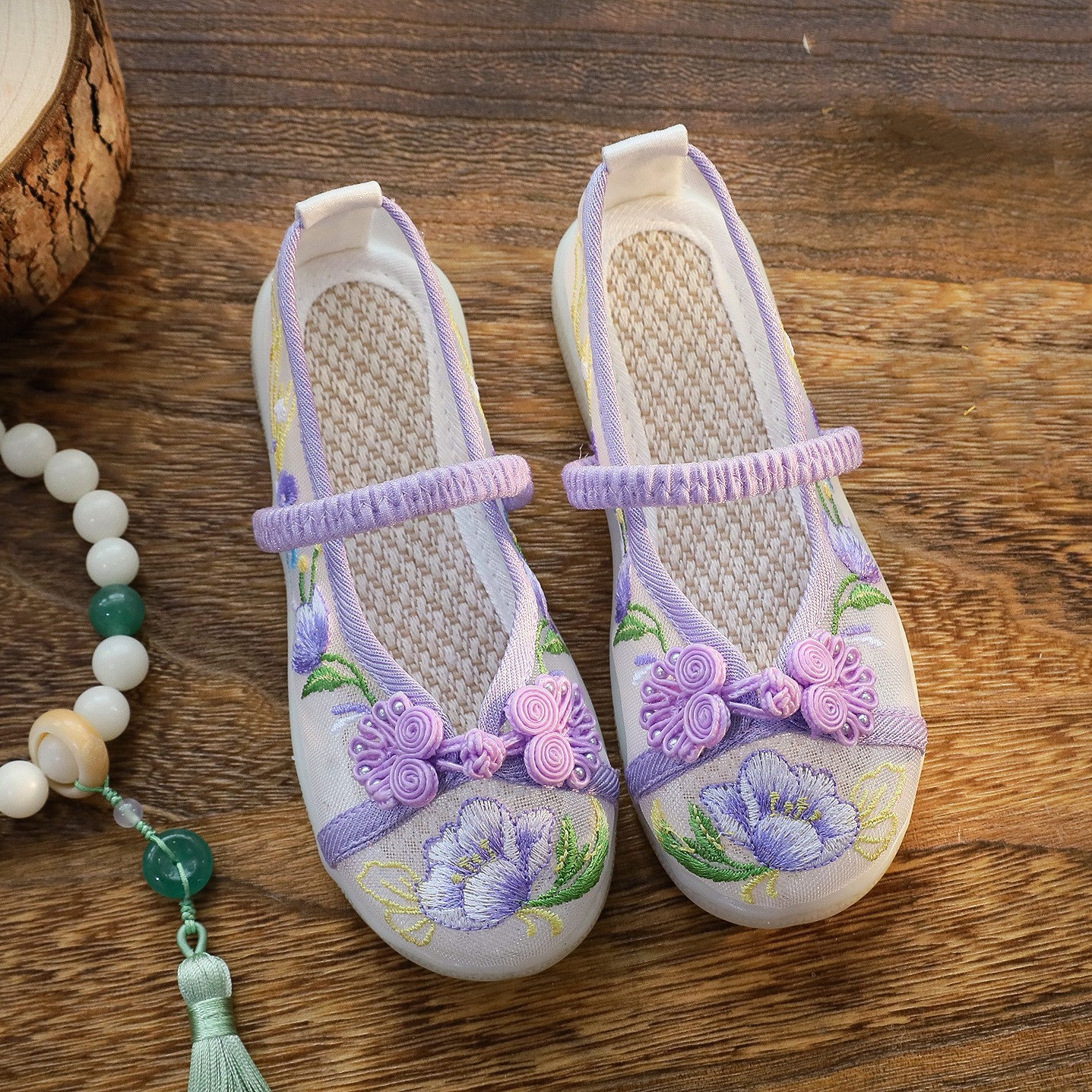 Весенняя и летняя девушка плоская обувь Hanfu детская обувь Cheongsam Baby мягкая подошва китайская обувь с вышивкой в стиле ручной работы