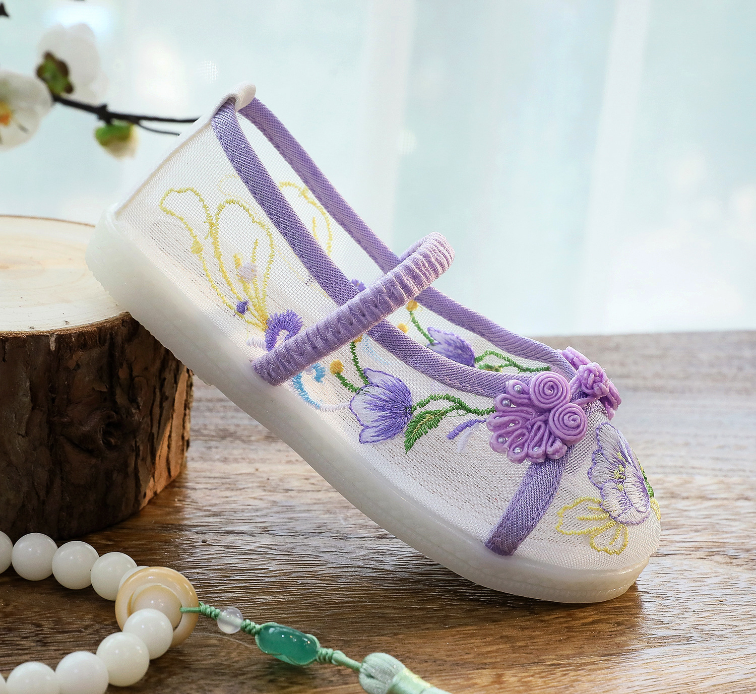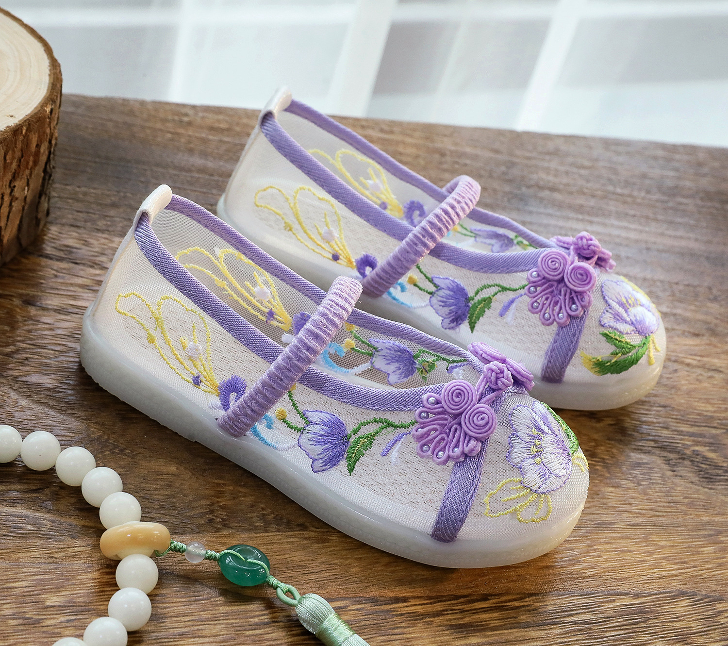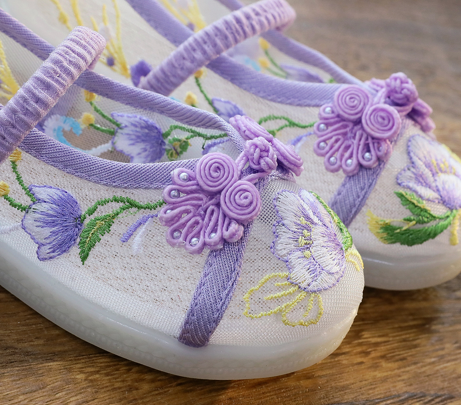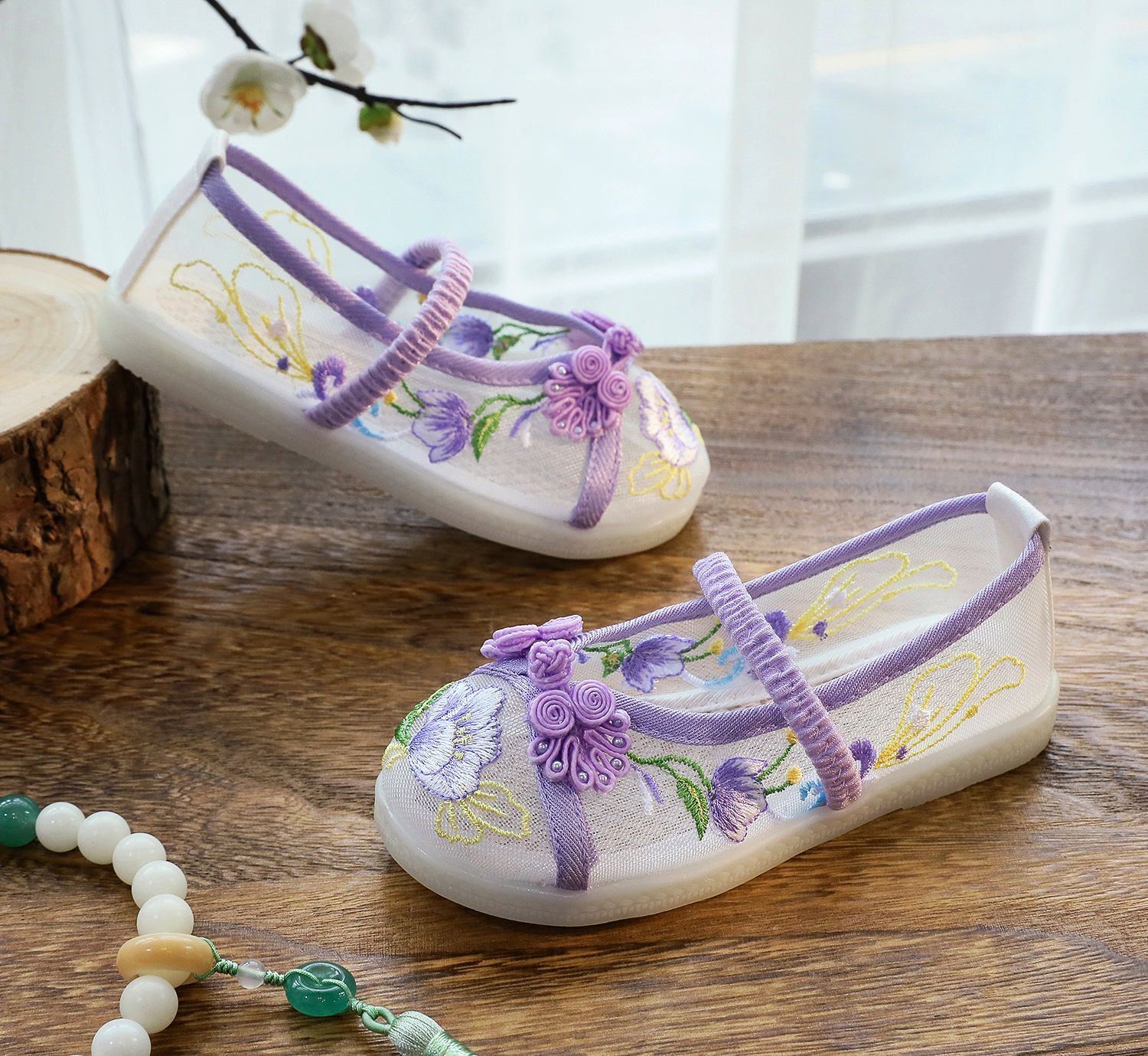 Весенняя и летняя девушка плоская обувь Hanfu детская обувь Cheongsam Baby мягкая подошва китайская обувь с вышивкой в стиле ручной работы