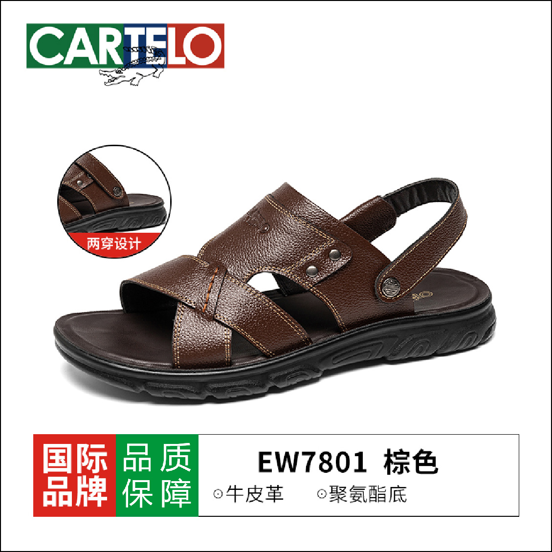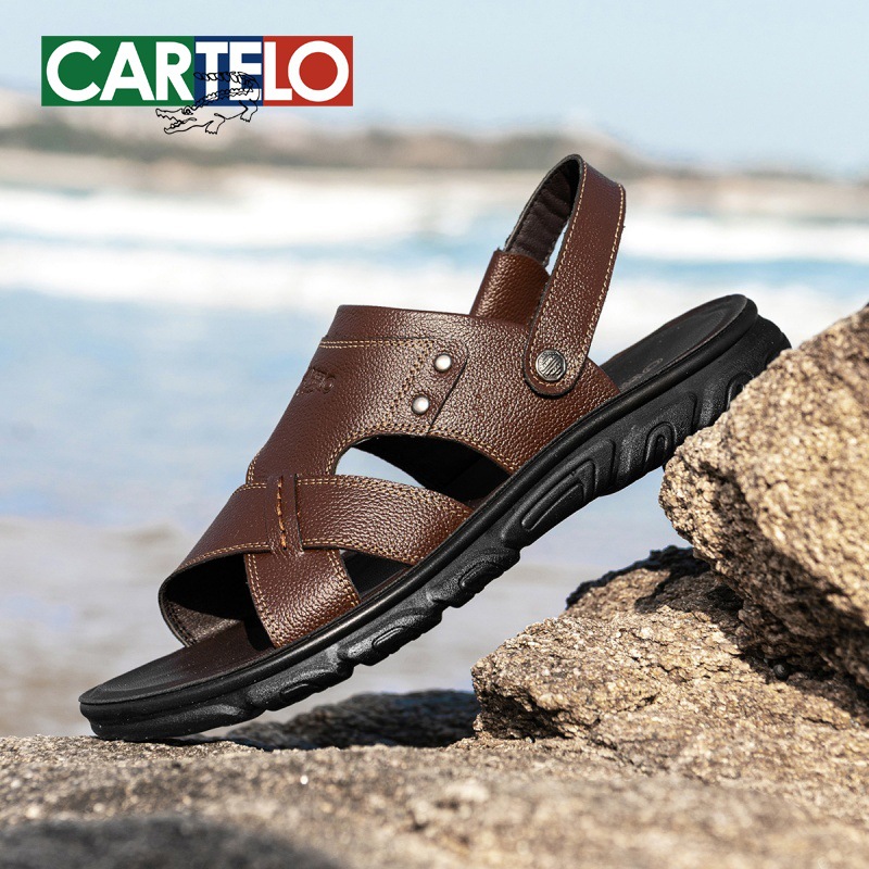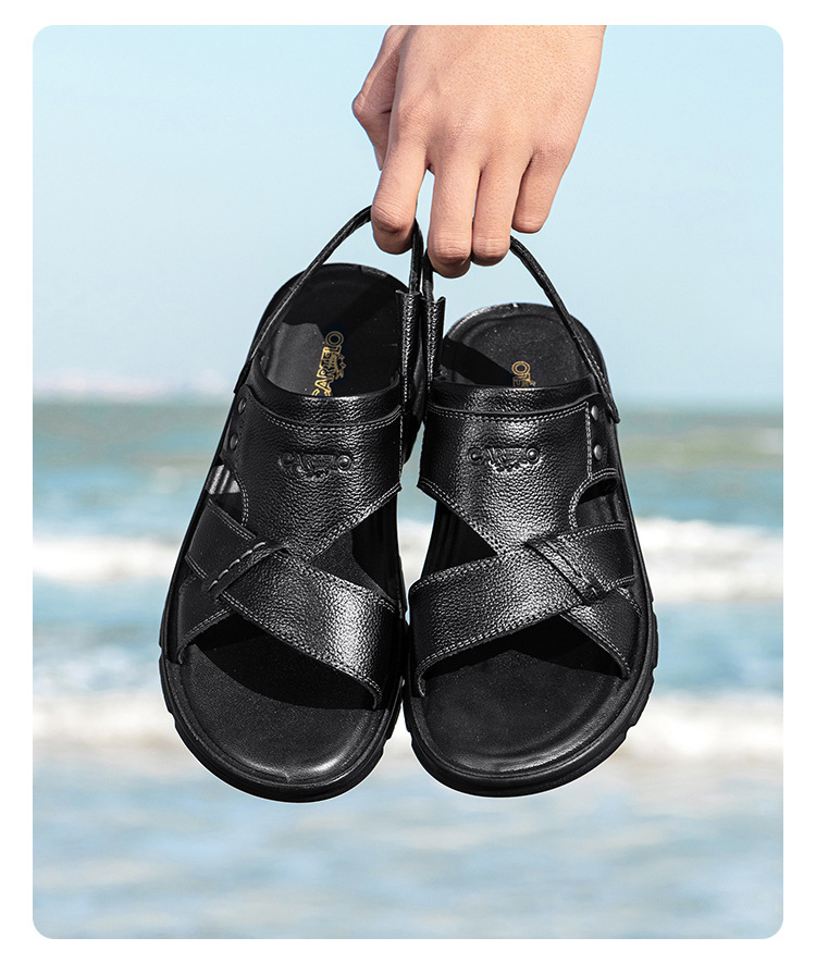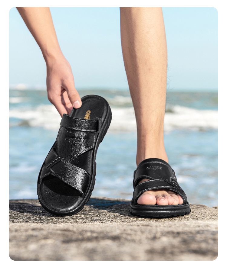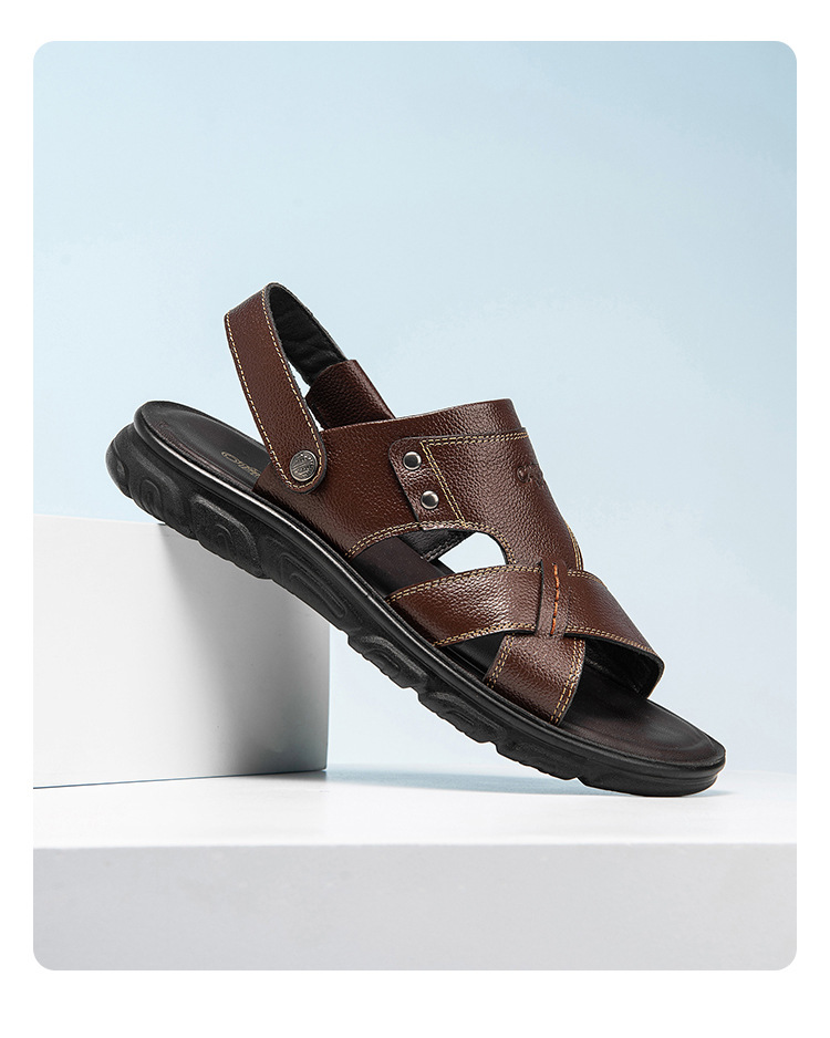Сандалии Katile Crocodile Dad Senior Летние тапочки двойного назначения Мужская кожаная мягкая подошва повседневная пляжная обувь для вождения