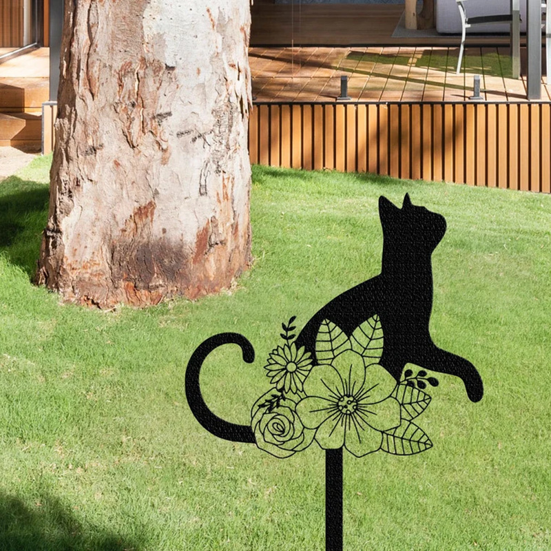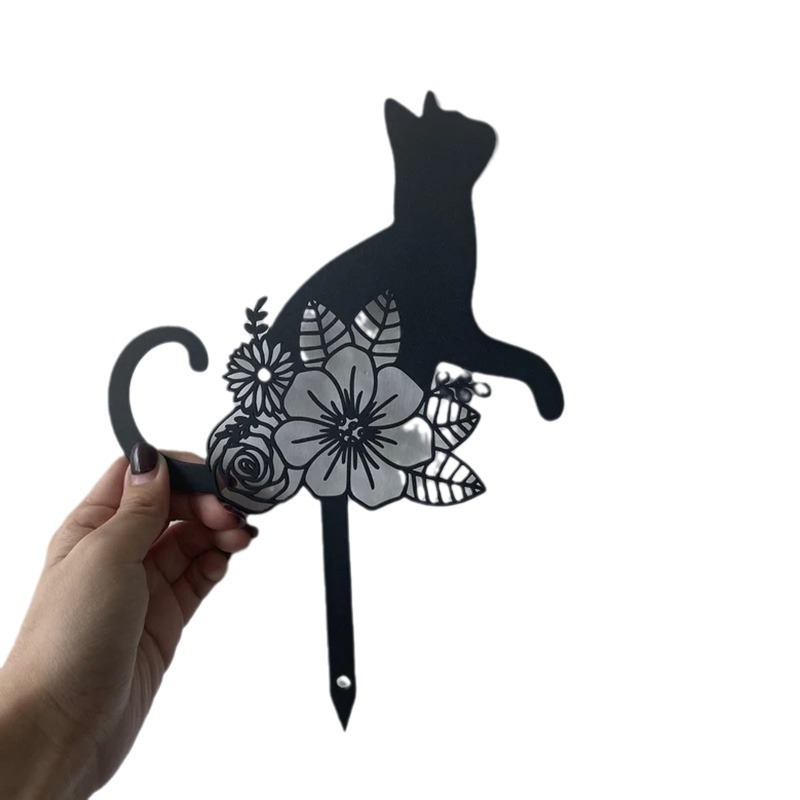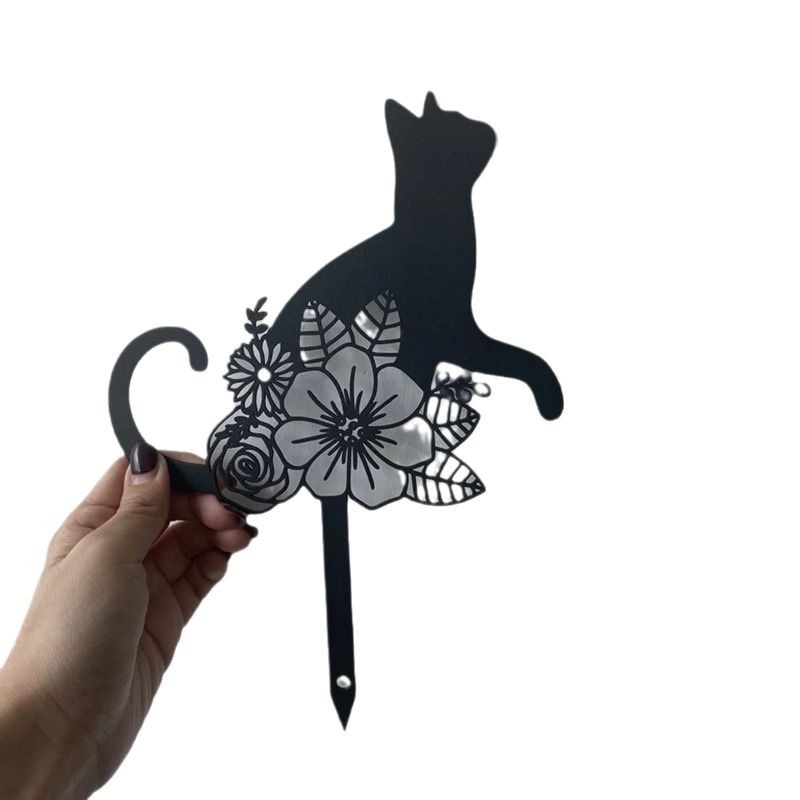 Амазонка взорвалась кошка, вставленная в открытый двор, металлический двухсторонний декоративный силуэт, полый котенок ремесла