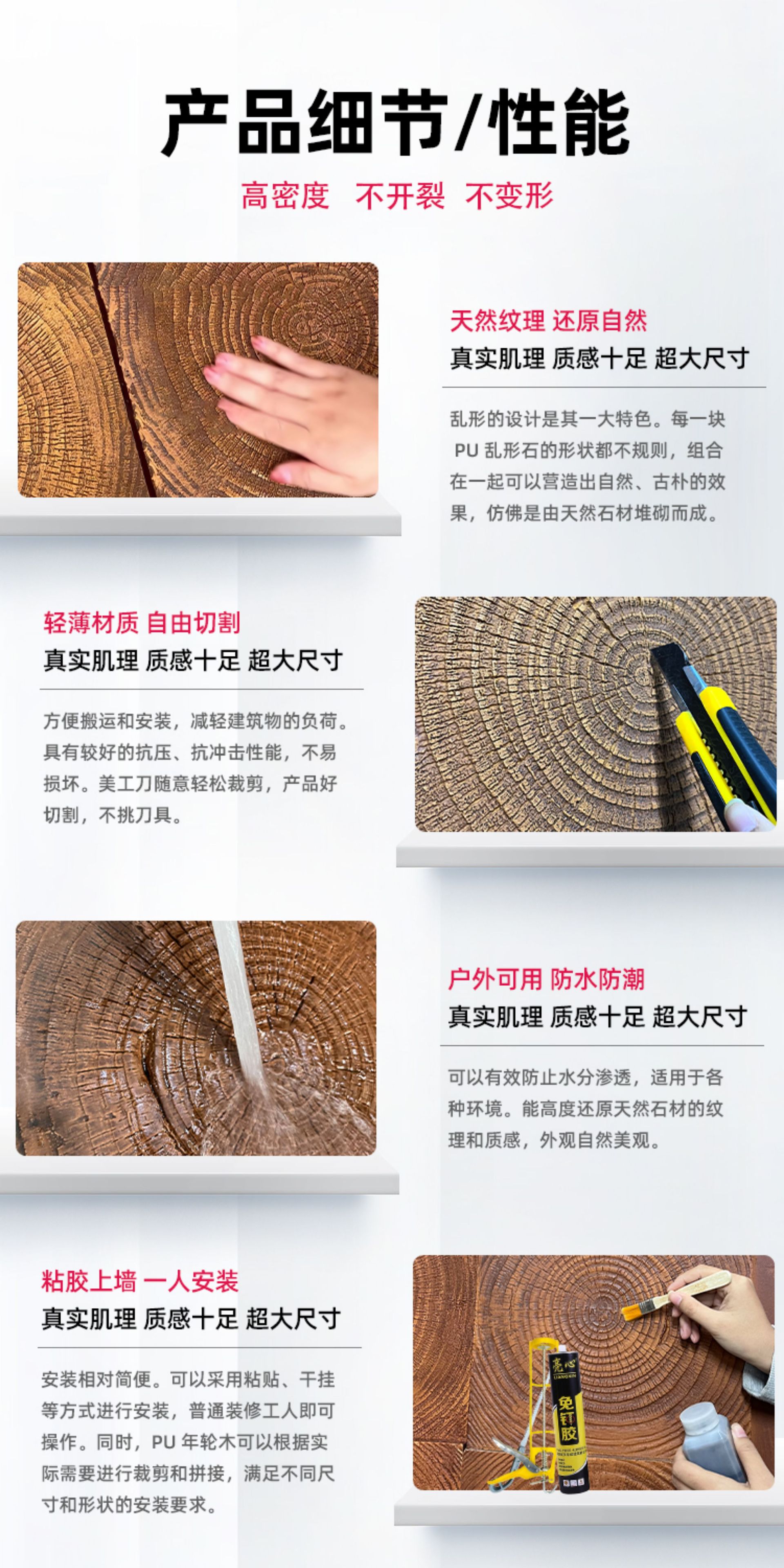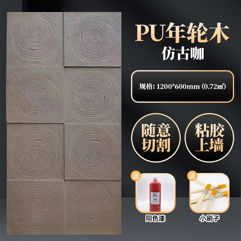 Легкий pu годичное колесо деревянное pu морская гнилая древесная культура каменный цементный элемент кирпич деревянный кирпич ретро декоративная фоновая стена
