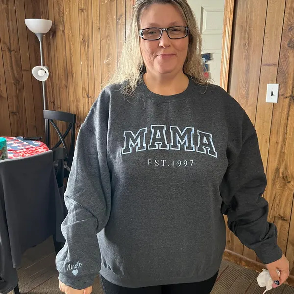 С вышивкой MAMA имя взрослого с круглым воротником свитер толстовка с вышивкой 1