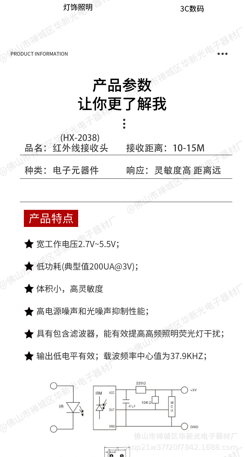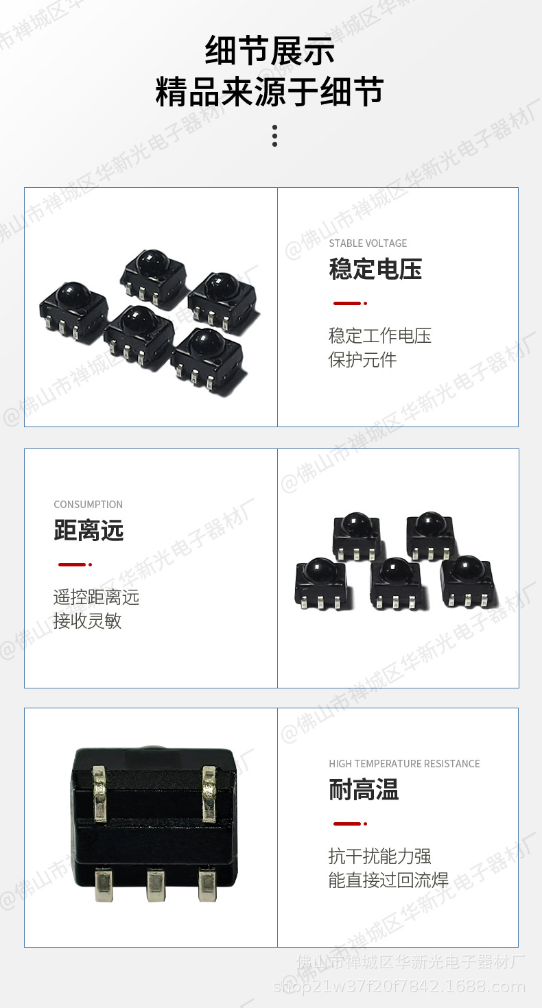 Инфракрасный приемник с шариковым креплением для пайки при помощи термофлюса, с защитой от помех на больших расстояниях, для освещения, игрушек и электроники.