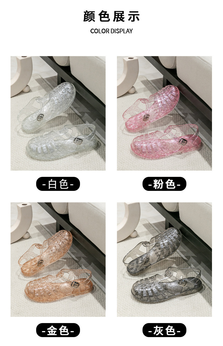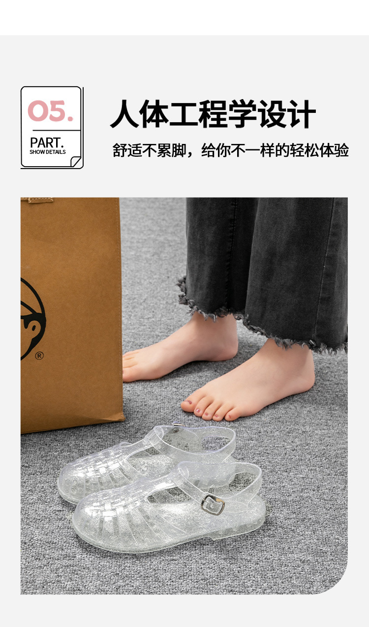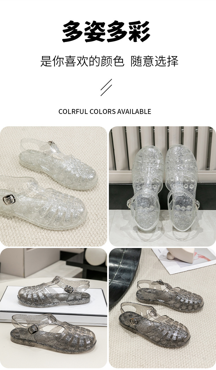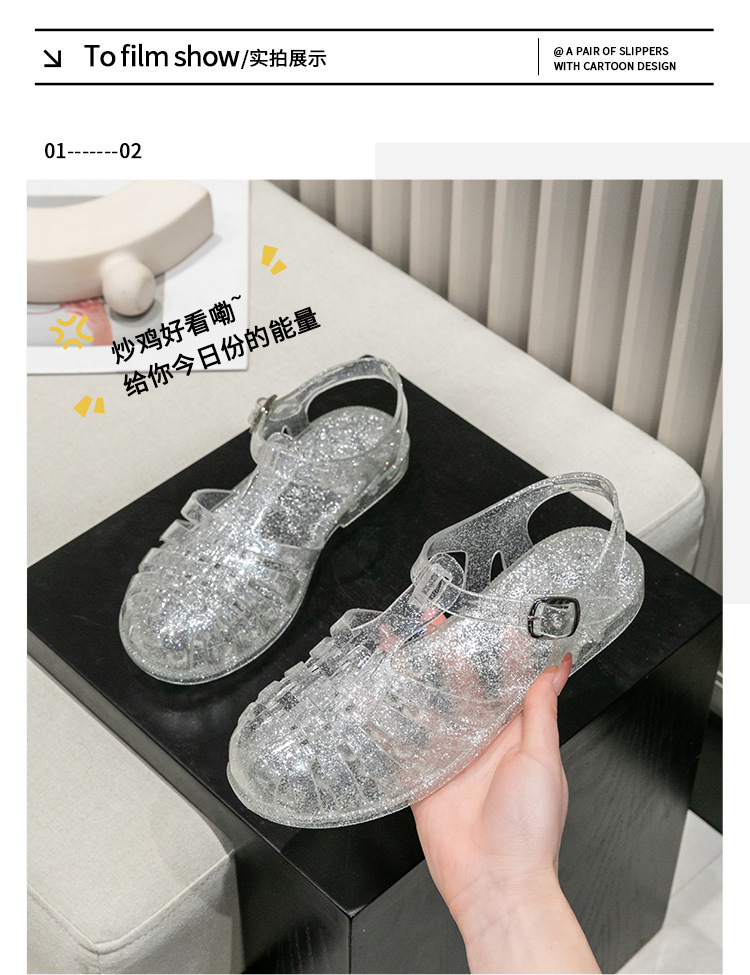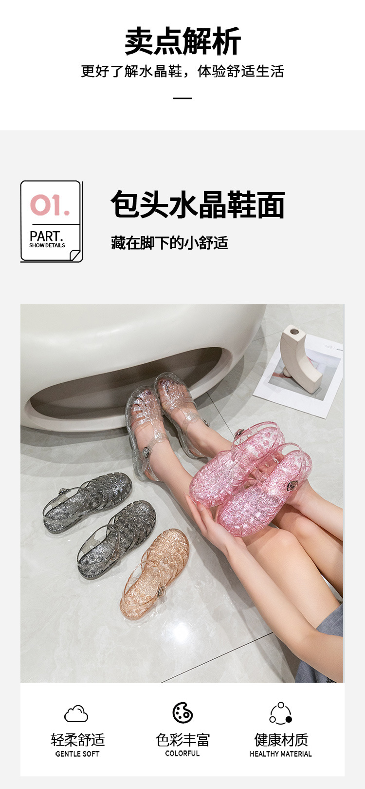Новые хрустальные римские сандалии кроссовки весной и летом плоские полые сандалии желе римские туфли бао женские сандалии