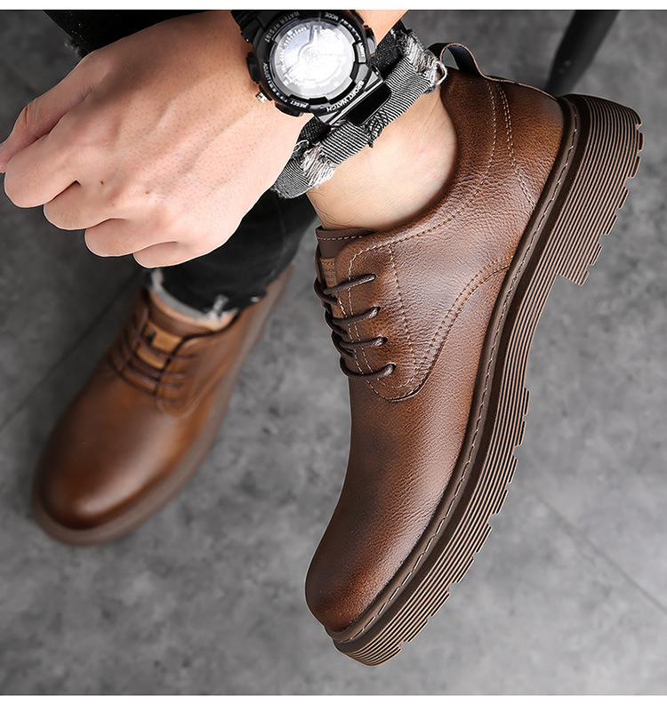 Мужская обувь Весенняя и осенняя бизнес-платье мужская кожаная обувь на толстой подошве повседневная ретро туфли с низким верхом Martin обувь мужская кожаная обувь мужская