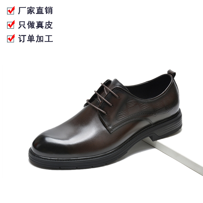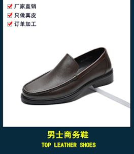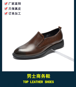 本厂是开发、生产、销售为一体的真皮男鞋生产厂家。主营:商务皮鞋、休闲鞋、豆豆鞋、时尚鞋、皮靴棉靴、凉拖鞋、功能鞋等产品。承接大小订单生产或来样贴牌加工。适合各品牌公司、批发商、零售商、专卖店、团体团购、天猫商城、独立商城、淘宝店、个体代发等采购。工厂秉承“诚信为本,物美价廉,服务至上”的原则,与客户达到真正的双赢!