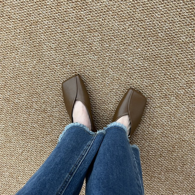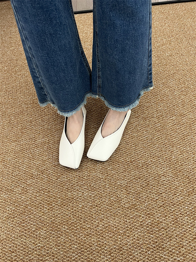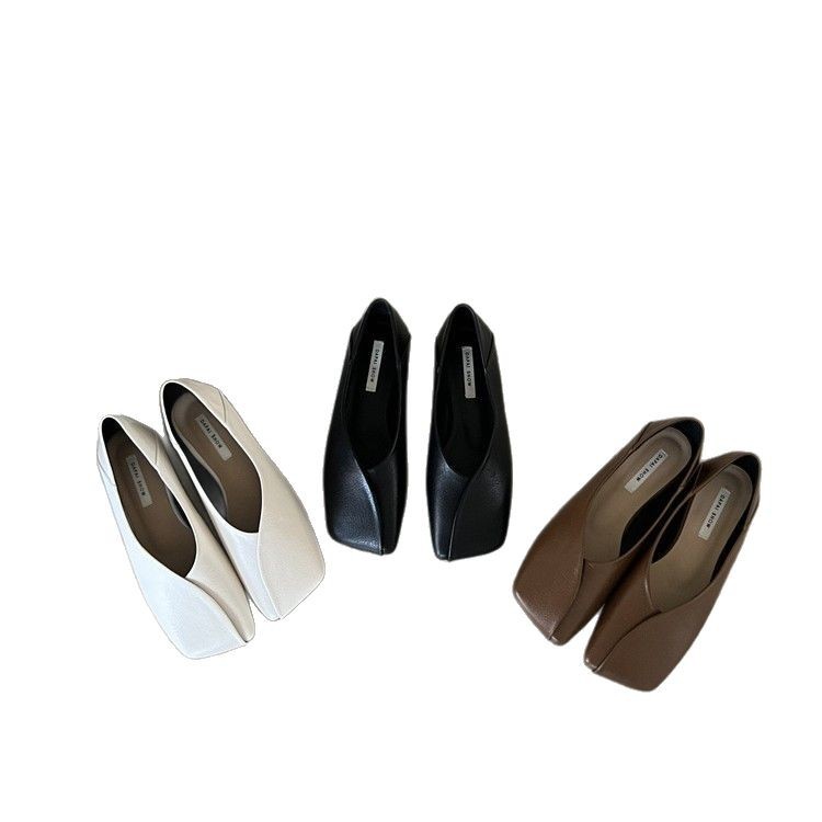Французские мягкие кожаные ретро одиночные туфли женские простые весенние и осенние неглубокие молочные туфли на плоской подошве