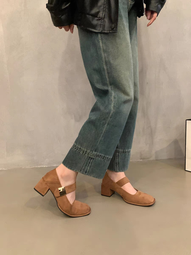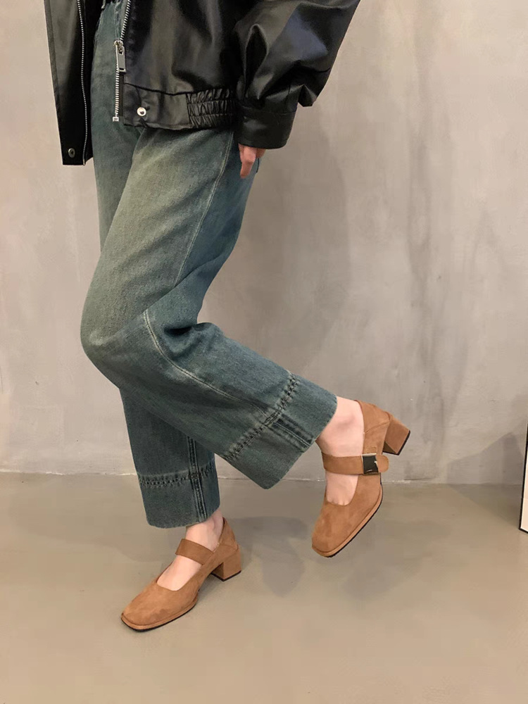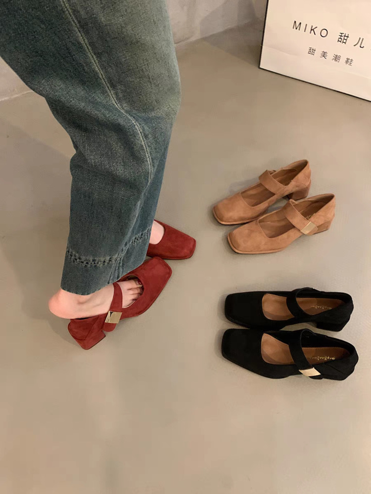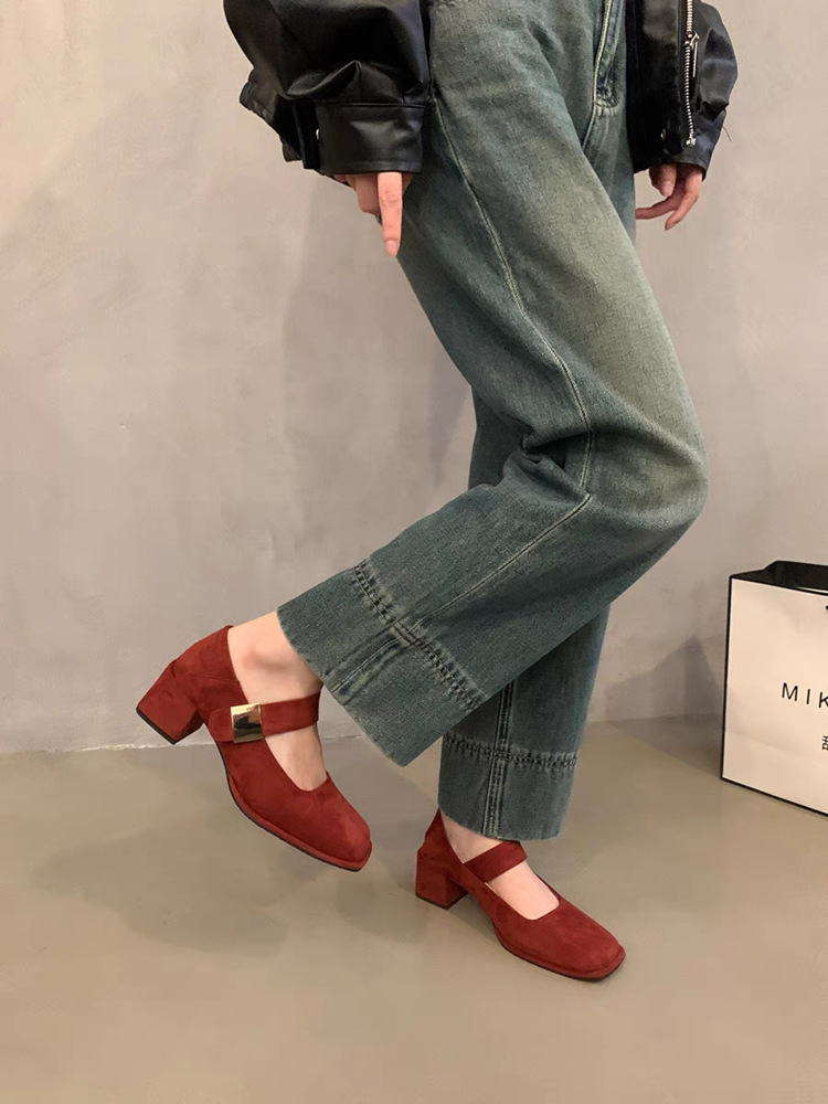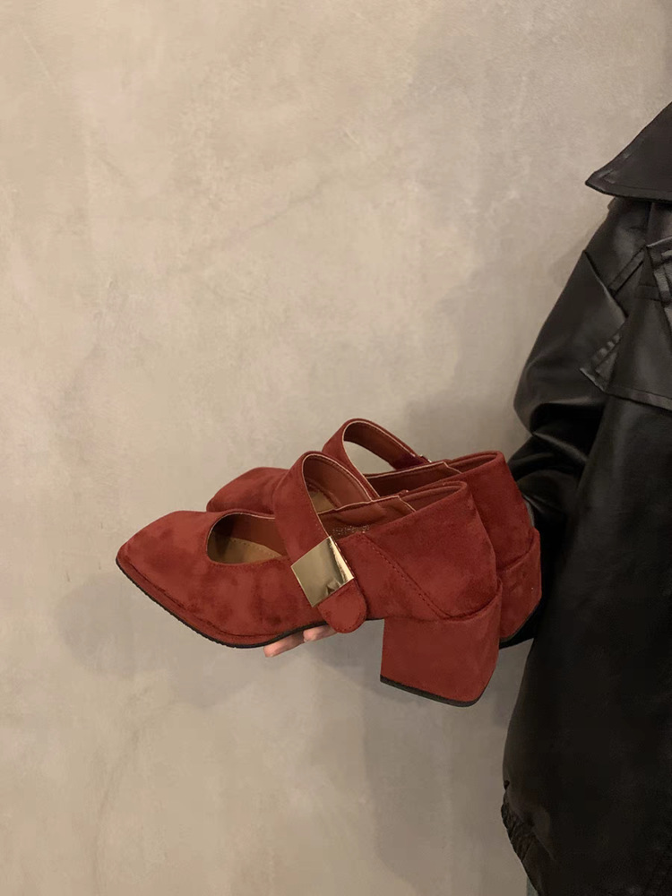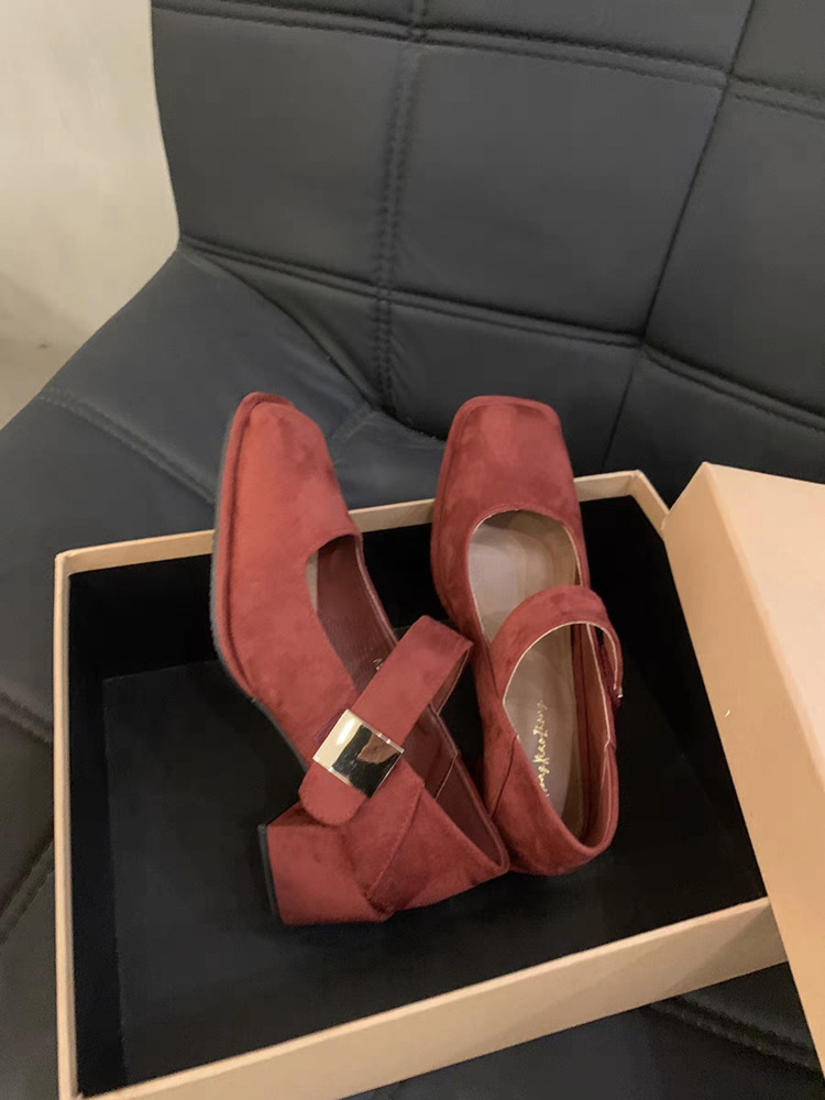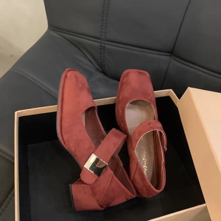 Французские толстые каблуки квадратные красные темпераментные одиночные туфли женские туфли 2025 новый весенний и осенний ретро высокий смысл обувь Мэри Джейн