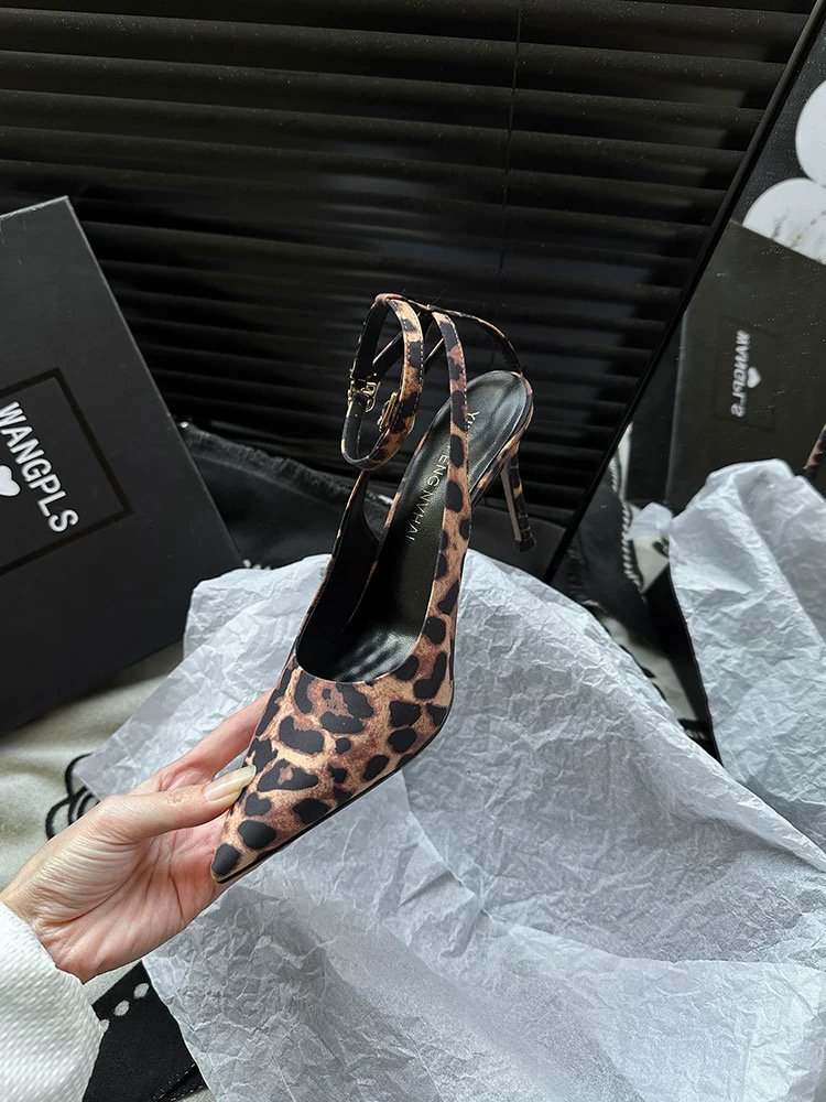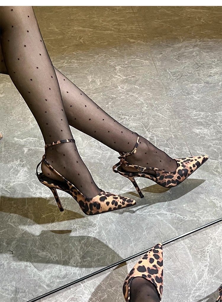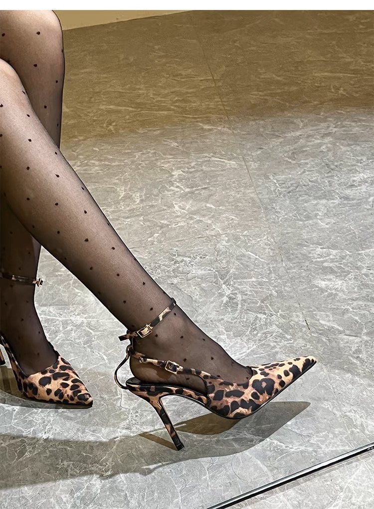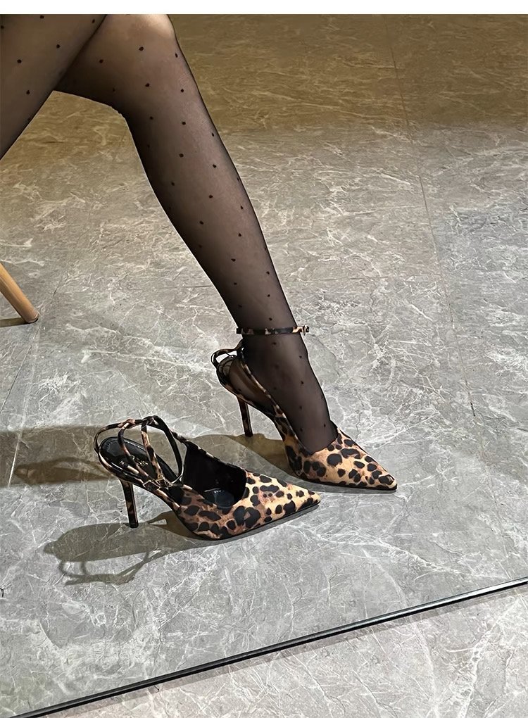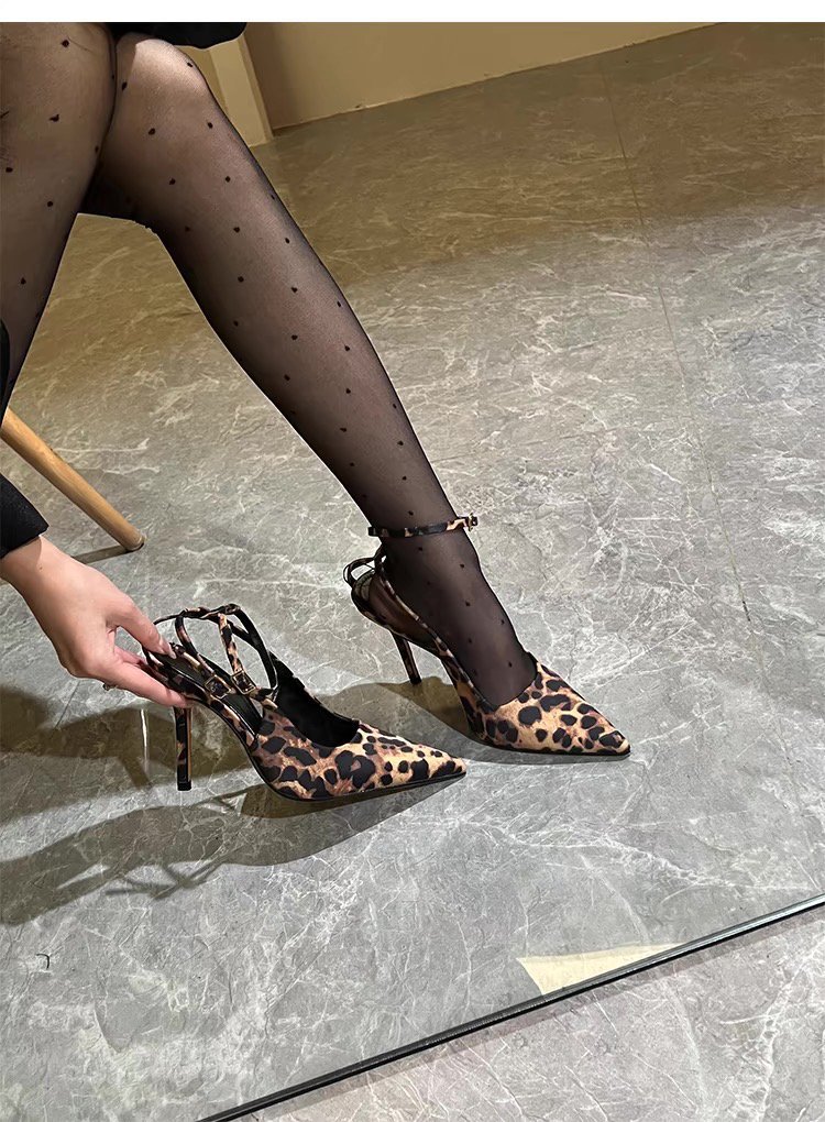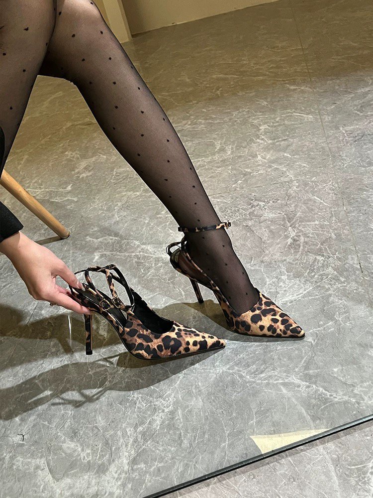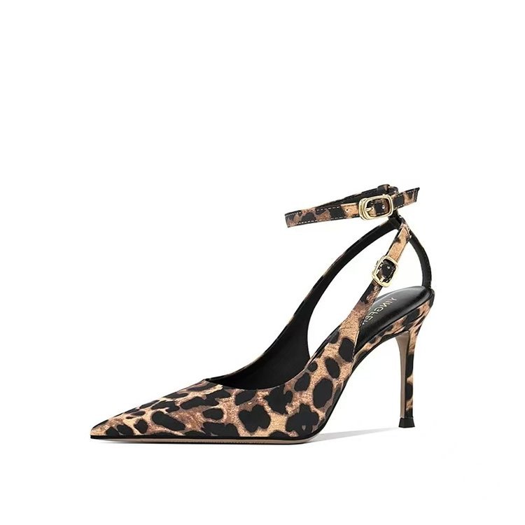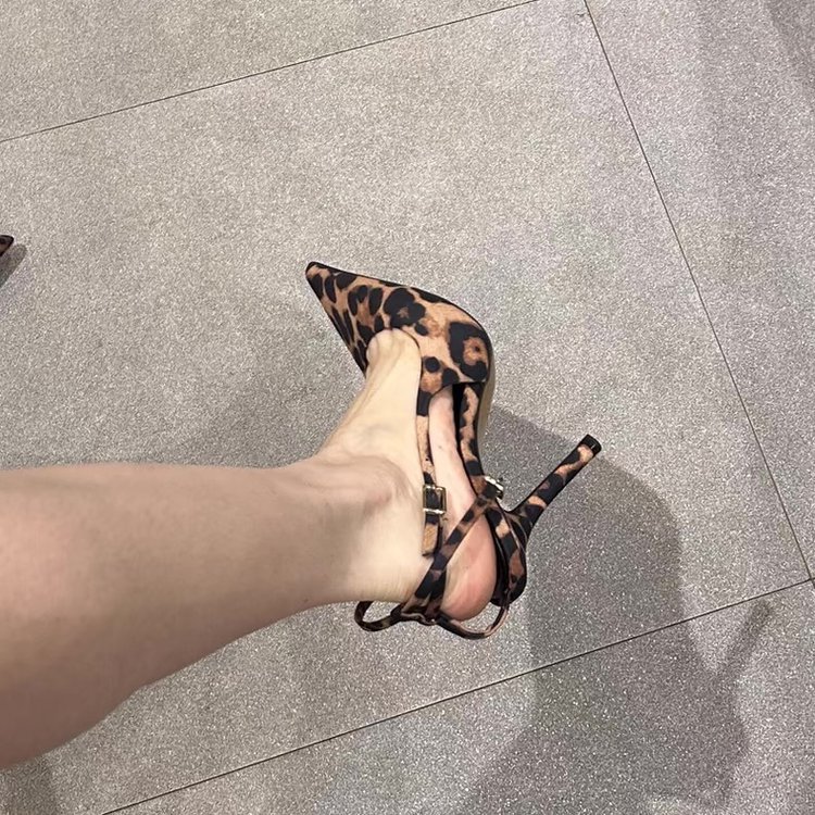 Туфли на высоком каблуке с леопардовым принтом Баотоу Женская весна и лето 2025 Новый пояс с тонким каблуком