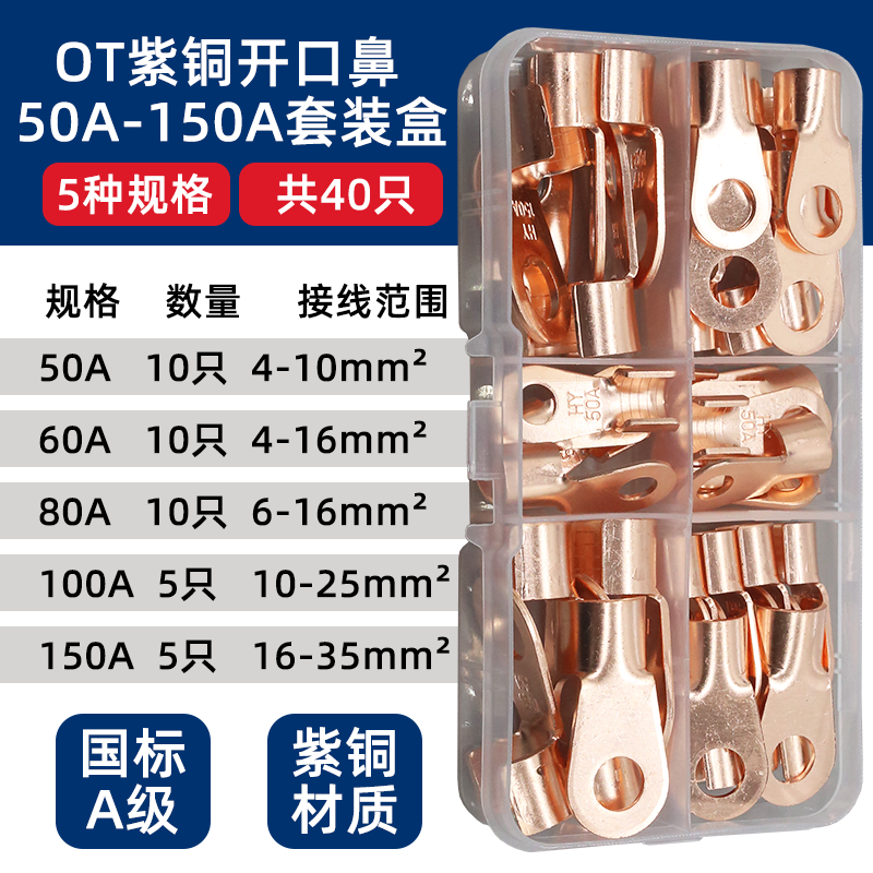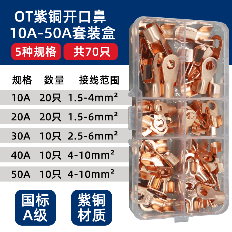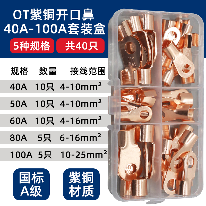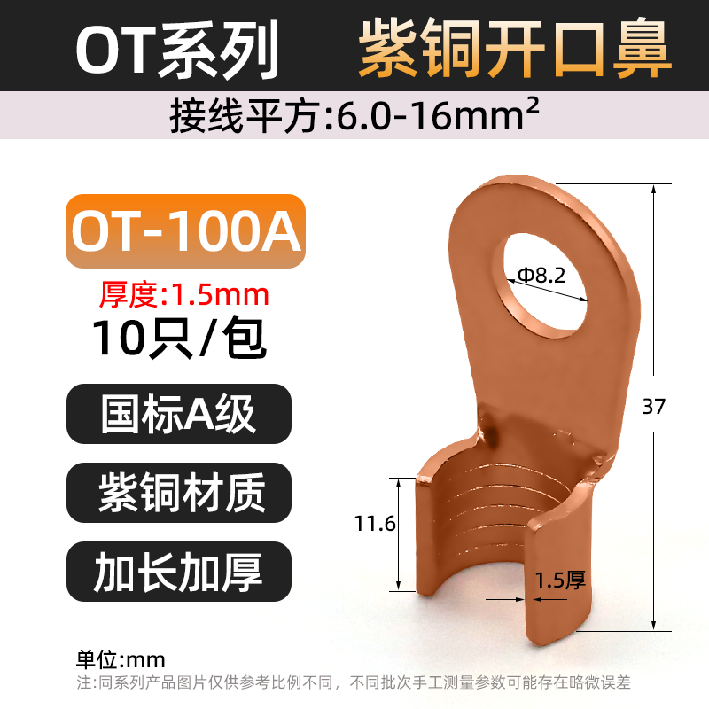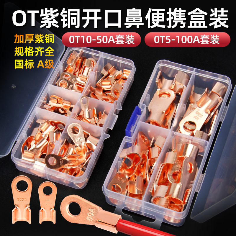 Национальный стандарт OT медный открытый носовой клеммный клеммный 10/50/100A медный нос аккумуляторная батарея тележка круглое отверстие проволока медный разъем