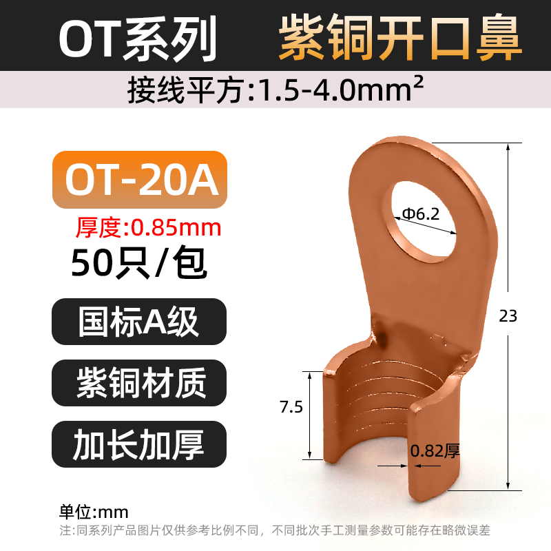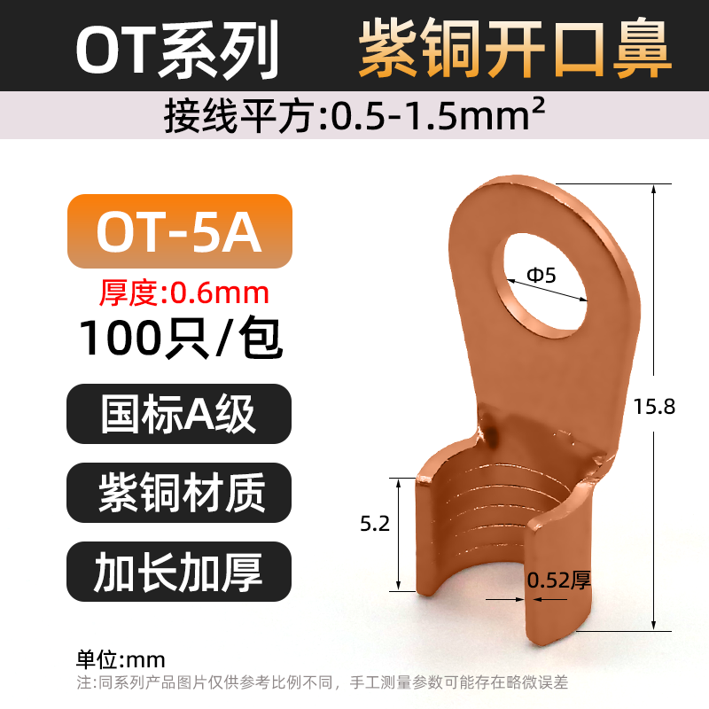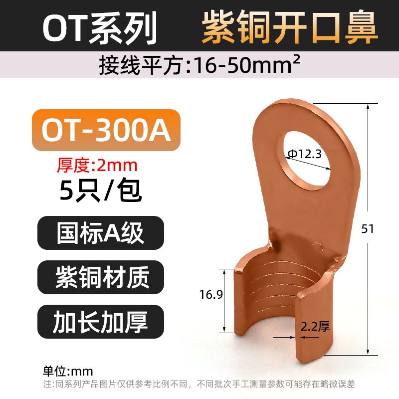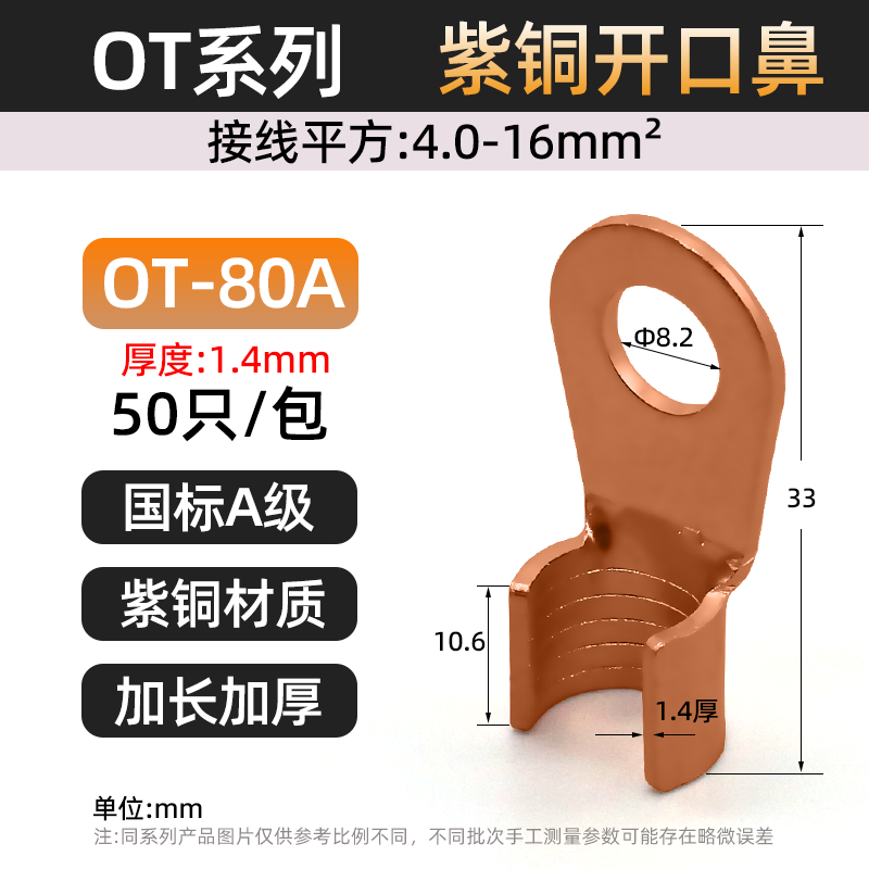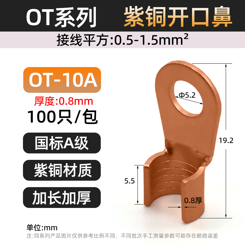 Национальный стандарт OT медный открытый носовой клеммный клеммный 10/50/100A медный нос аккумуляторная батарея тележка круглое отверстие проволока медный разъем
