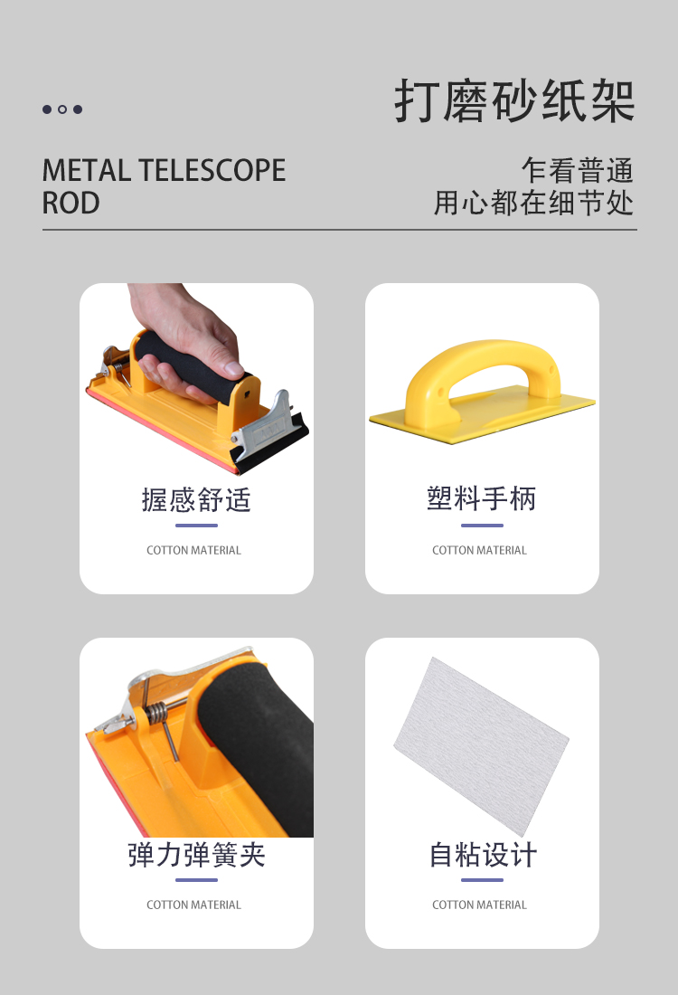 1 держатель для наждачной бумаги (наждачная бумага в комплект не входит, цвет случайный); 1 самоклеящийся держатель наждачной бумаги (наждачная бумага в комплект не входит); 1 держатель для наждачной бумаги + 5 шкурок грубой зернистости 180.; 1 держатель наждачной бумаги + 5 штук ткани средней абразивности с зернистостью 320.; 1 держатель для наждачной бумаги + 5 листов мелкой наждачной бумаги зернистостью 600.; Держатель самоклеящейся наждачной бумаги + 10 листов самоклеящейся наждачной бумаги с зернистостью 120.; Держатель самоклеящейся наждачной бумаги + 10 листов самоклеящейся наждачной бумаги с зернистостью 180.; Самоклеящийся держатель наждачной бумаги + 10 листов самоклеящейся наждачной бумаги с зернистостью 320.; Держатель самоклеящейся наждачной бумаги + 10 листов самоклеящейся наждачной бумаги с зернистостью 600.; 1 подставка для наждачной бумаги + 10 листов грубой наждачной бумаги с зернистостью 180.; 1 подставка для наждачной бумаги + 10 листов наждачной бумаги среднего размера 320 меш.; 1 держатель для наждачной бумаги + 10 листов наждачной бумаги с зернистостью 600.; 10 листов наждачной бумаги зернистостью 180.; 10 листов наждачной бумаги средней плотности с зернистостью 320.; 10 листов мелкой наждачной бумаги с плотностью 600.; 10 листов самоклеящейся наждачной бумаги зернистостью 120.; 10 листов самоклеящейся наждачной бумаги зернистостью 180.; 10 листов самоклеящейся наждачной бумаги зернистостью 320.; 10 листов самоклеящейся наждачной бумаги зернистостью 600.; 20 листов крупной наждачной бумаги 180 меш.; 20 листов наждачной бумаги среднего размера с зернистостью 320.; 20 листов мелкой наждачной бумаги 600 грит.; Универсальный держатель наждачной бумаги + 5 листов соответствующей абразивной ткани зернистостью 180.; Универсальный держатель наждачной бумаги + 5 листов соответствующей абразивной ткани зернистостью 320.; Универсальный держатель наждачной бумаги + 5 листов соответствующей абразивной ткани зернистостью 600.; Телескопическая стойка из алюминиевого сплава 1.2m (наждачная бумага в комплект не входит); Телескопическая стойка из алюминиевого сплава 2m (наждачная бумага в комплект не входит); Телескопическая стойка из алюминиевого сплава 3m (наждачная бумага в комплект не входит)
