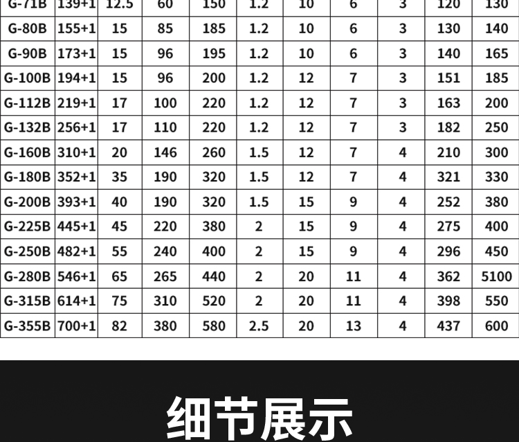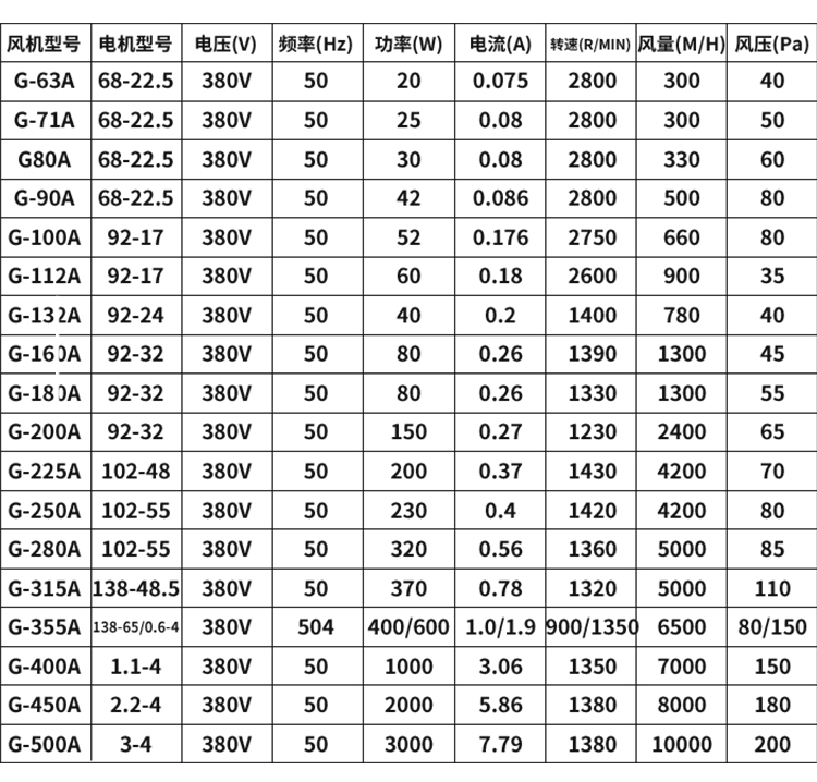 G80A без корпуса, кронштейн 380 В, диаметр 155 мм.; G71A без корпуса, кронштейн 380 В, диаметр 136 мм.; G71A имеет корпус 380 В, диаметр корпуса 136 мм.; G71B имеет корпус 380 В, диаметр корпуса 136 мм.; G80A имеет корпус 380 В, диаметр корпуса 155 мм.; G80B расширенный корпус 380 В диаметр корпуса 155 мм; G90A без корпуса, кронштейн 380 В, диаметр 175 мм.; G90A имеет корпус 380 В, диаметр корпуса 175 мм.; G90B расширенный корпус 380 В диаметр корпуса 175 мм; G100A без корпуса, кронштейн 380 В, диаметр 193 мм.; G100A имеет корпус 380 В, диаметр корпуса 193 мм.; G100B удлиненный корпус 380 В диаметр корпуса 193 мм; G112A без корпуса, кронштейн 380 В, диаметр 217 мм.; G112A имеет корпус 380 В, диаметр корпуса 217 мм.; G112B удлиненный корпус 380 В диаметр корпуса 217 мм; G132A безкорпусной семилопастной небольшой двигатель 380 В, диаметр 258 мм; Большой двигатель G132 без корпуса с семью лопастями, 380 В, диаметром 258 мм.; Большой бескорпусный пятилопастной двигатель G132A, 380 В, диаметр 258 мм.; G132A имеет корпус 380 В, диаметр корпуса 258 мм.; G132B удлиненный корпус 380 В диаметр корпуса 258 мм; G132B удлиненный корпус 380 В, высота 280; G160A безкорпусной кронштейн с семью лопастями, 380 В, диаметр 314 мм.; G160A безкорпусный пятилопастной 380 В; G160A имеет корпус 380 В, диаметр корпуса 314 мм.; G160B расширенный корпус 380 В, диаметр корпуса 314 мм; G160B удлиненный корпус 380 В, высокий 300; G180A безкорпусной кронштейн с семью лопастями, 380 В, диаметр 352 мм; G180A безкорпусный пятилопастной 380 В; G180A имеет корпус 380 В, диаметр корпуса 352 мм.; G180B расширенный корпус 380 В, диаметр корпуса 352 мм; G200A без корпуса, кронштейн 380 В, диаметр 395 мм.; G200A без корпуса, мощная версия, кронштейн 380 В, диаметр 395 мм.; G200A имеет корпус 380 В, диаметр корпуса 395 мм.; G200B удлиненный корпус 380 В диаметр корпуса 395 мм; G225A безоболочечный кронштейн 380 В, диаметр 443 мм; G225A безоболочная версия высокой мощности, кронштейн 380 В, диаметр 443 мм; G225A имеет корпус 380 В, диаметр корпуса 443 мм.; G225B удлиненный корпус 380 В диаметр корпуса 443 мм; G250A без корпуса, кронштейн 380 В, диаметр 482 мм; G250A безоболочная версия высокой мощности, кронштейн 380 В, диаметр 482 мм; G250A имеет корпус 380 В, диаметр корпуса 482 мм.; G250B удлиненный корпус 380 В диаметр корпуса 482 мм; G280A безоболочечный кронштейн 380 В, диаметр 546 мм; G280A безоболочная версия высокой мощности, кронштейн 380 В, диаметр 546 мм; G280A имеет корпус 380 В, диаметр корпуса 546 мм.; G280B расширенный корпус 380 В, диаметр корпуса 546 мм; G315A безкорпусной кронштейн 380 В, диаметр 616 мм; G315A безкорпусная версия высокой мощности, кронштейн 380 В, диаметр 616 мм; G315A имеет корпус 380 В, диаметр корпуса 616 мм.; G315B расширенный корпус 380 В, диаметр корпуса 616 мм; G355A безоболочечный кронштейн 380 В, диаметр 696 мм; G355A безоболочная версия высокой мощности, кронштейн 380 В, диаметр 696 мм; G355A имеет корпус 380 В, диаметр корпуса 696 мм.; G355B расширенный корпус 380 В, диаметр корпуса 696 мм