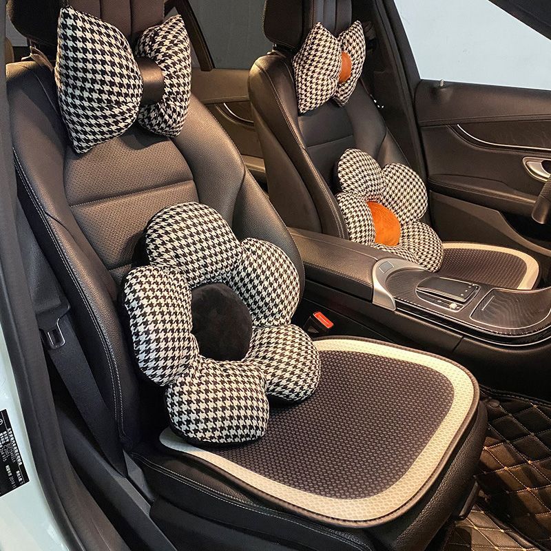 Набор из 6 предметов с цветком «гусиные лапки» [черный]; Комплект из 6 предметов «гусиные лапки» [черный + оранжевый]; Набор из 6 предметов с цветком «гусиные лапки» [оранжевый]; Набор из 4 предметов с поддержкой талии в виде цветка «гусиные лапки» [черный]; Набор из 4 предметов с поддержкой талии в виде цветка «гусиные лапки» [оранжевый]; Комплект из 4 предметов [подголовник и пояс с бантом в виде «гусиных лапок»]; Набор из 4 предметов с поддержкой талии в виде цветка «гусиные лапки» [черный + оранжевый]; Пара черных подголовников с узором «гусиные лапки»; 2 оранжевых подголовника с узором «гусиные лапки»; Оранжевая поддержка талии с цветком «гусиные лапки»; Поддержка талии с черным цветком «гусиные лапки»; Подголовник «гусиные лапки» черный + оранжевый; Сращенная подушка + пояс с цветком «гусиные лапки» черный; 1 черный пояс с бантом в виде «гусиных лапок»; Сращенная подушка + 2 поясные поддержки в виде цветка «гусиные лапки»; 1 оранжевая поясничная опора + 1 подушка сиденья; 1 оранжевая поясничная опора + 1 черная поясничная опора + 2 подушки сиденья; Подставка для талии с цветком «гусиные лапки» оранжевый 2 шт.; Подставка для талии с цветком «гусиные лапки», черная, 2 шт.; Пояс с цветком «гусиные лапки» оранжевый + черный; Одинарный подголовник с черным узором «гусиные лапки»; Оранжевый подголовник с узором «гусиные лапки» одинарный