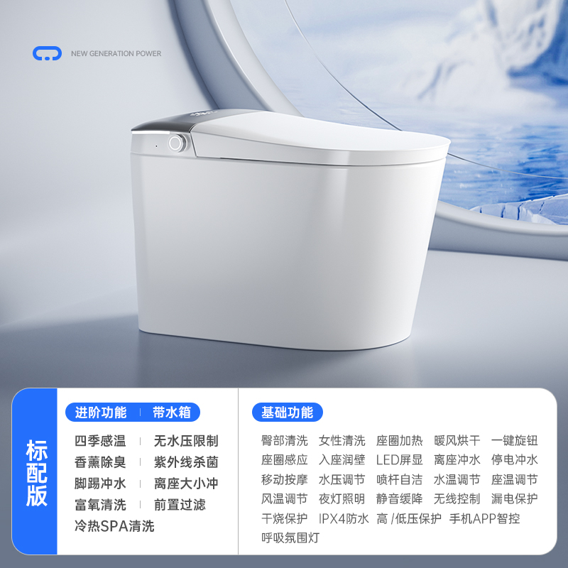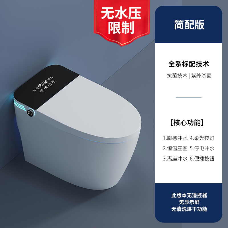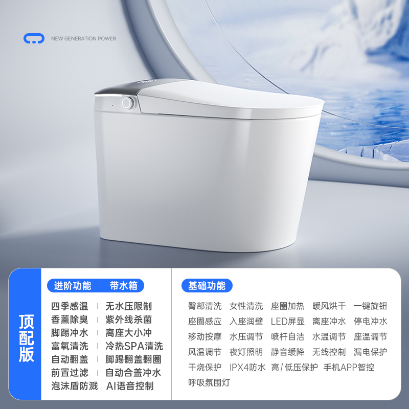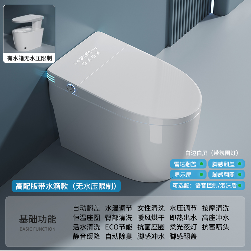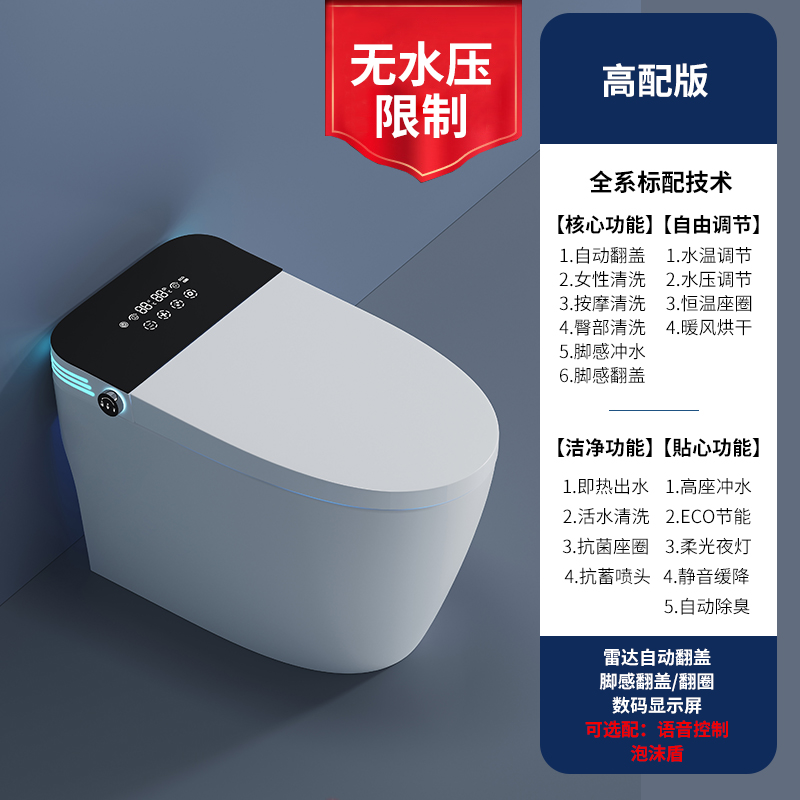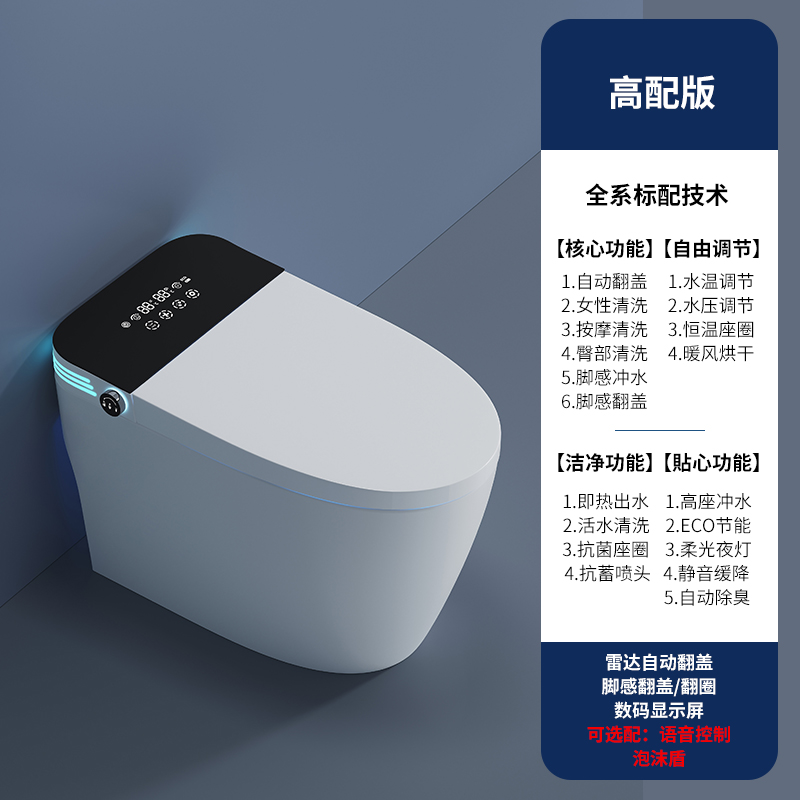 дистанционное управление; Бустерный насос; сухой; Тип мгновенного нагрева; Регулировка температуры воды; Умыть ягодицы; женщины стирают; Подогрев сидений; Самоочистка сопла; Автоматическая дезодорация; Очистка движущейся насадки; Голосовое управление; Температура нагревающей воды; Отрегулируйте нагрев; Индукционная откидная крышка; пенопластовый щит; Система ароматерапии; Нет ограничения давления воды; Промывка при отключении электроэнергии; удар ногой; удар ногой; Двойной режим срабатывания; Тепло четырех времен года; Регулировка давления промывочной воды