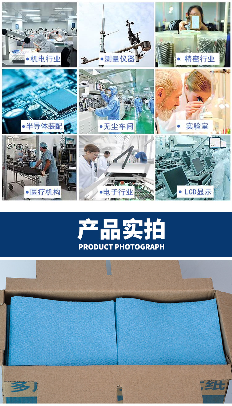 Промышленные беспыльные салфетки Бумага Нефтяная ткань Нетканые абсорбирующую бумагу Электростатическая очистка Автомобильная краска Пленка для удаления пыли Ткань
