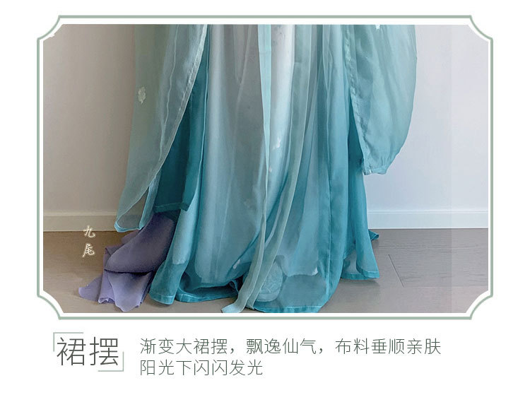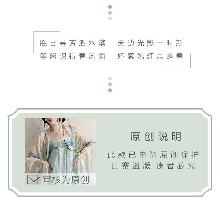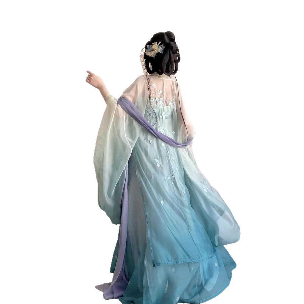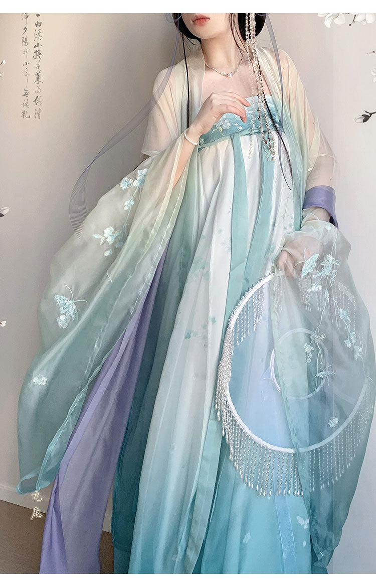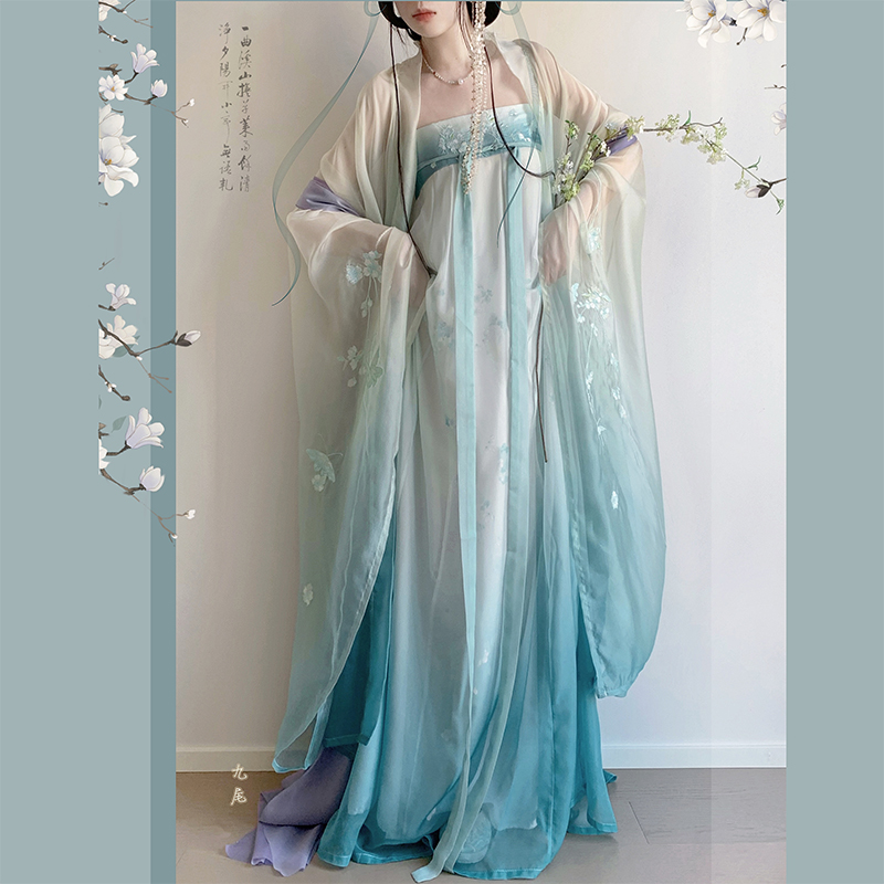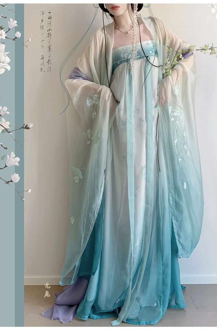 Оригинальное ханфу [как в картине] в стиле Тан: юбка до груди с разрезом, с обильной вышивкой и широкими рукавами, повседневный женский стиль весна/лето.