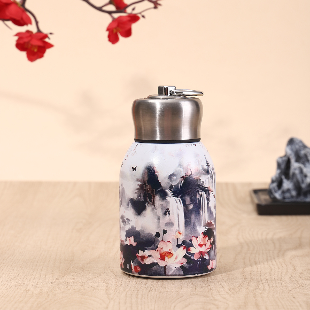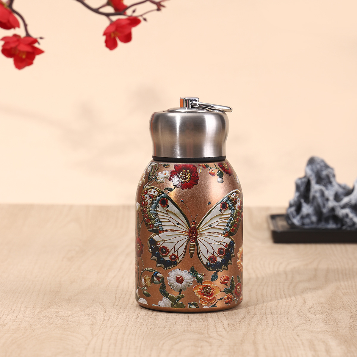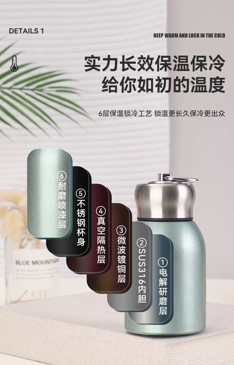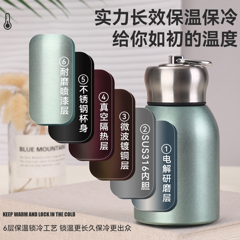 Сетка Красная 304 Нержавеющая сталь маленькая толстая чашка термода стильная мини-карманная чашка с ручкой на открытом воздухе портативный большой живот чашка