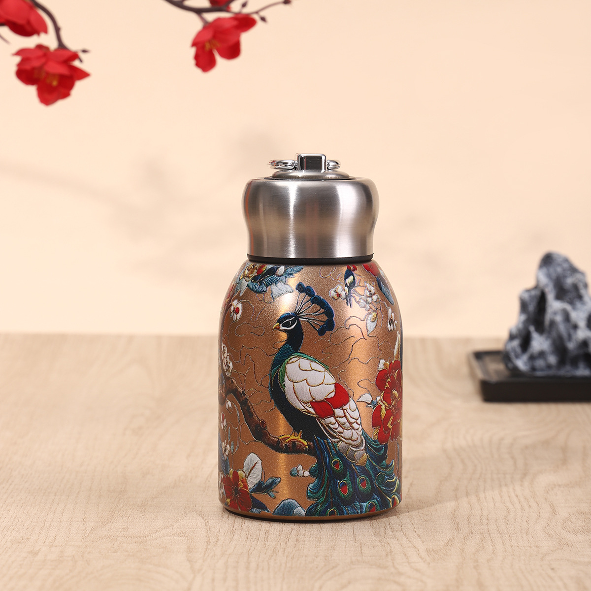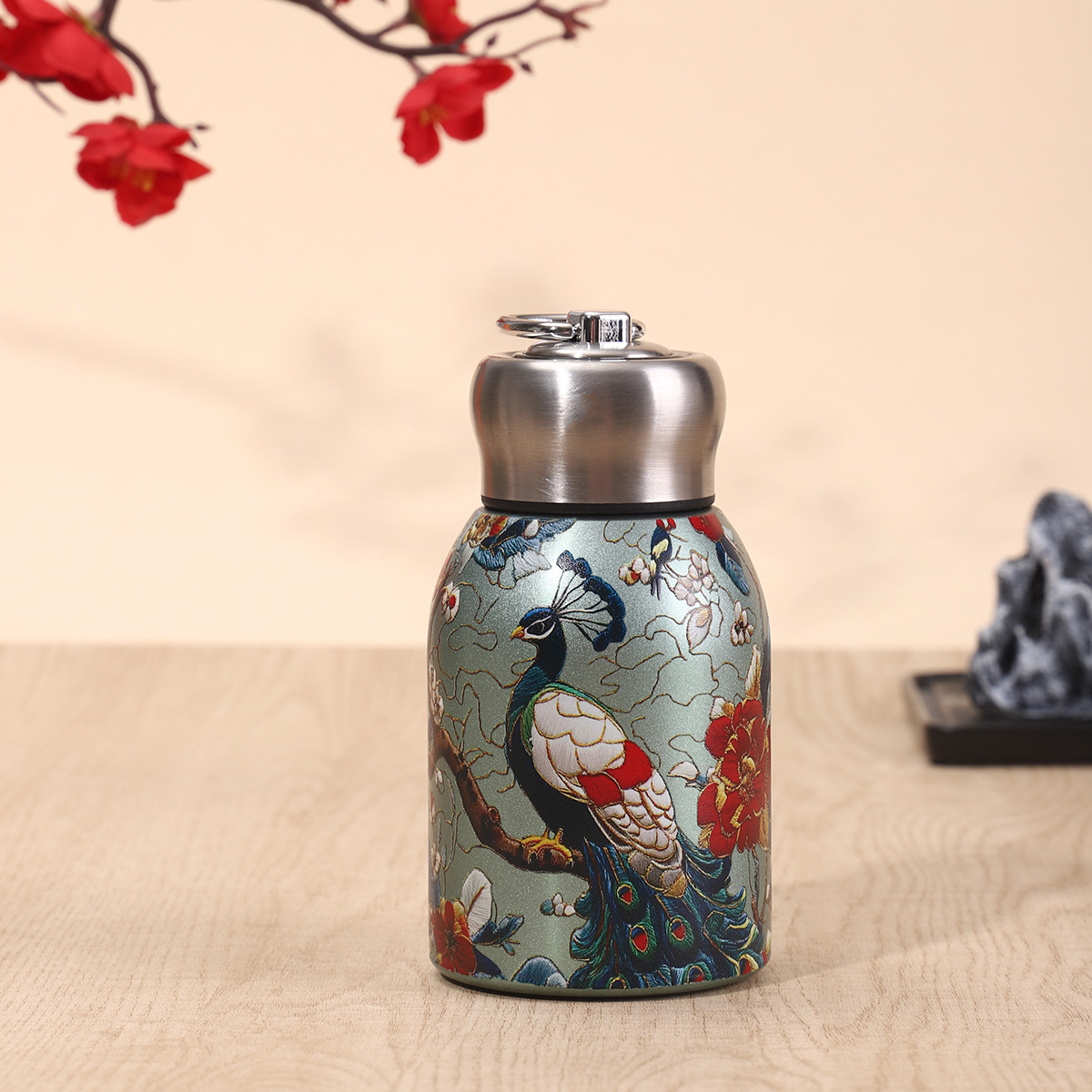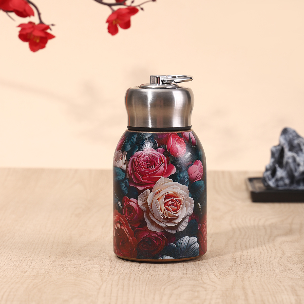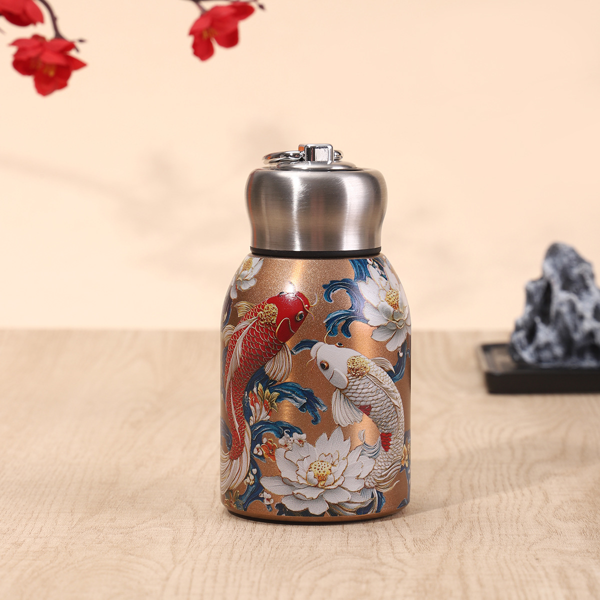 Сетка Красная 304 Нержавеющая сталь маленькая толстая чашка термода стильная мини-карманная чашка с ручкой на открытом воздухе портативный большой живот чашка