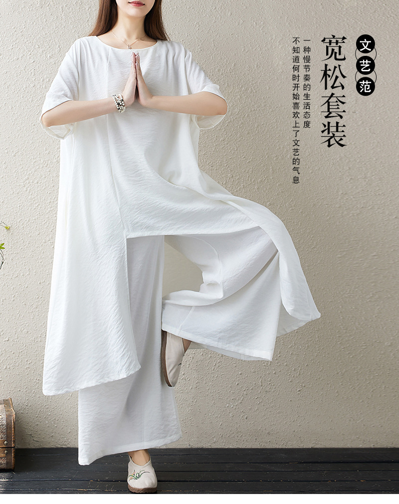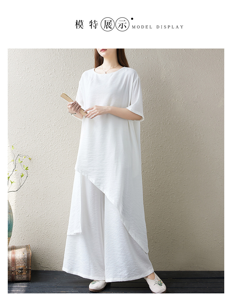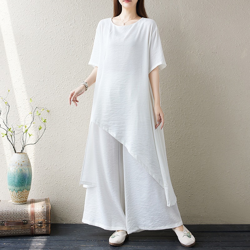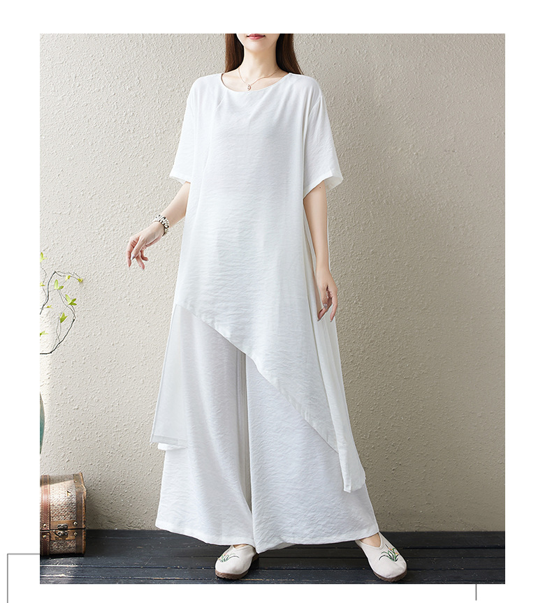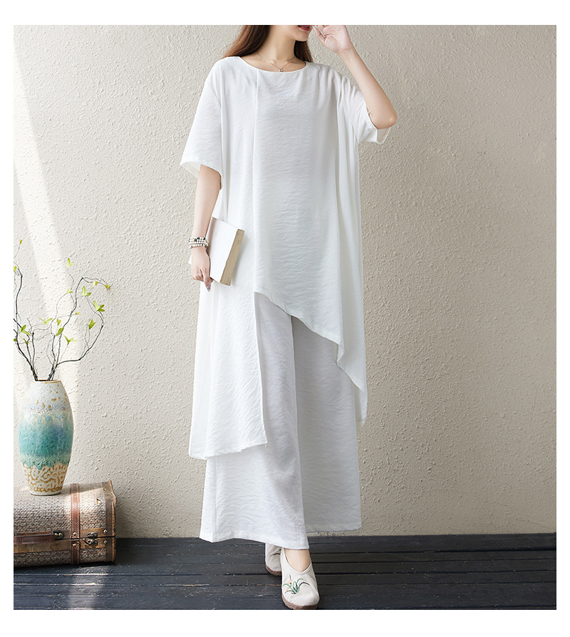 Реальная съемка большого размера индивидуальность нерегулярный набор из хлопка и льна для женщин длинная тонкая белая рубашка с широкими брюками весной и летом