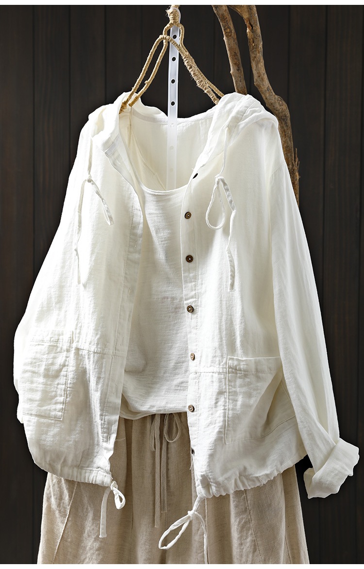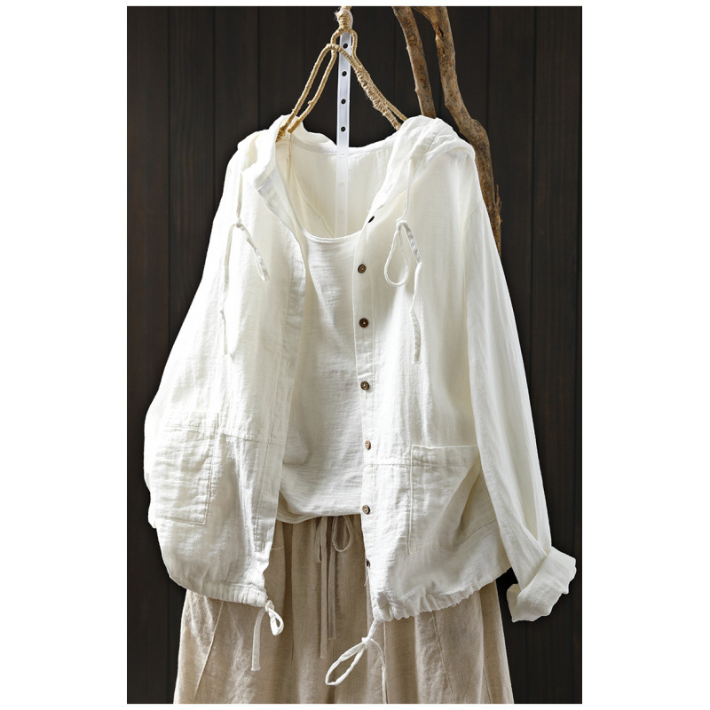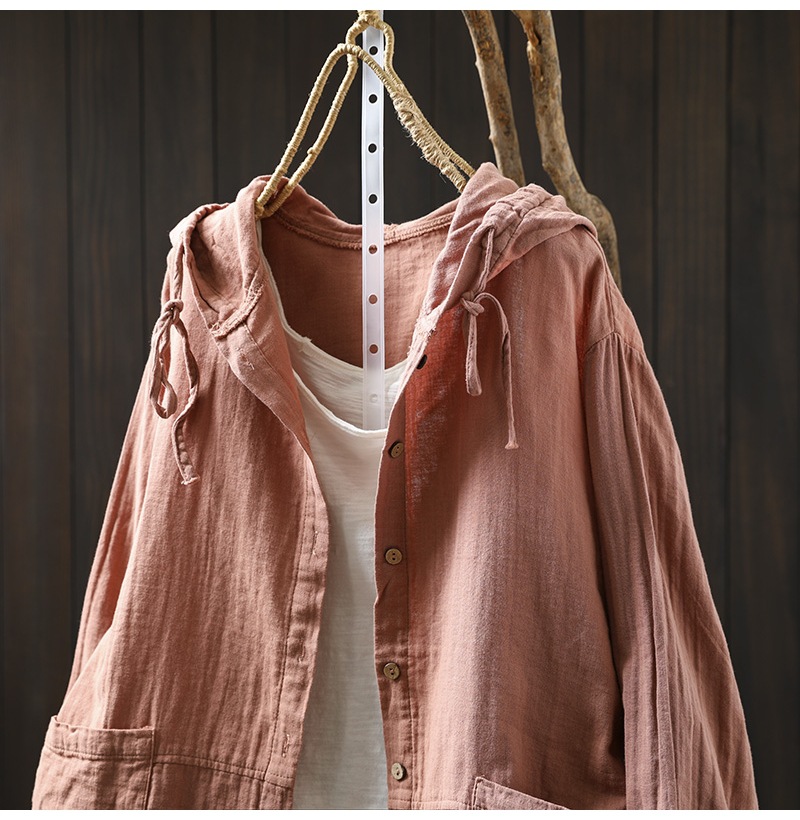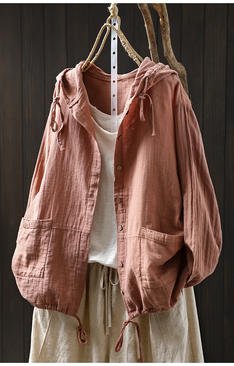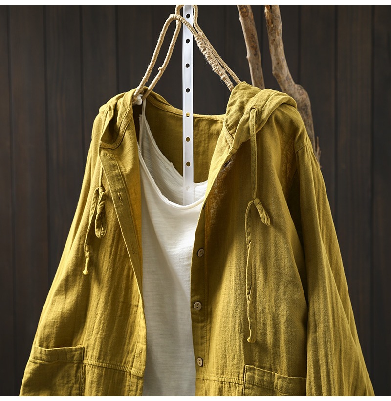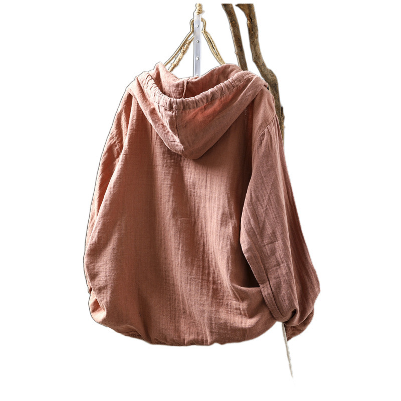 2025 лето новый свободный двойной карманный шнур с капюшоном двойные рубашки с длинными рукавами топ пальто женский