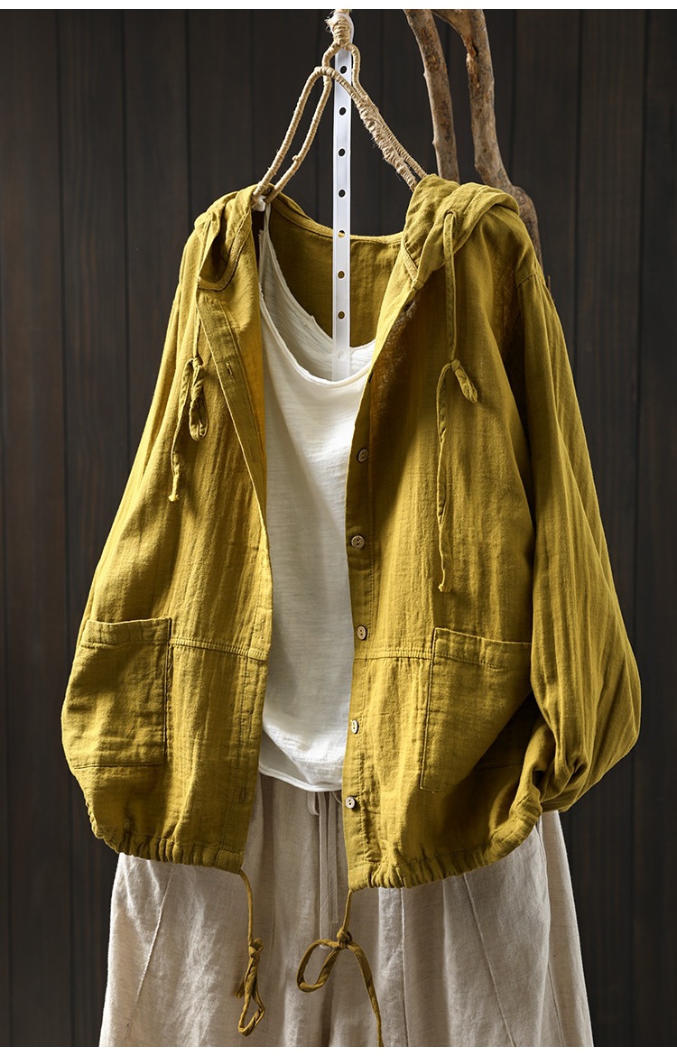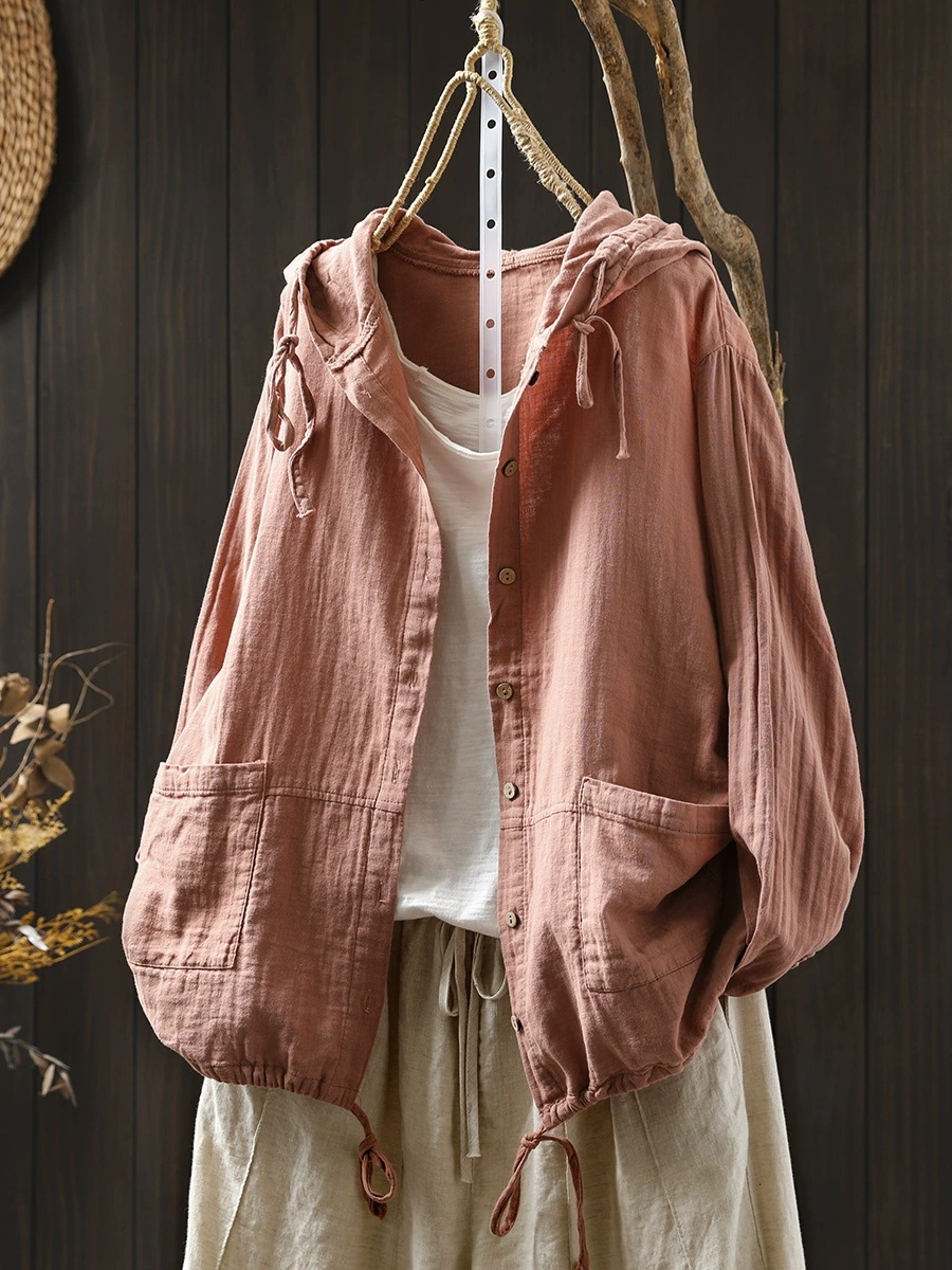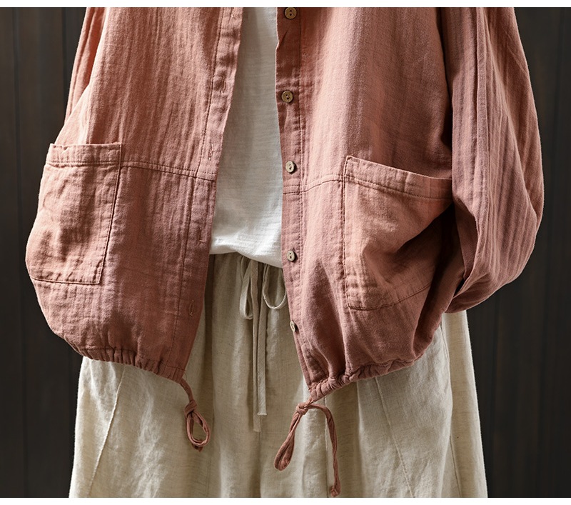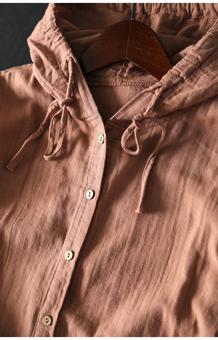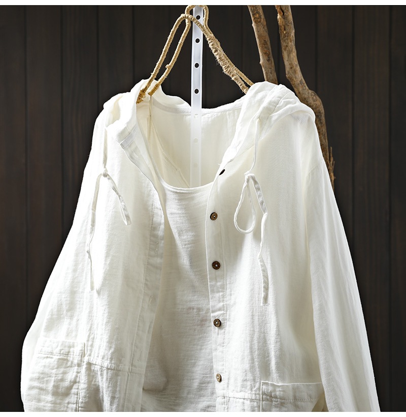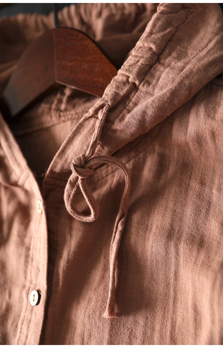 2025 лето новый свободный двойной карманный шнур с капюшоном двойные рубашки с длинными рукавами топ пальто женский