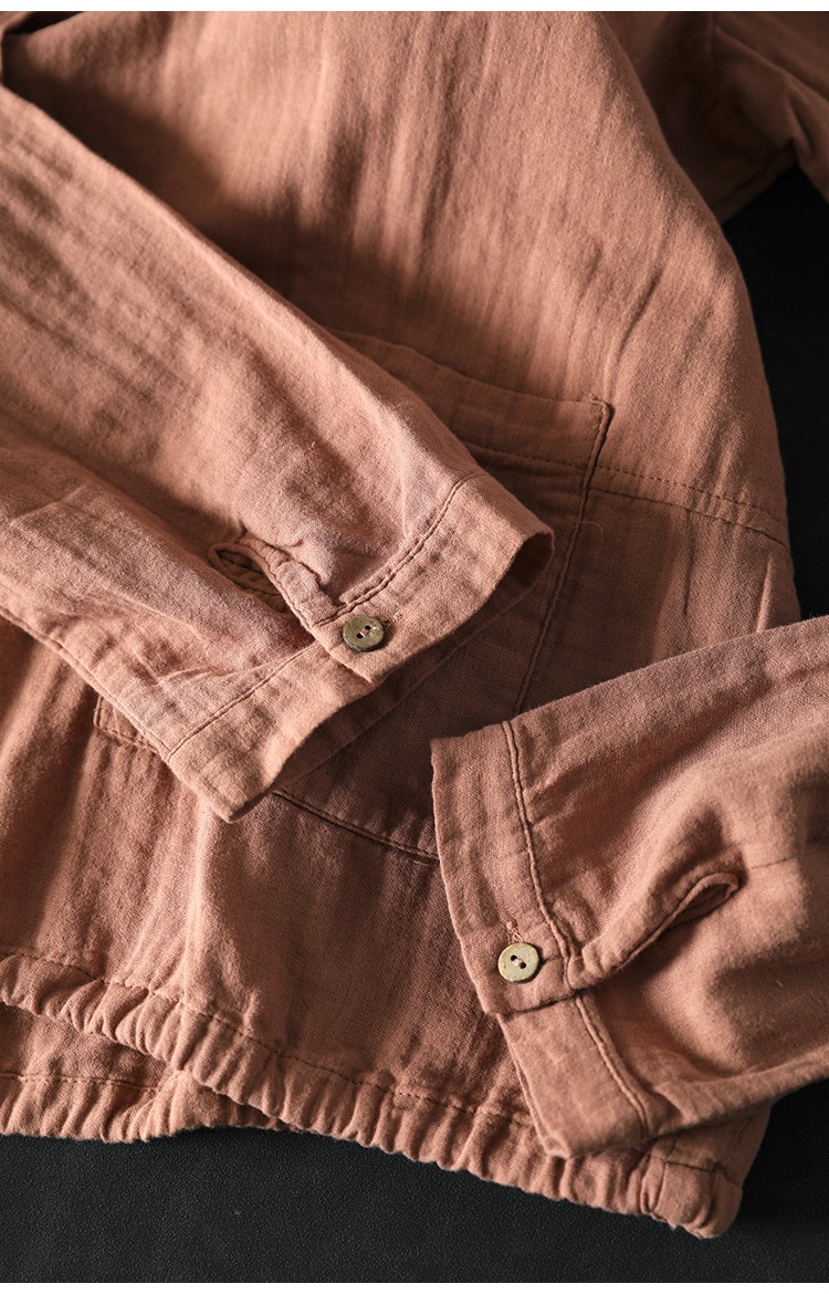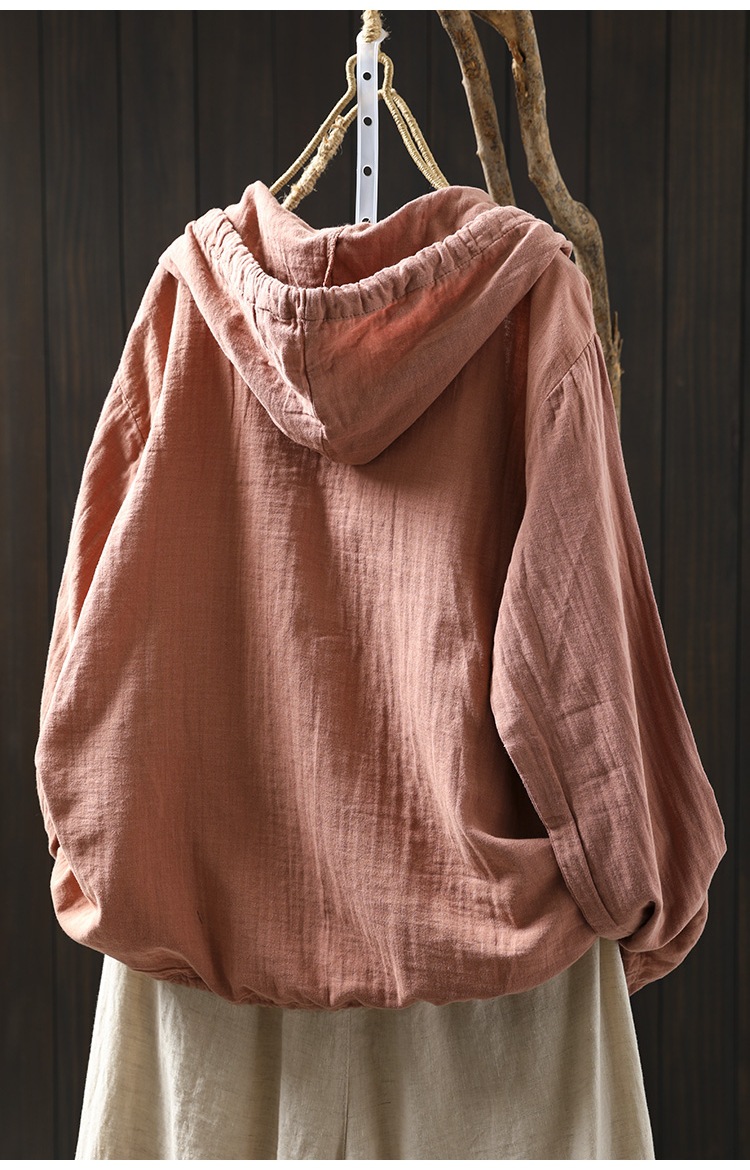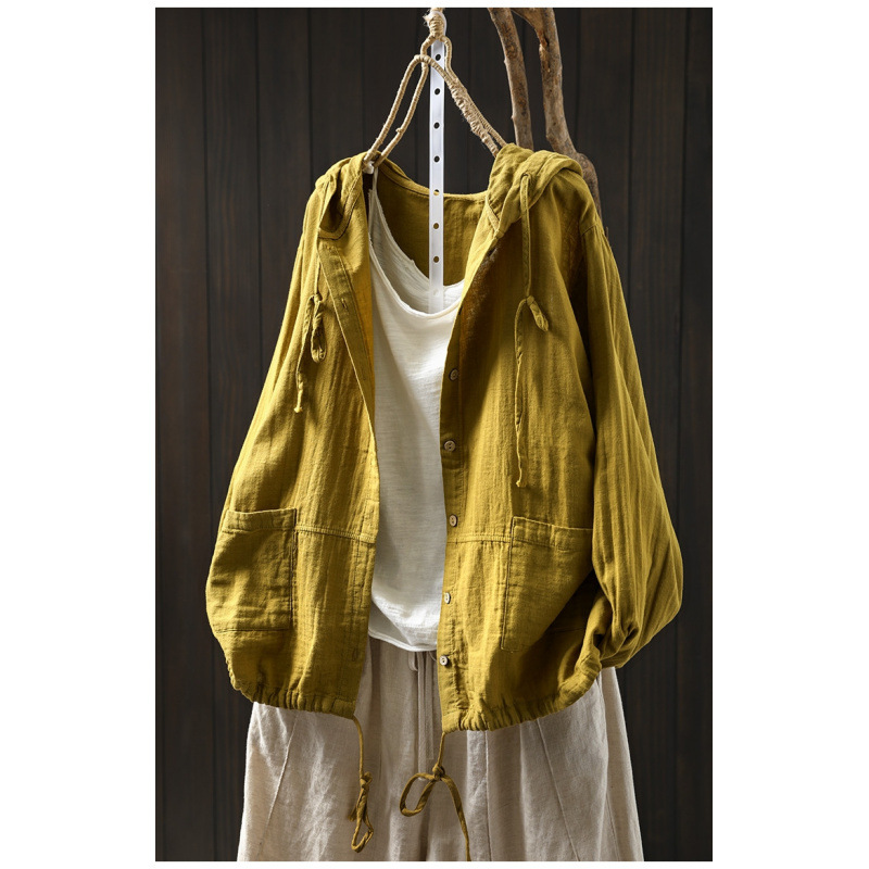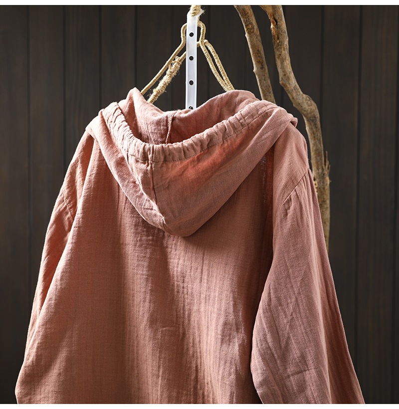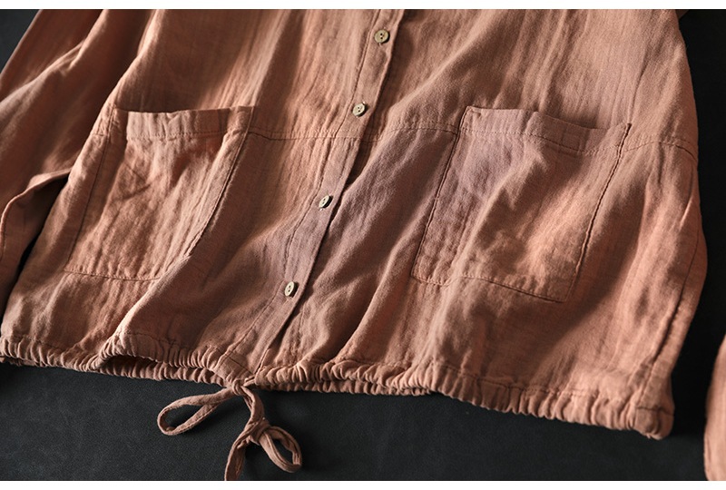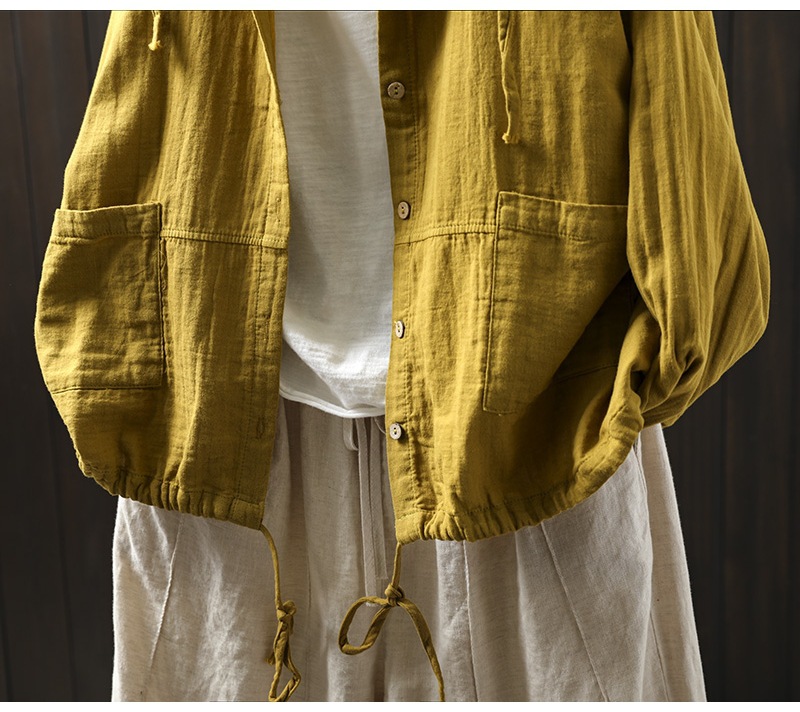 2025 лето новый свободный двойной карманный шнур с капюшоном двойные рубашки с длинными рукавами топ пальто женский