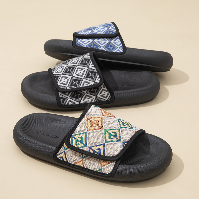 Летние новые мужские толстые тапочки пляжные туфли в клетку модные носить повседневные нескользкие холодные тапочки прилив мужчин