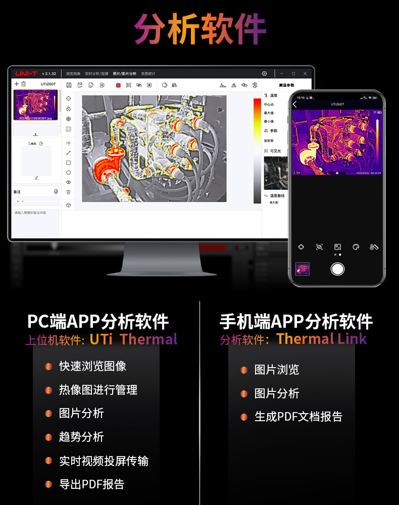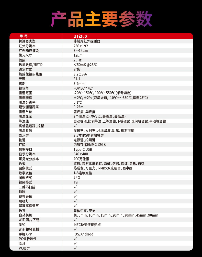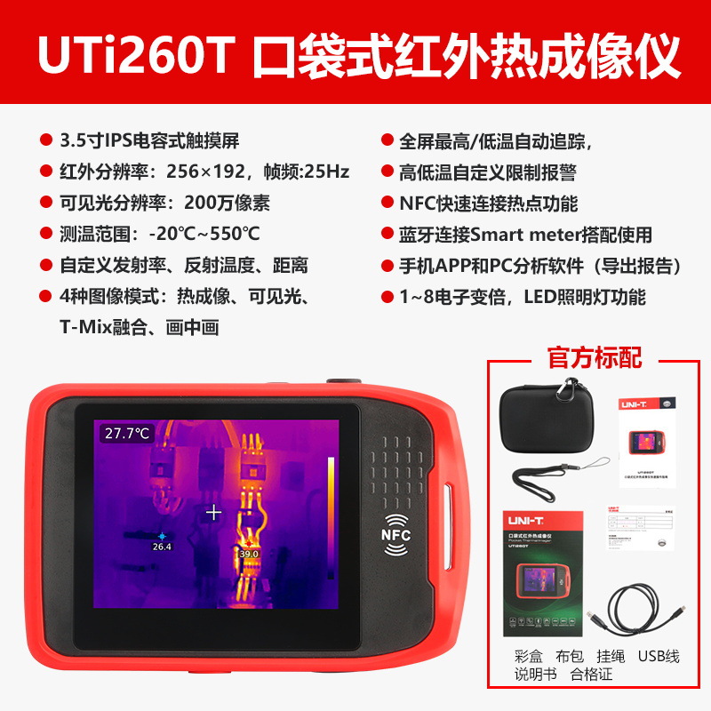 UTi260T (инфракрасное разрешение 256 × 192) диапазон измерения температуры: -20 ℃ ~550 ℃
