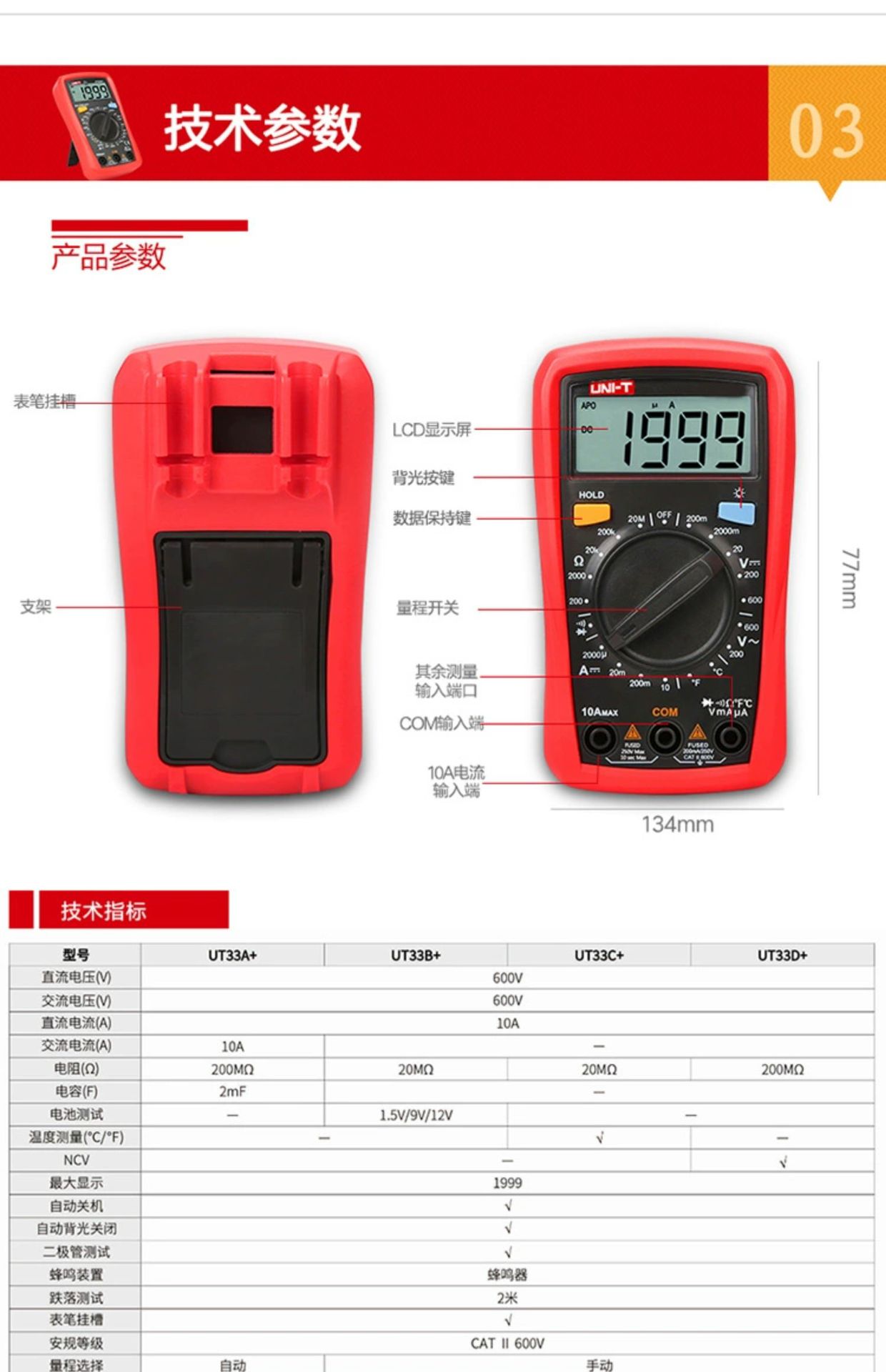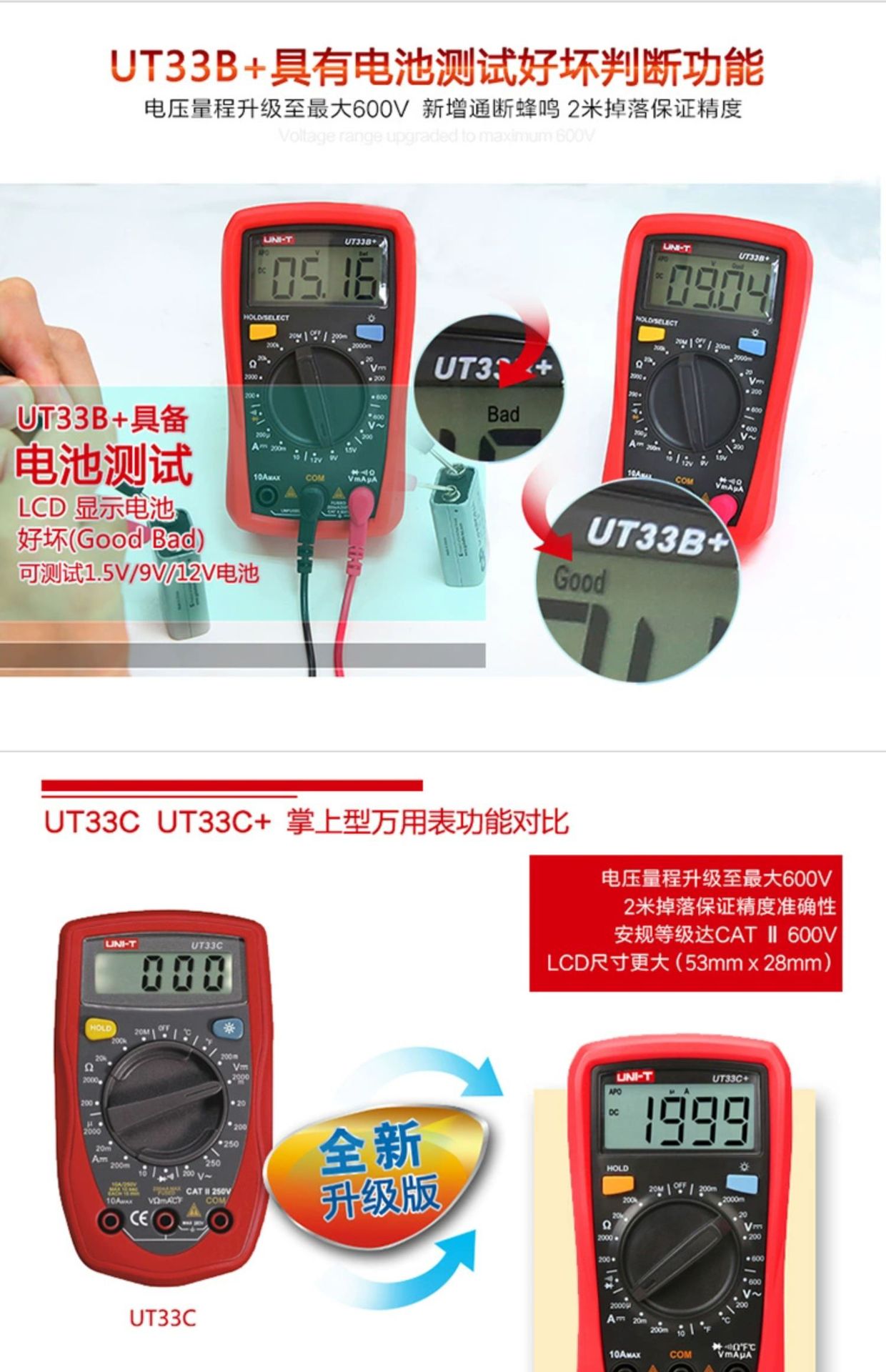 Ulide UT33D/A/B/C карманный маленький цифровой мультиметр мультиметр автоматическая подсветка антигорелая