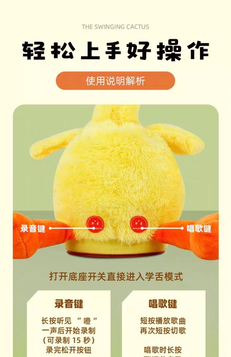 Маленькая желтая утка танцует и поет запись кактуса плюшевый успокаивающий детский подарок