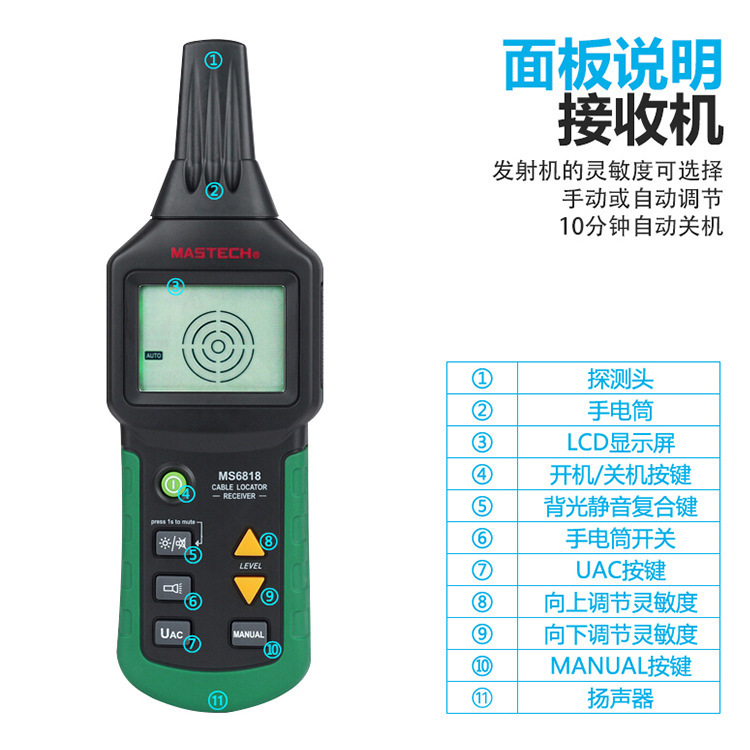 MASTECH Дунгуань Huayi кабель детектор MS6818 заглубленный кабель тестер провода в стене