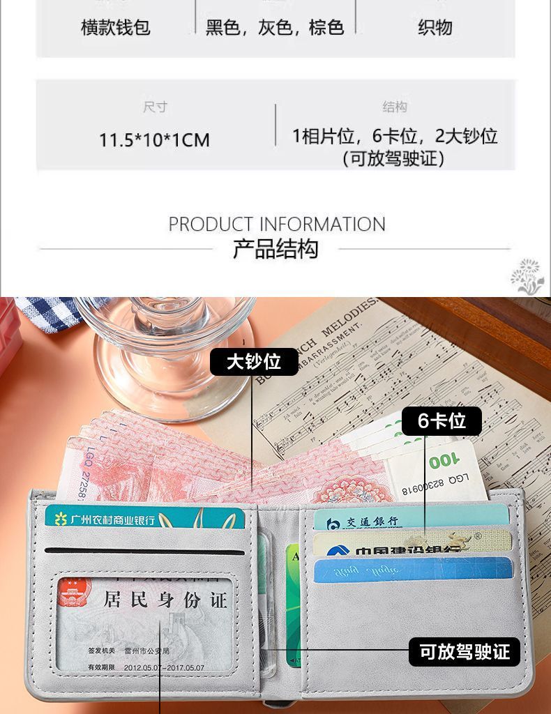 Короткий коричневого цвета с 7 отделениями для водительских прав.; Короткие черные 7 слотов для карт могут хранить водительские права.; Короткие серо-белые 7 слотов для карт позволяют хранить водительские права.