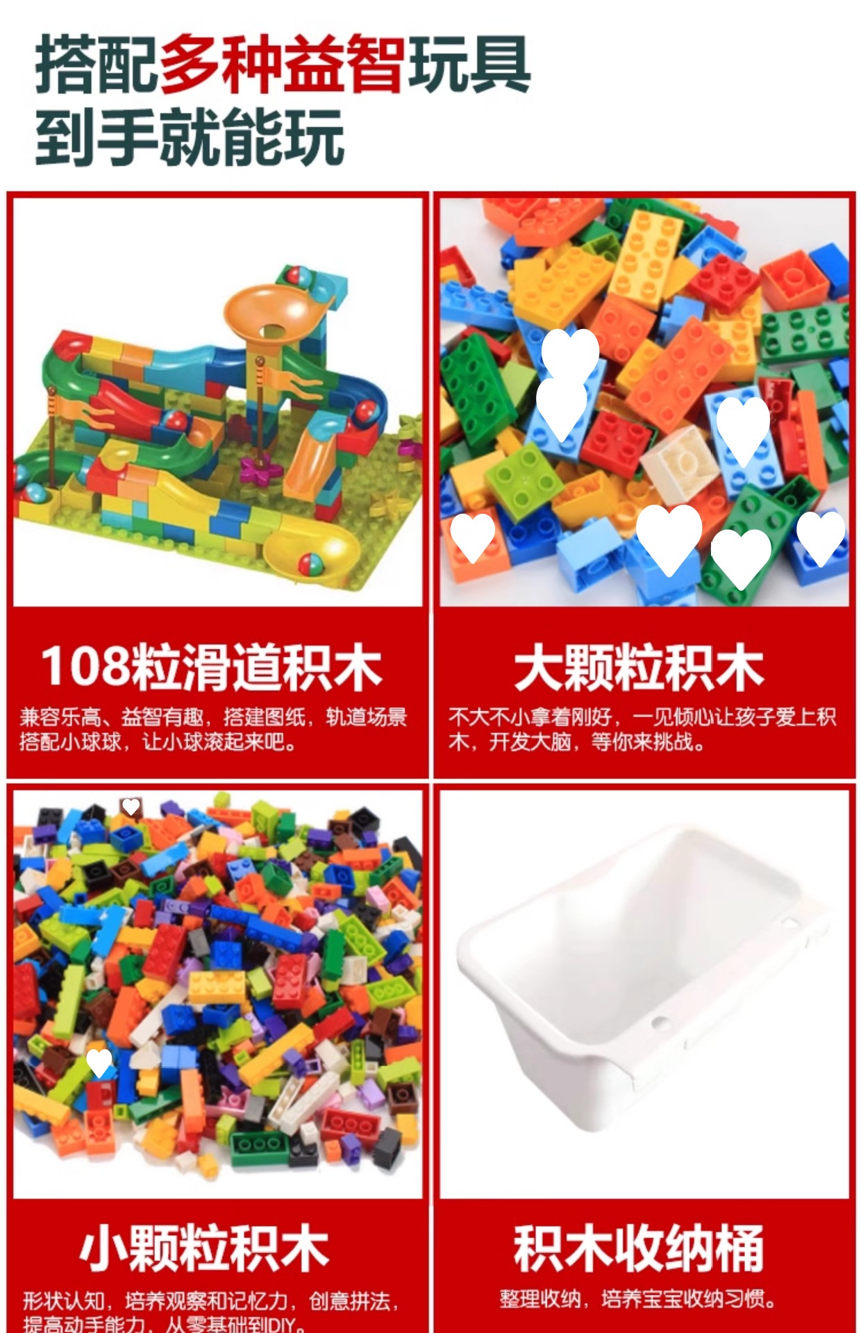 56*56*55 одиночный стол; 82*56*55 одиночный стол; 107*56*55 одиночный стол; 120*56*55 одиночный стол; 82*56*55 стол+крышка; 107*56*55 стол+крышка; 120*56*55 стол+крышка; Стол для крупных деталей диаметром 56 см + 50 крупных строительных блоков + 108 слайдов + 4 подвесных ведра — без крышки; Стол для крупных частиц шириной 82 см + 50 крупных строительных блоков + 108 предметных стекол + 4 подвесных ведра — без крышки; Стол для крупных и мелких частиц шириной 82 см + 108 больших предметных стекол + 350 маленьких строительных блоков + 4 подвесных ведра — без крышки; Стол для крупных частиц шириной 107 см + 50 крупных строительных блоков + 108 предметных стекол + 4 подвесных ведра — без крышки; Стол для крупных частиц 107 см + 108 предметных стекол + 350 маленьких строительных блоков + 4 подвесных ведра — без крышки; Стол для крупных частиц шириной 120 см + 50 крупных строительных блоков + 108 предметных стекол + 4 подвесных ведра — без крышки; Стол для крупных частиц 120 см + 108 предметных стекол + 350 маленьких строительных блоков + 4 подвесных ведра — без крышки; Большой стол для частиц 82 см + 108 предметных стекол + 50 больших строительных блоков + 4 подвесных ведра + крышка; Стол для крупных и мелких частиц шириной 82 см + 350 маленьких строительных блоков + 108 предметных стекол + 4 подвесных ведра + крышка; Столик для мелких частиц 82 см + 700 маленьких строительных блоков + 4 подвесных ведра + крышка; Стол для крупных частиц 107 см + 108 предметных стекол + 50 больших строительных блоков + 4 подвесных ведра + крышка; Стол для крупных частиц 107 см + 350 маленьких строительных блоков + 108 предметных стекол + 4 подвесных ведра + крышка; Маленький столик для частиц 107 см + 700 маленьких строительных блоков + 4 подвесных ведра + крышка; Стол для крупных частиц 120 см + 108 предметных стекол + 50 больших строительных блоков + 4 подвесных ведра + крышка; Стол для крупных частиц 120 см + 350 маленьких строительных блоков + 108 предметных стекол + 4 подвесных ведра + крышка; Столик для мелких частиц 120 см + 700 маленьких строительных блоков + 4 подвесных ведра + крышка