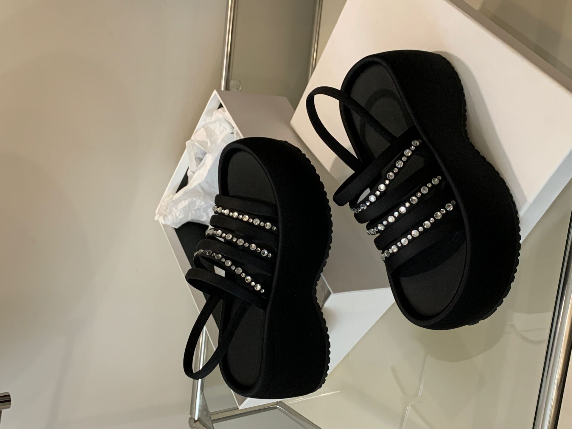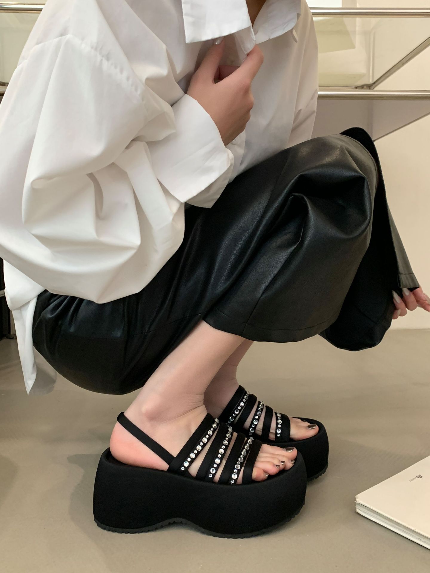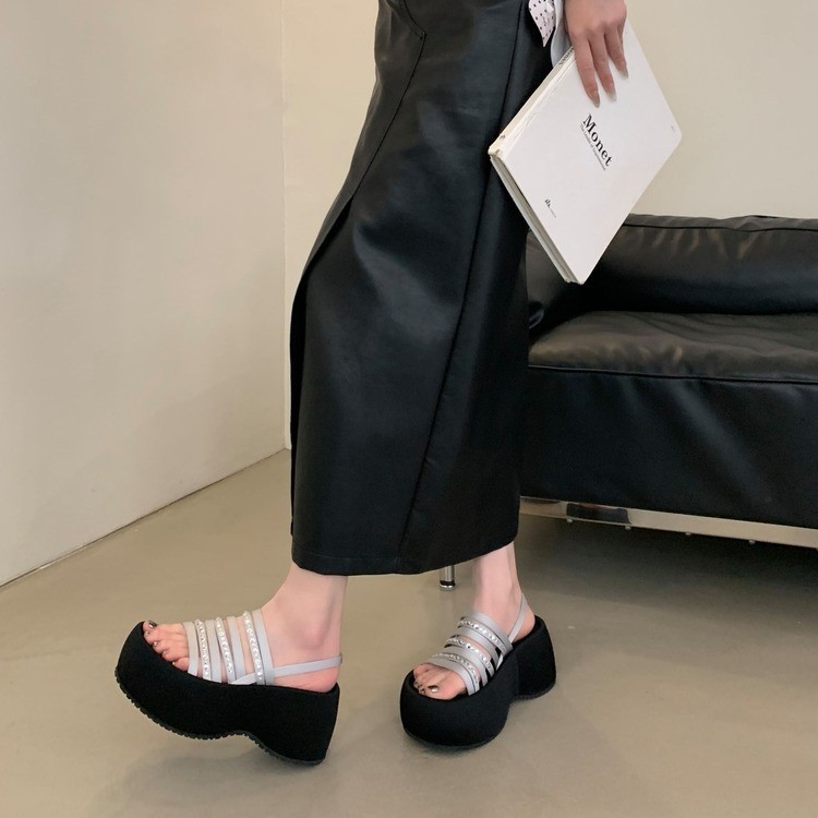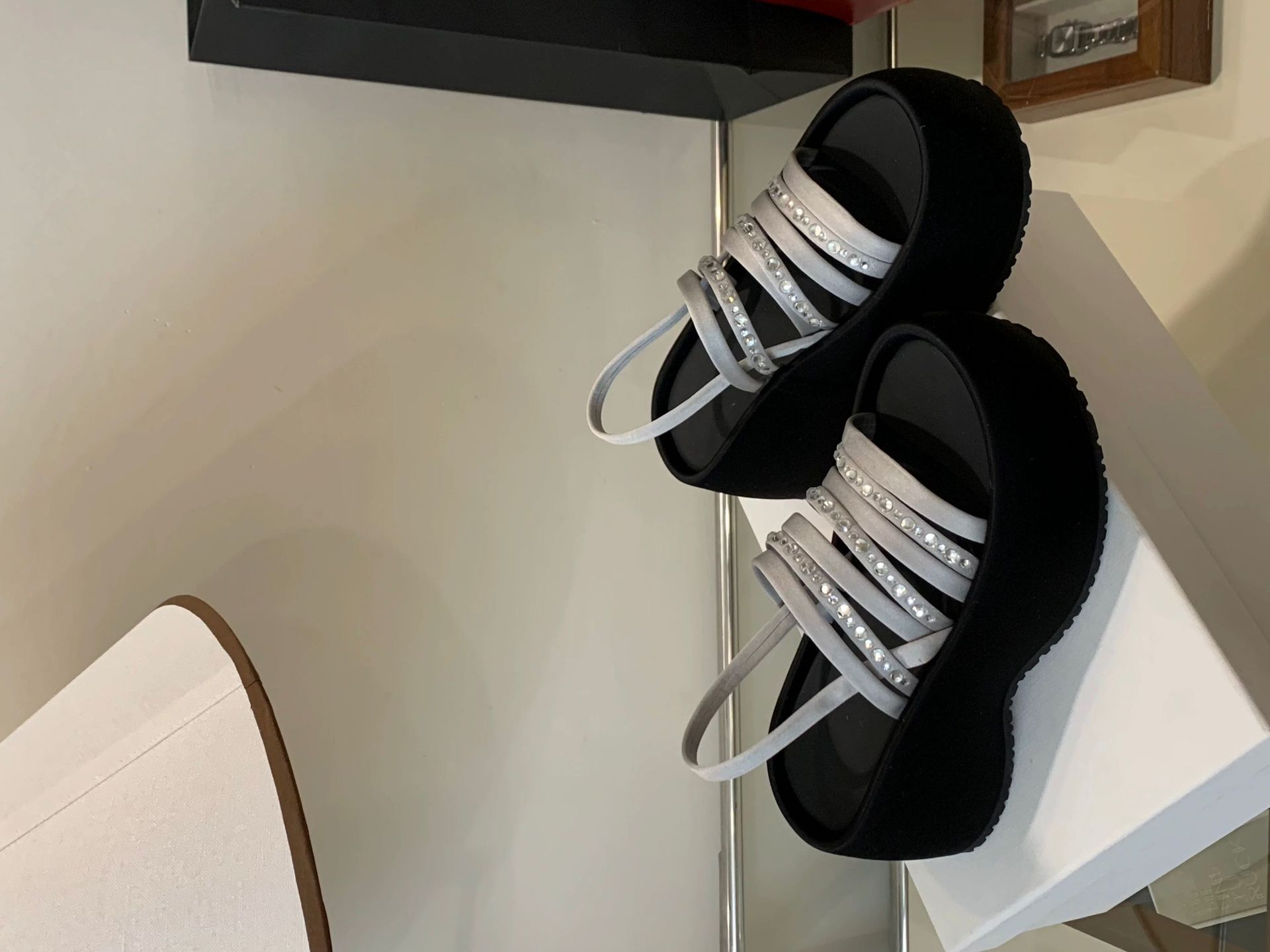 Стразы черные модные сандалии женские весна и лето 2025 новый толстый подошв Рим дикий комфорт повышен шлепанцы