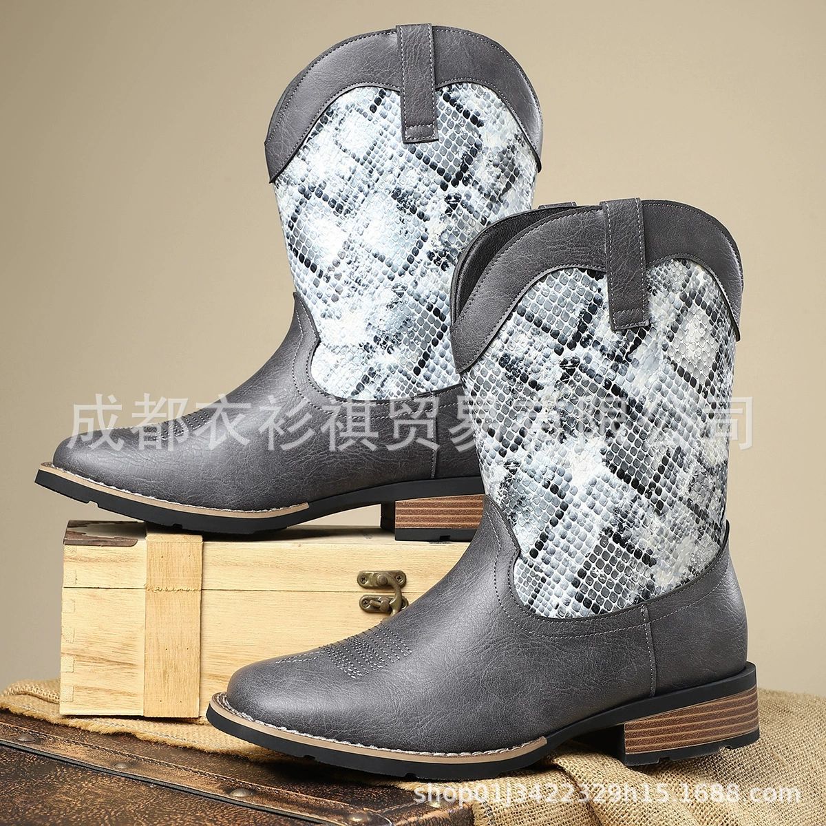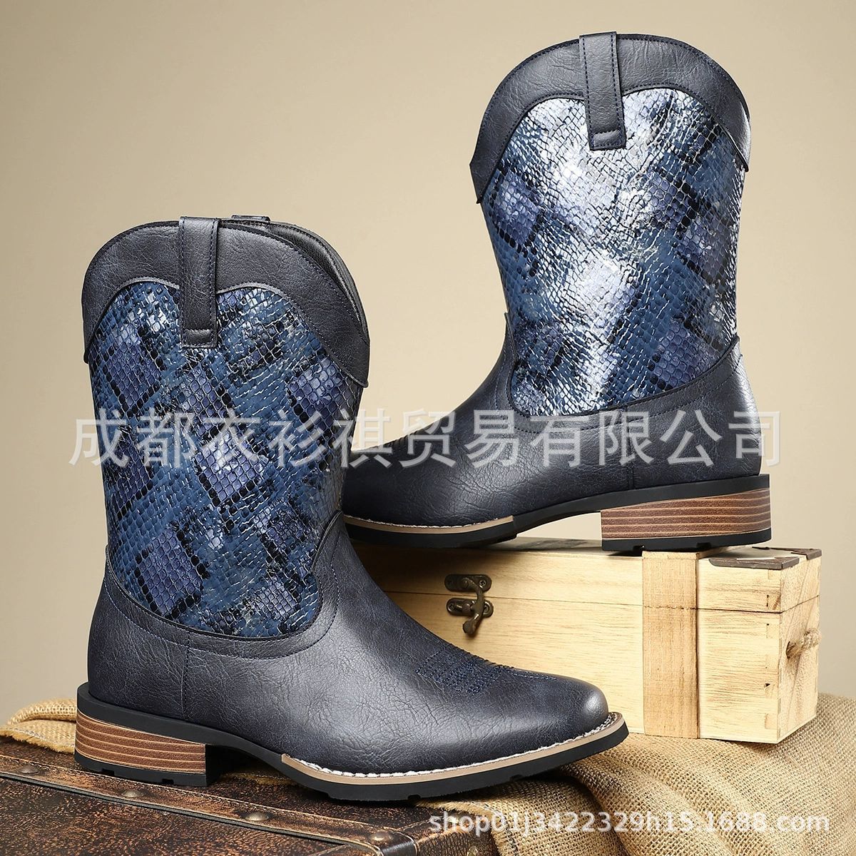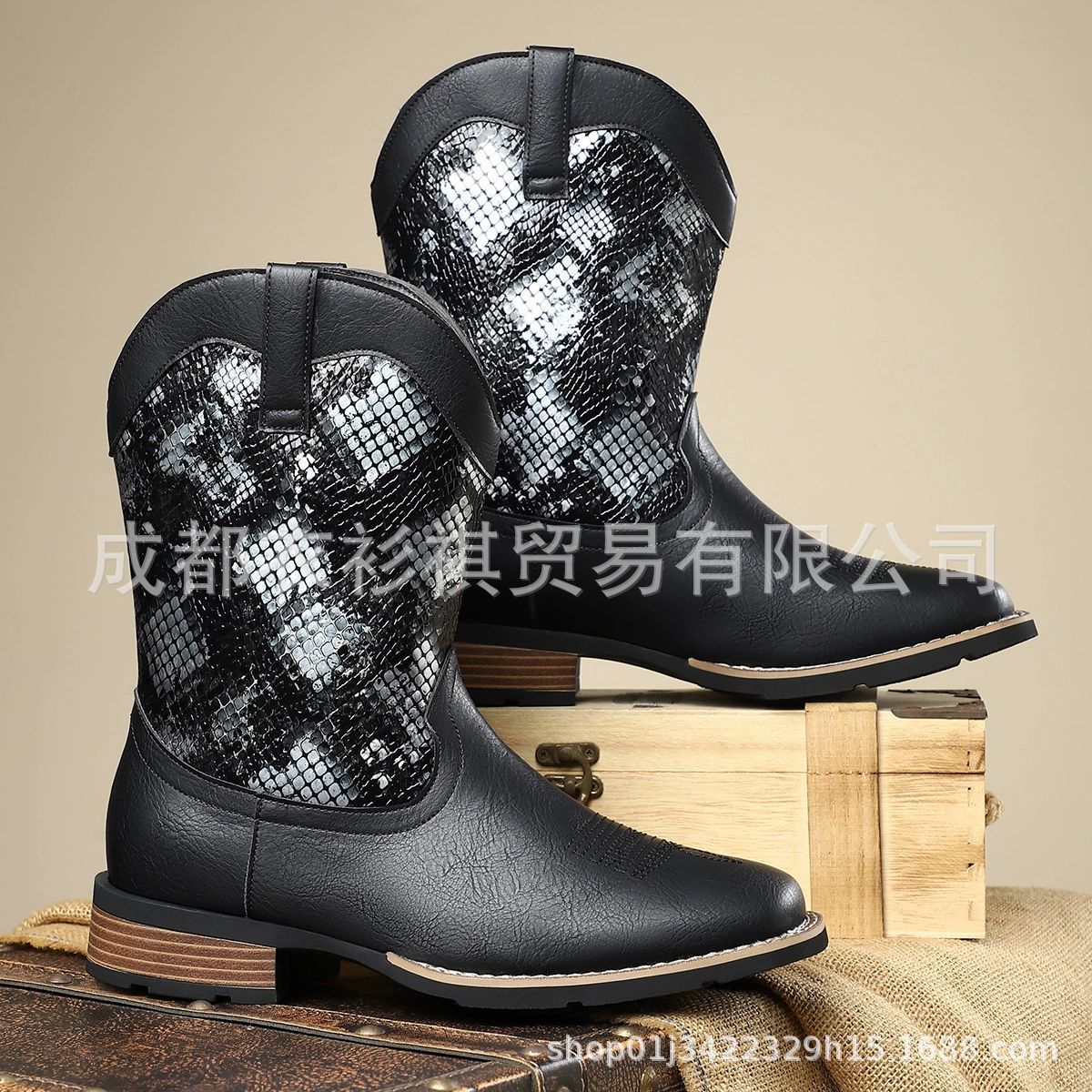 Внешняя торговля новый сплайсг с узором змеи короткие сапоги мужские сапоги рыцарей дикие ретро кожаные сапоги высокие повседневные сапоги