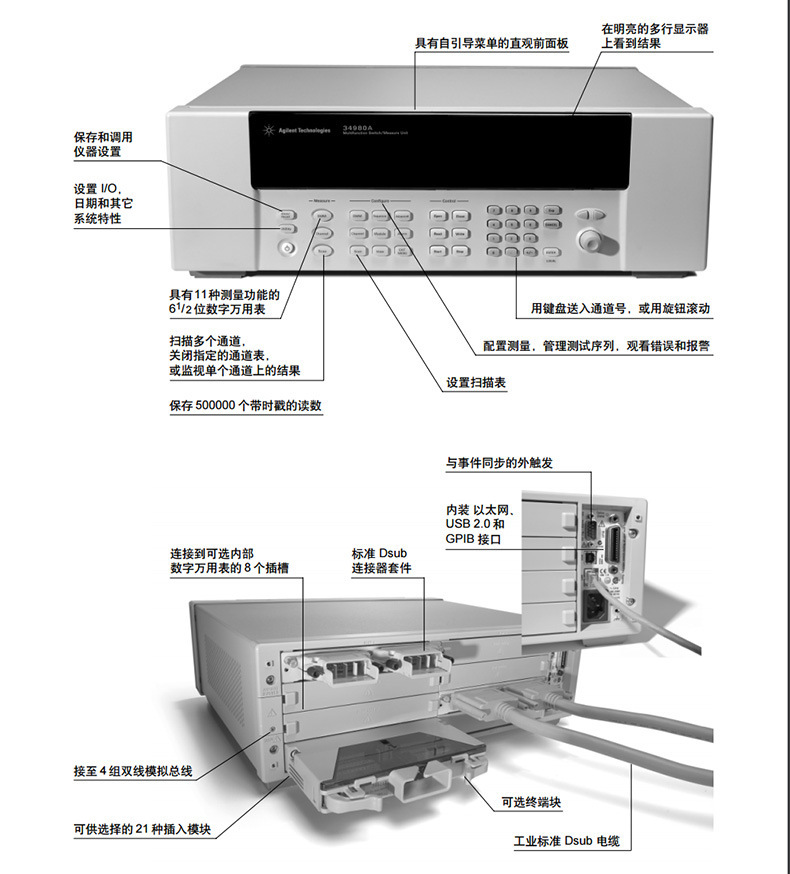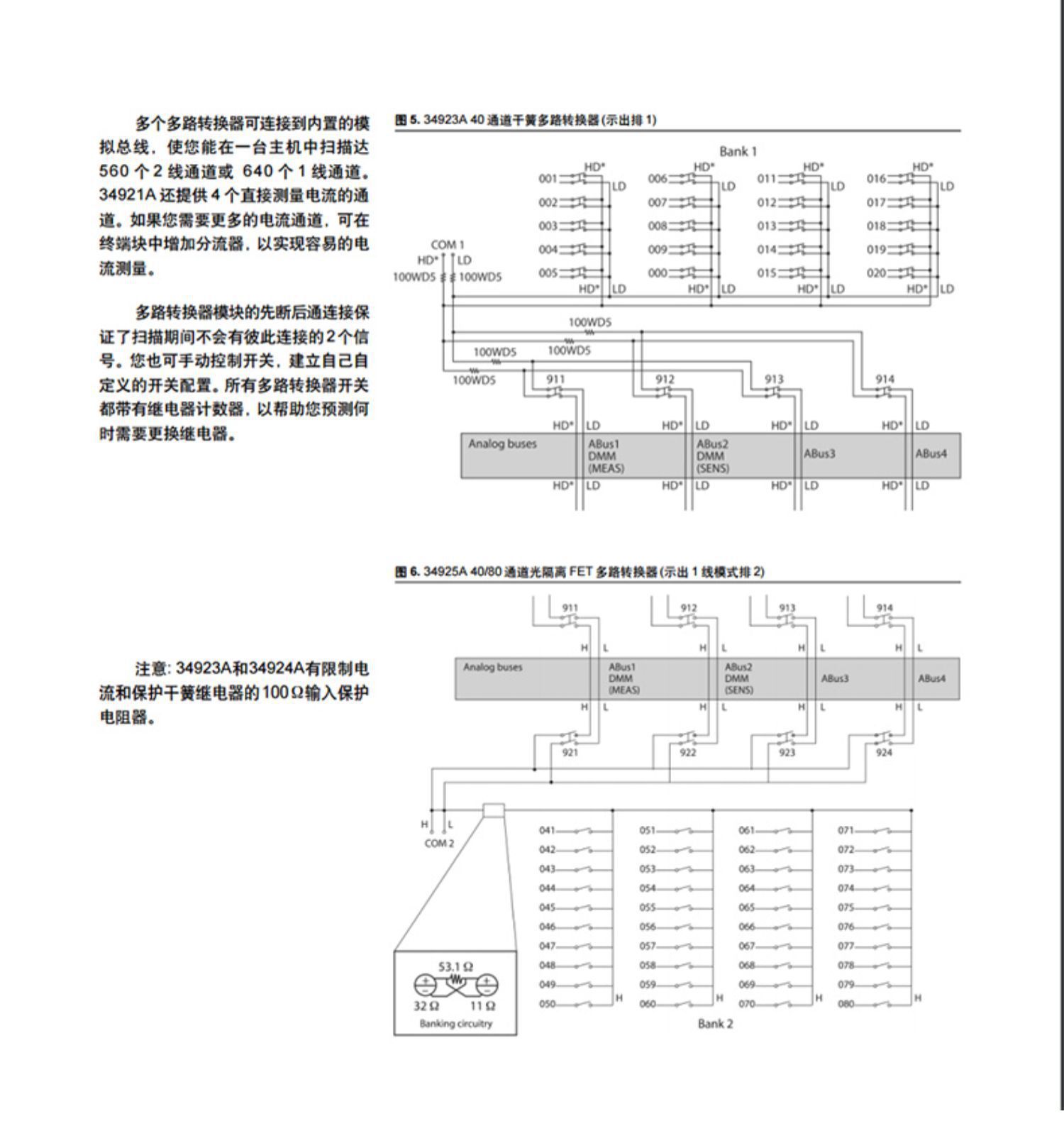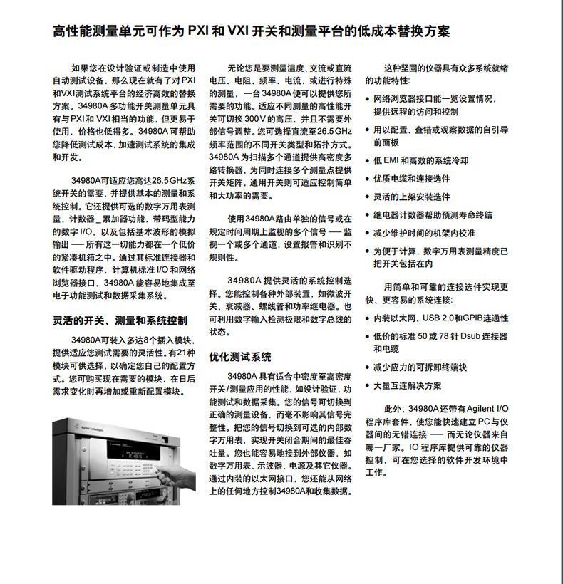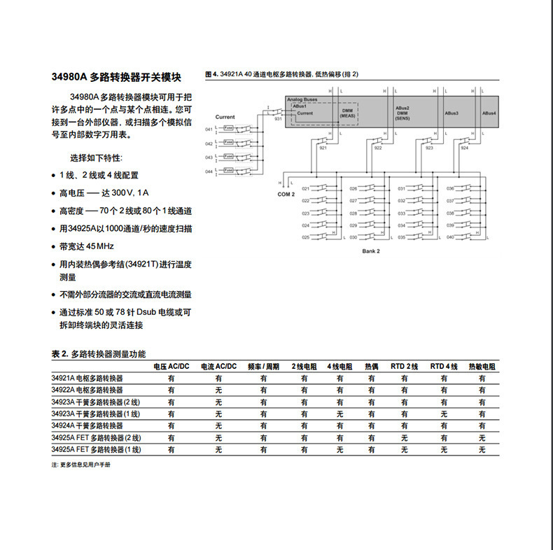34980A (хост с 8 слотами, встроенный цифровой мультиметр с 6 слотами); 34980A+34921A*1+34921T*1 (общий испытательный комплект); 34921А (40-канальный мультиплексор якоря); 34921T (терминал 34921A); 34922А-001 (70-канальный мультиплексор якоря); 34922T-002 (терминал 34922A); 34923A (40/80-канальный герконовый мультиплексор); 34923T (терминал 34923A); 34924А (70-канальный герконовый мультиплексор); 34924T (разъемная коробка 34924)