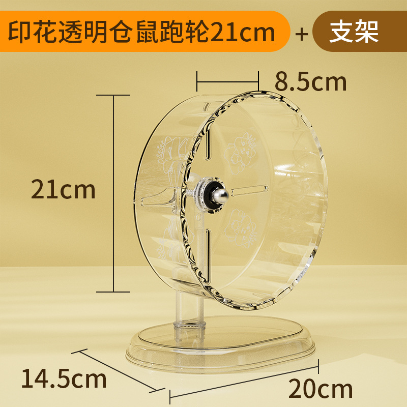 С146007Прозрачное беговое колесо для хомяка с принтом 18см + кронштейн (комбинация)