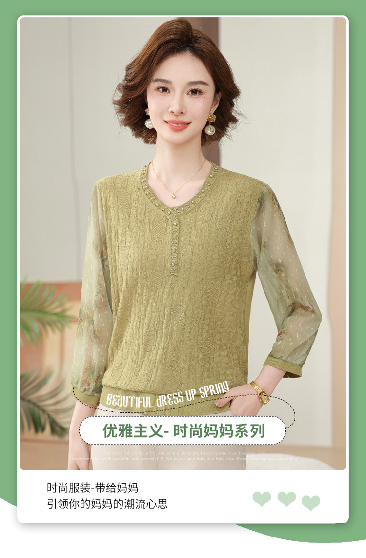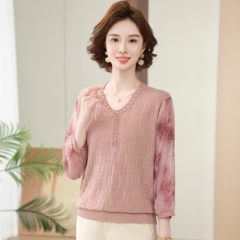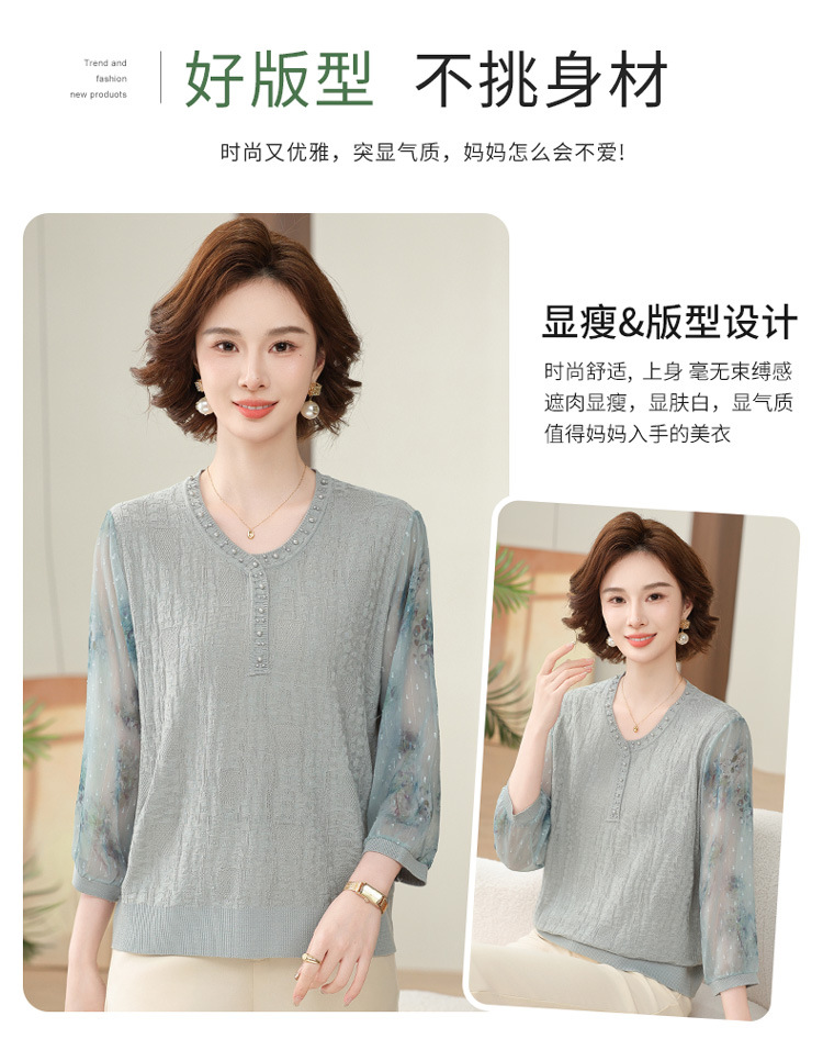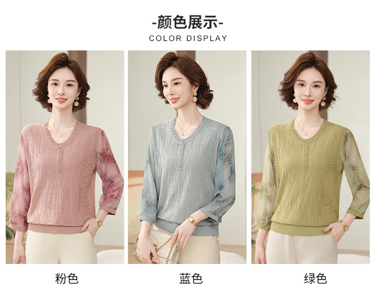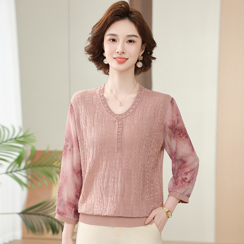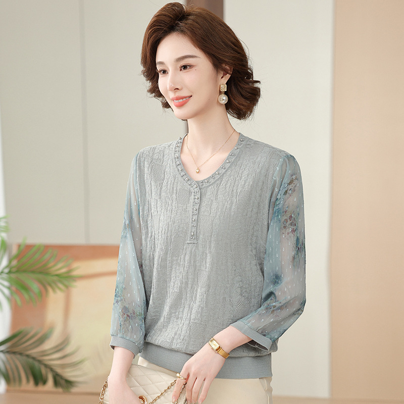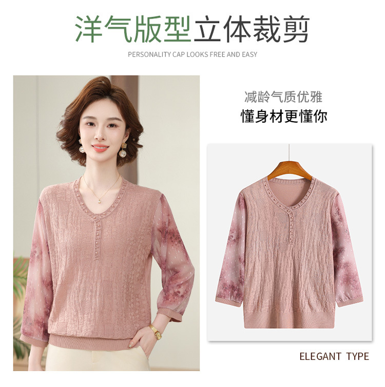 2025 новая мама весенняя одежда с рукавами из семи точек трикотажная нижняя рубашка среднего и пожилого женского тонкого марлого рукава куртка иностранная футболка