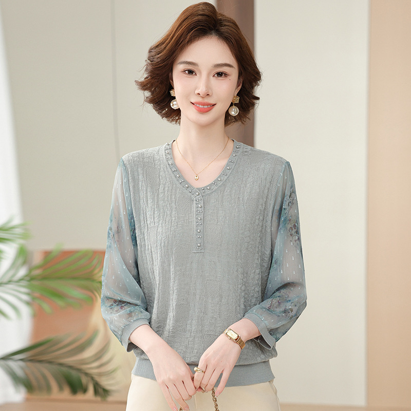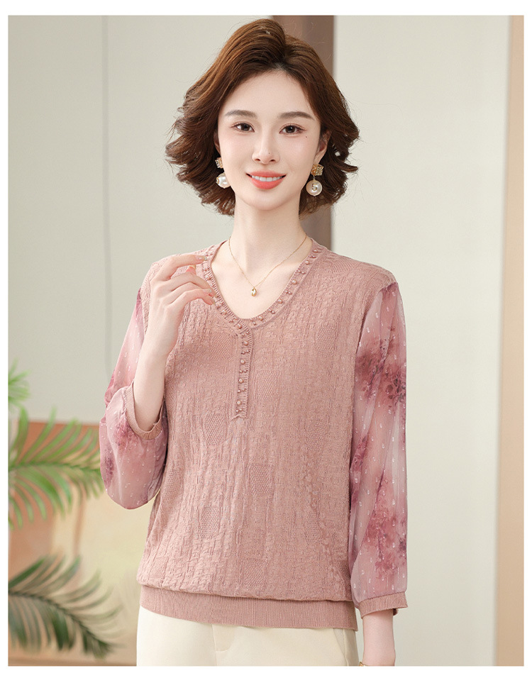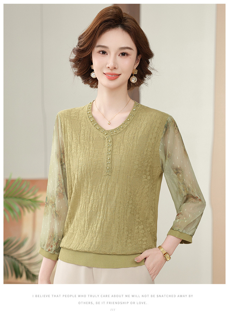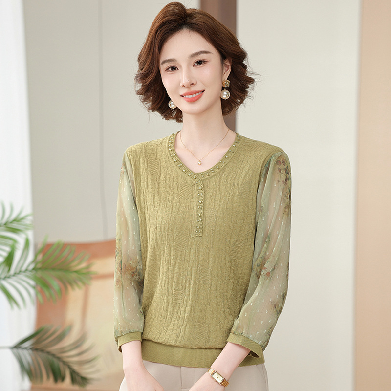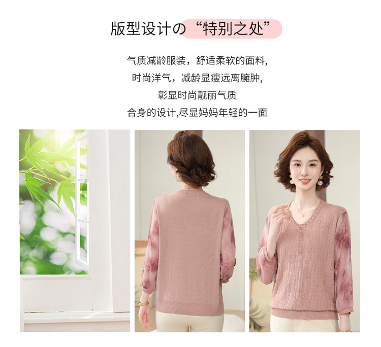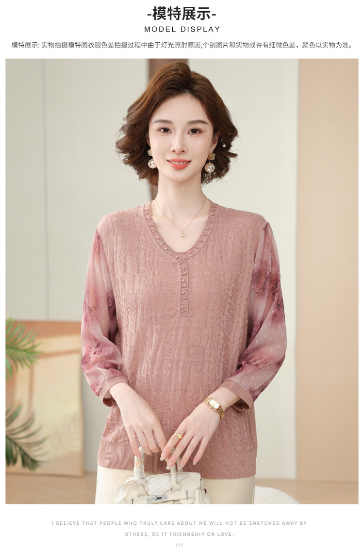 2025 новая мама весенняя одежда с рукавами из семи точек трикотажная нижняя рубашка среднего и пожилого женского тонкого марлого рукава куртка иностранная футболка