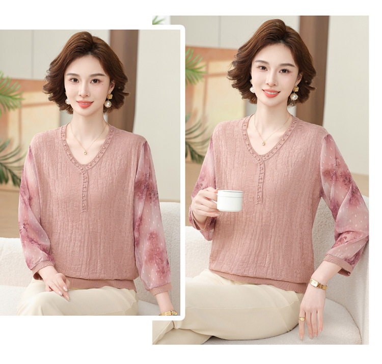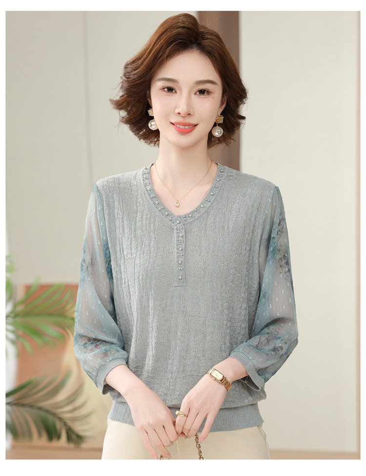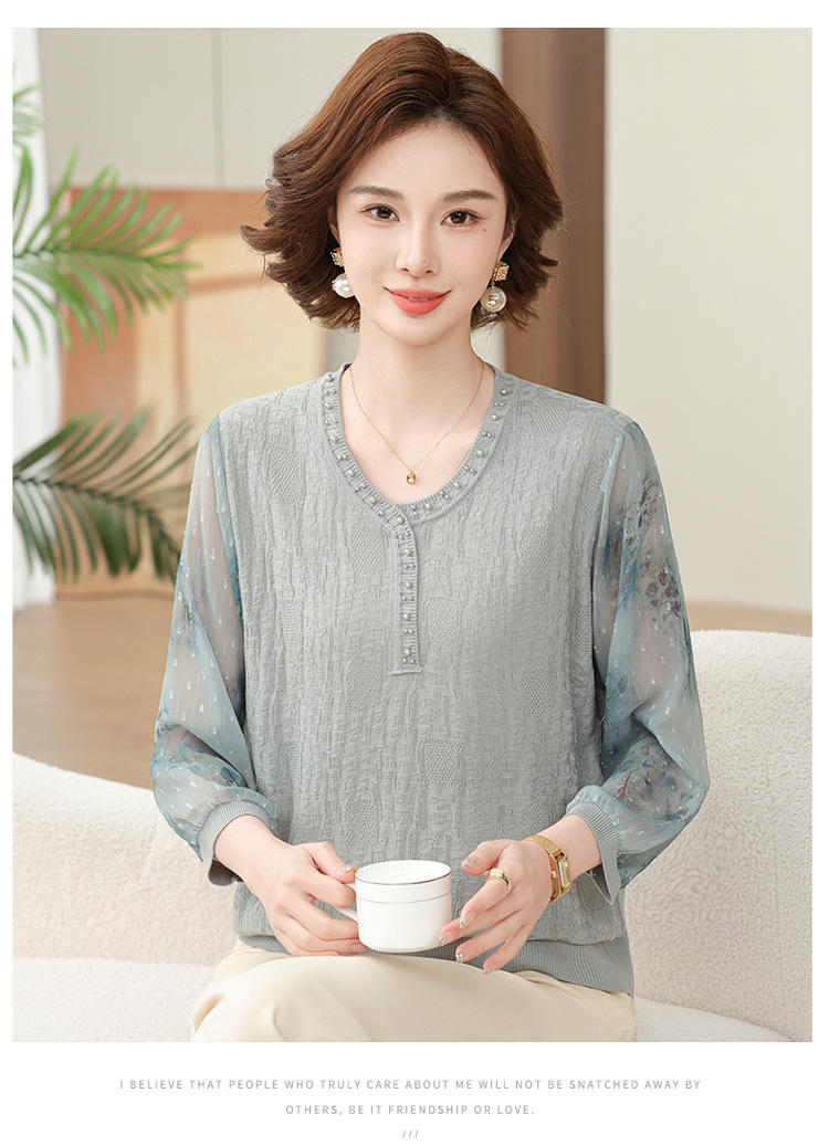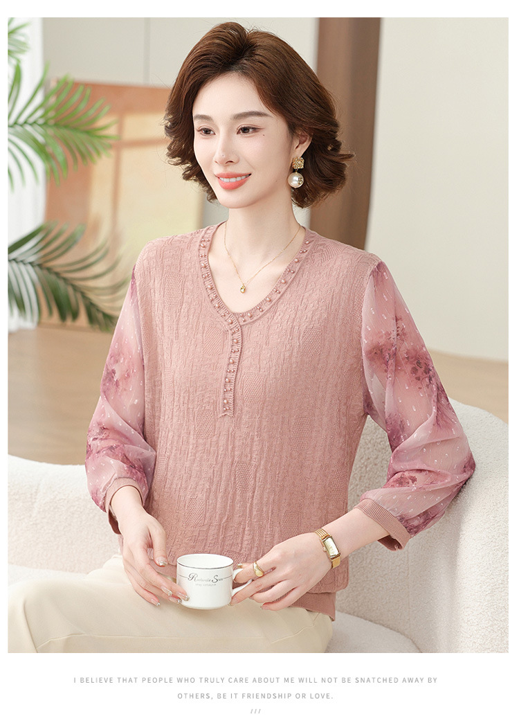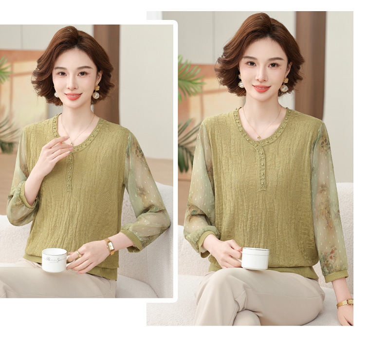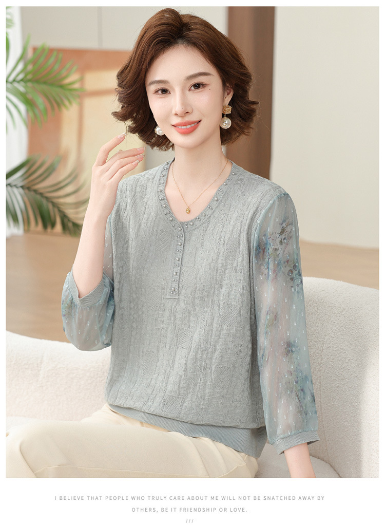 2025 новая мама весенняя одежда с рукавами из семи точек трикотажная нижняя рубашка среднего и пожилого женского тонкого марлого рукава куртка иностранная футболка