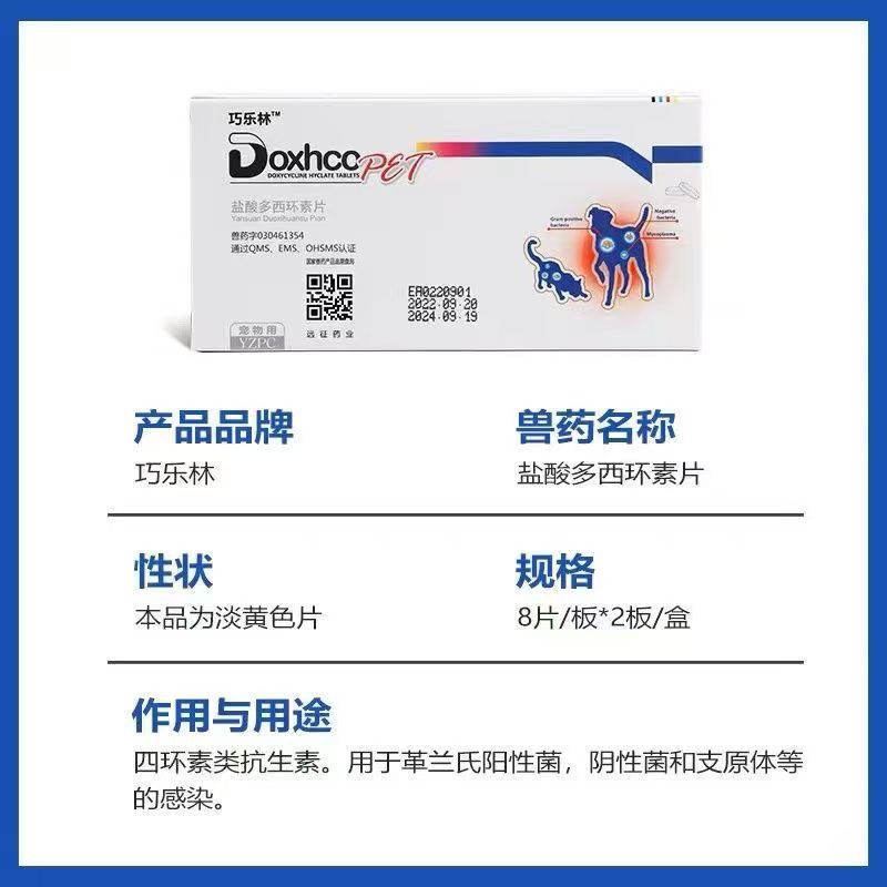 Доксициклин гидрохлорид от Yuanzheng Qiaolelin — это широкоспектральное антибактериальное средство для лечения респираторных инфекций у собак и кошек, доступное в наличии.