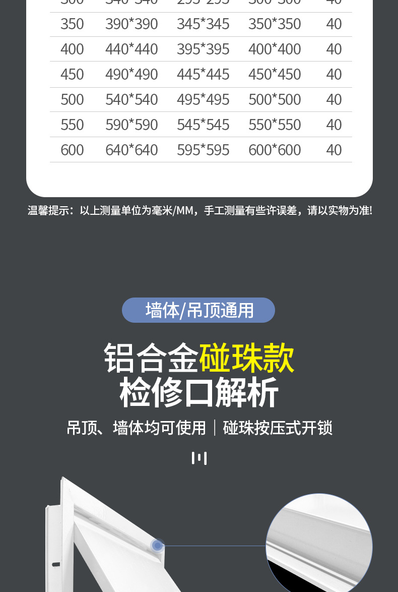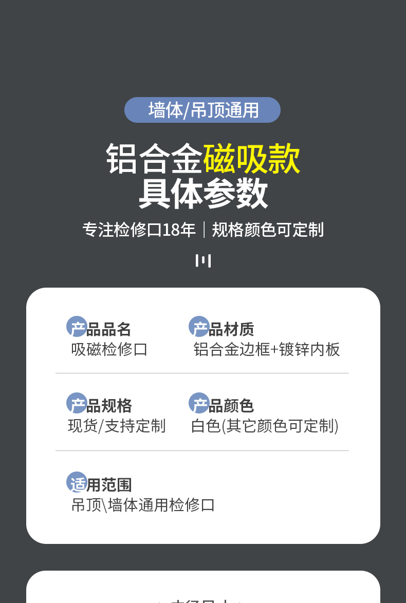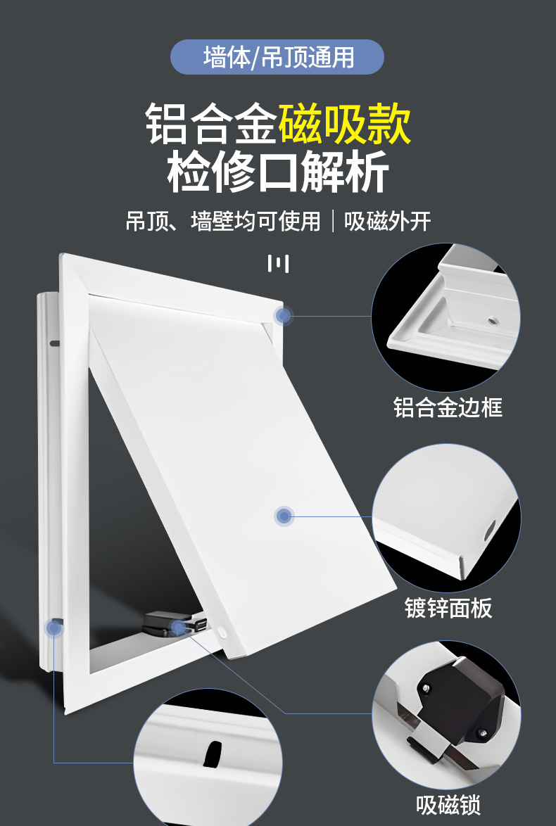 Порт для технического обслуживания, крышка из алюминиевого сплава, магнитный потолок, готовая вентиляция, четырехсторонняя скрытая дверная панель, тип отверстия для канализационной трубы