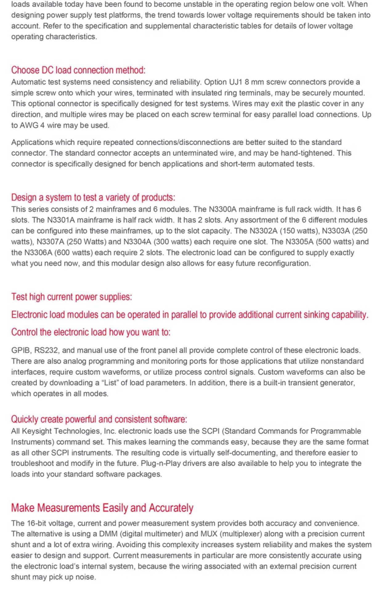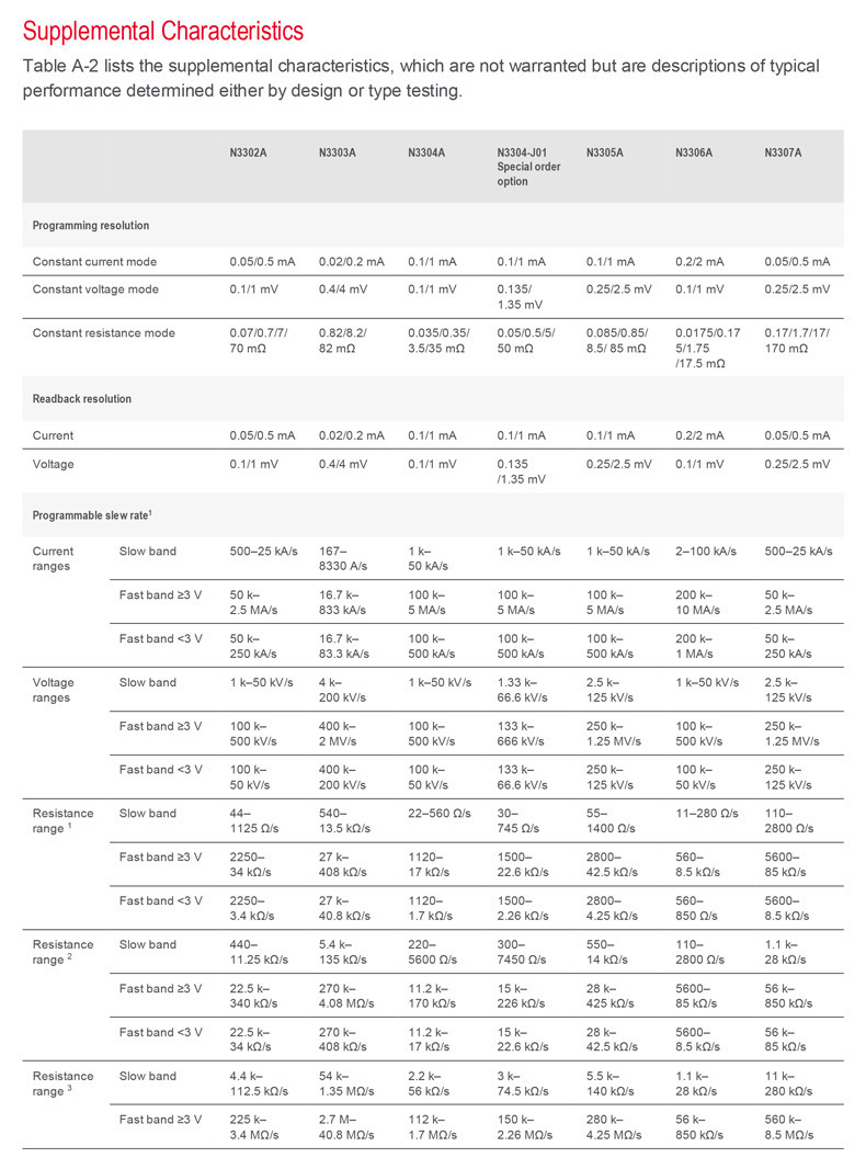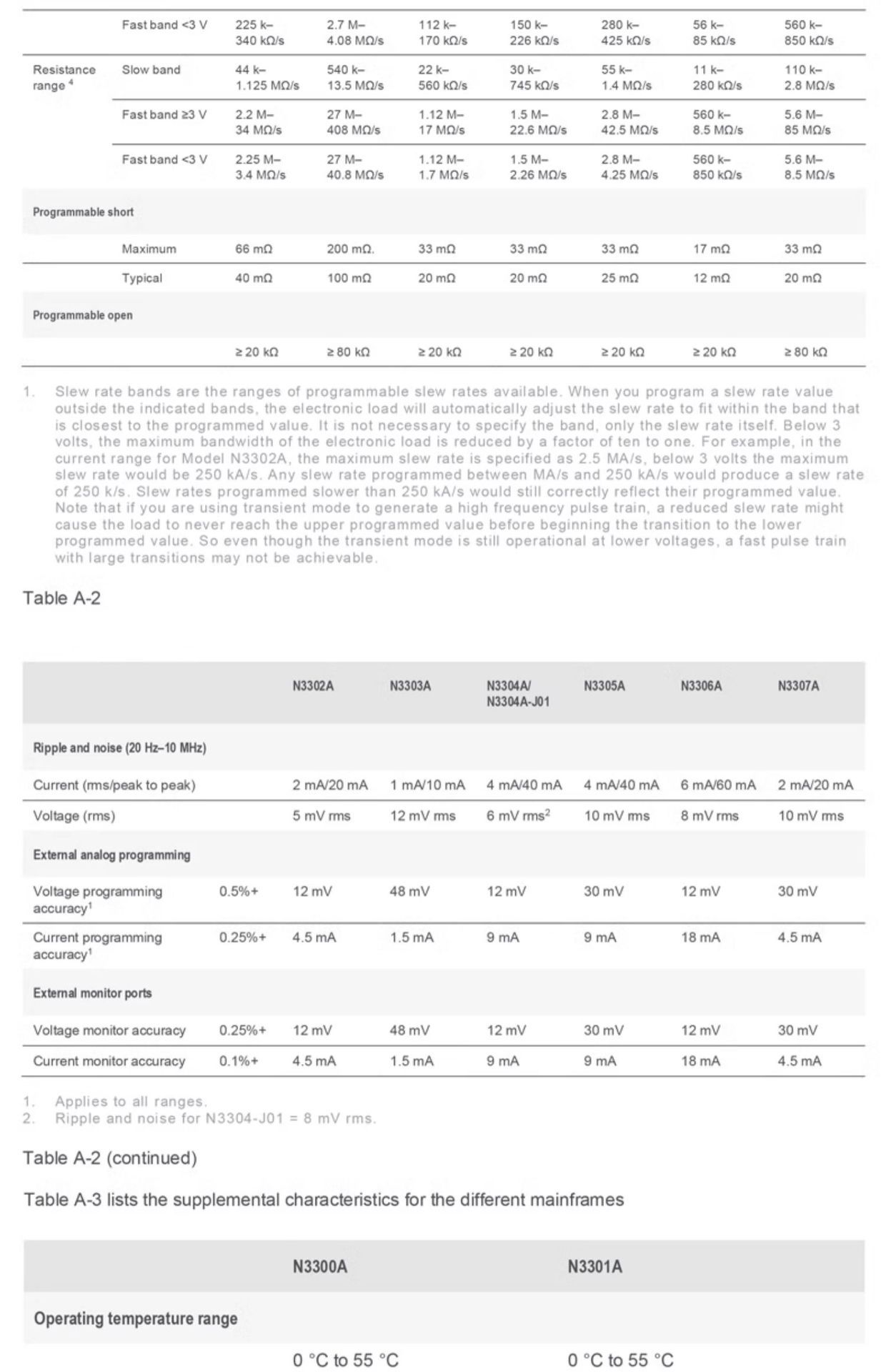 N3300A (электронная нагрузка постоянного тока 1800 Вт, 6 слотов); N3301A (электронная нагрузка постоянного тока 600 Вт, 2 слота); N3302A (цифровой модуль нагрузки 150 Вт); N3303A (цифровой модуль нагрузки 250 Вт); N3304A (цифровой модуль нагрузки 300 Вт); N3305A (цифровой модуль нагрузки 500 Вт); N3306A (цифровой модуль нагрузки 600 Вт); N3307A (цифровой модуль нагрузки 250 Вт)
